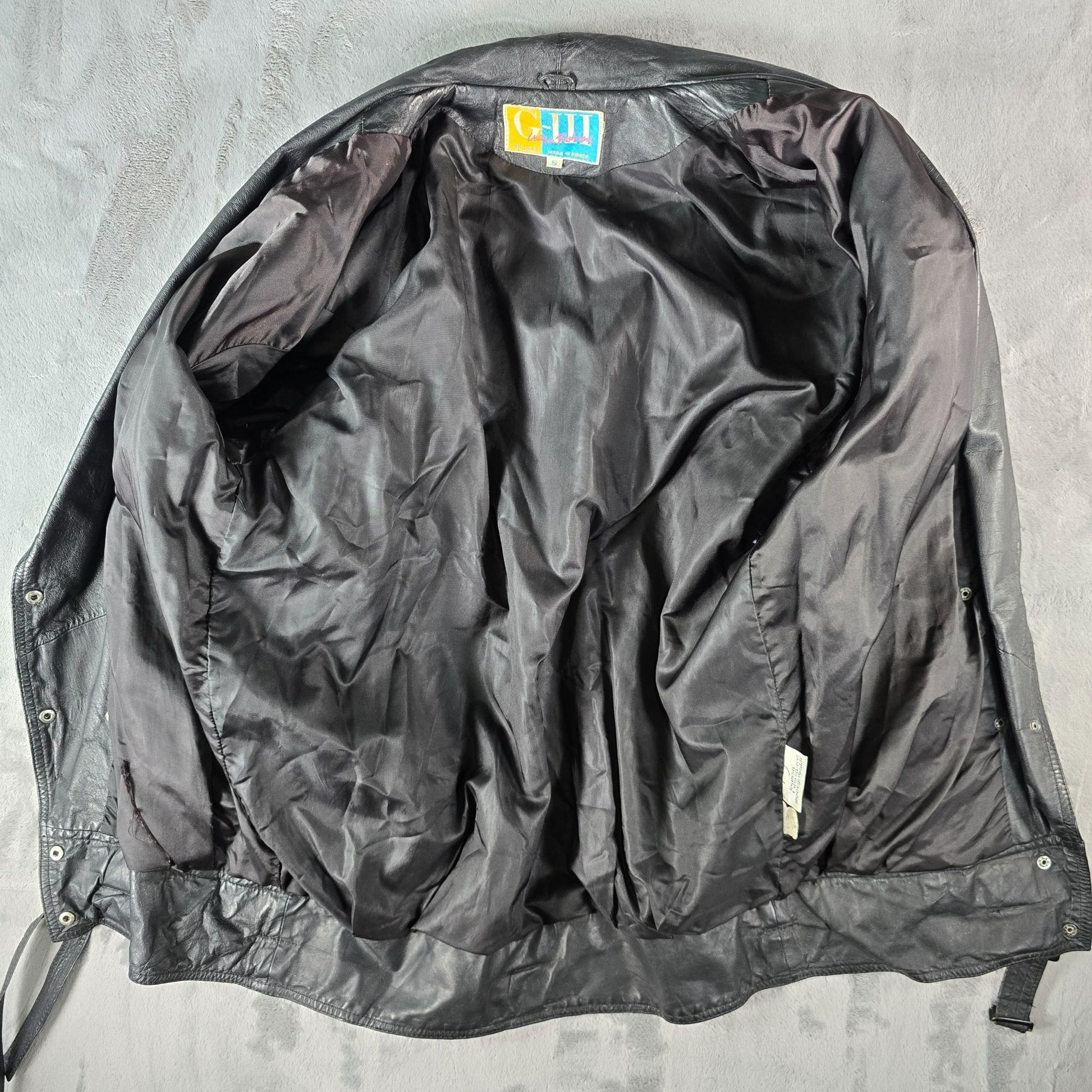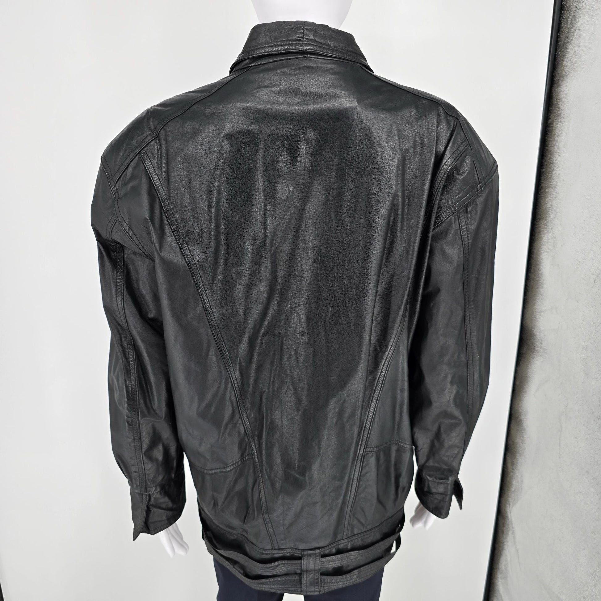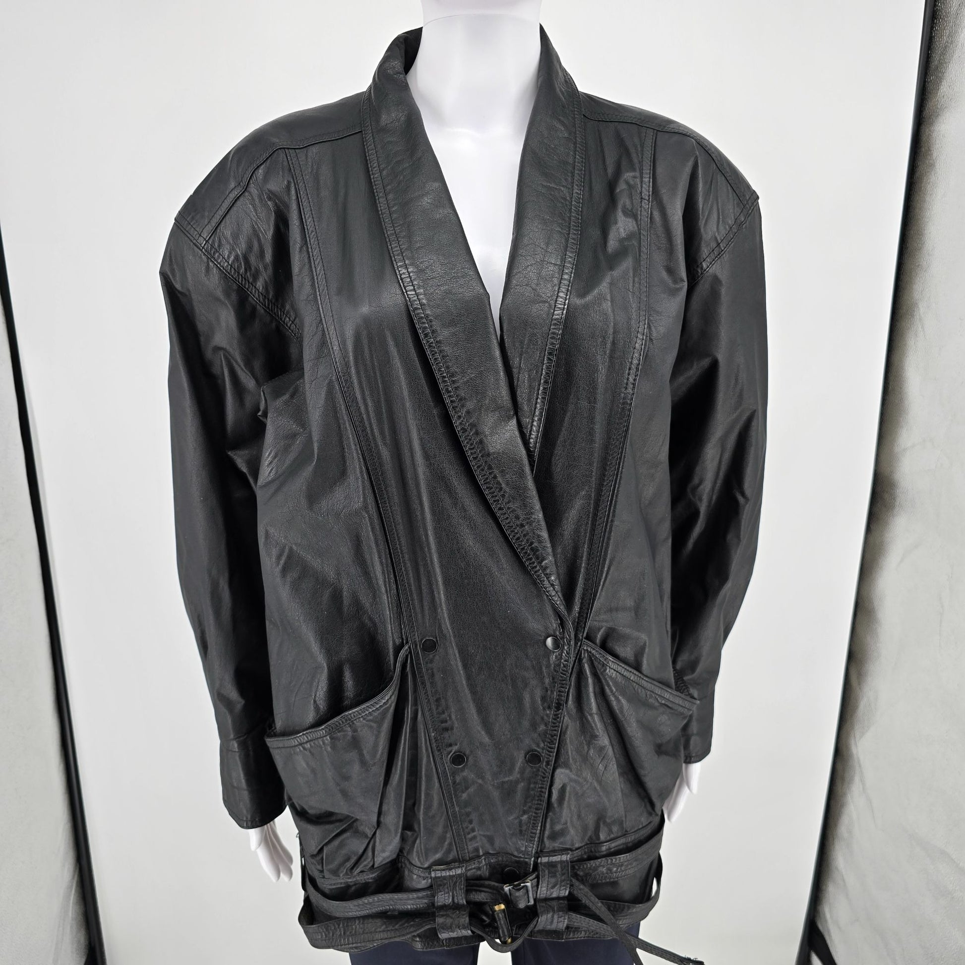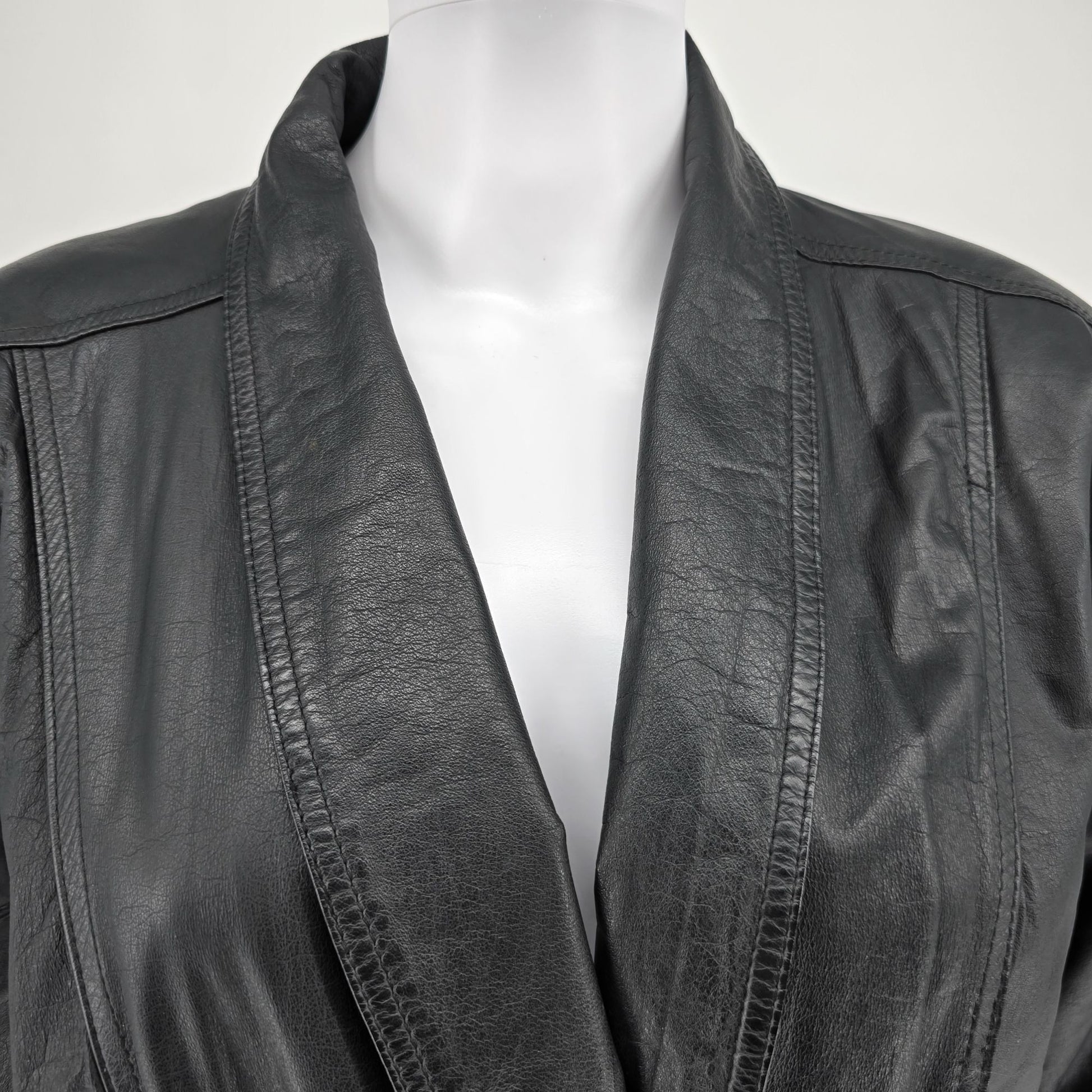 Vintage 1980s G-III Leather Fashions Black Oversized Shawl Collar Jacket (S)