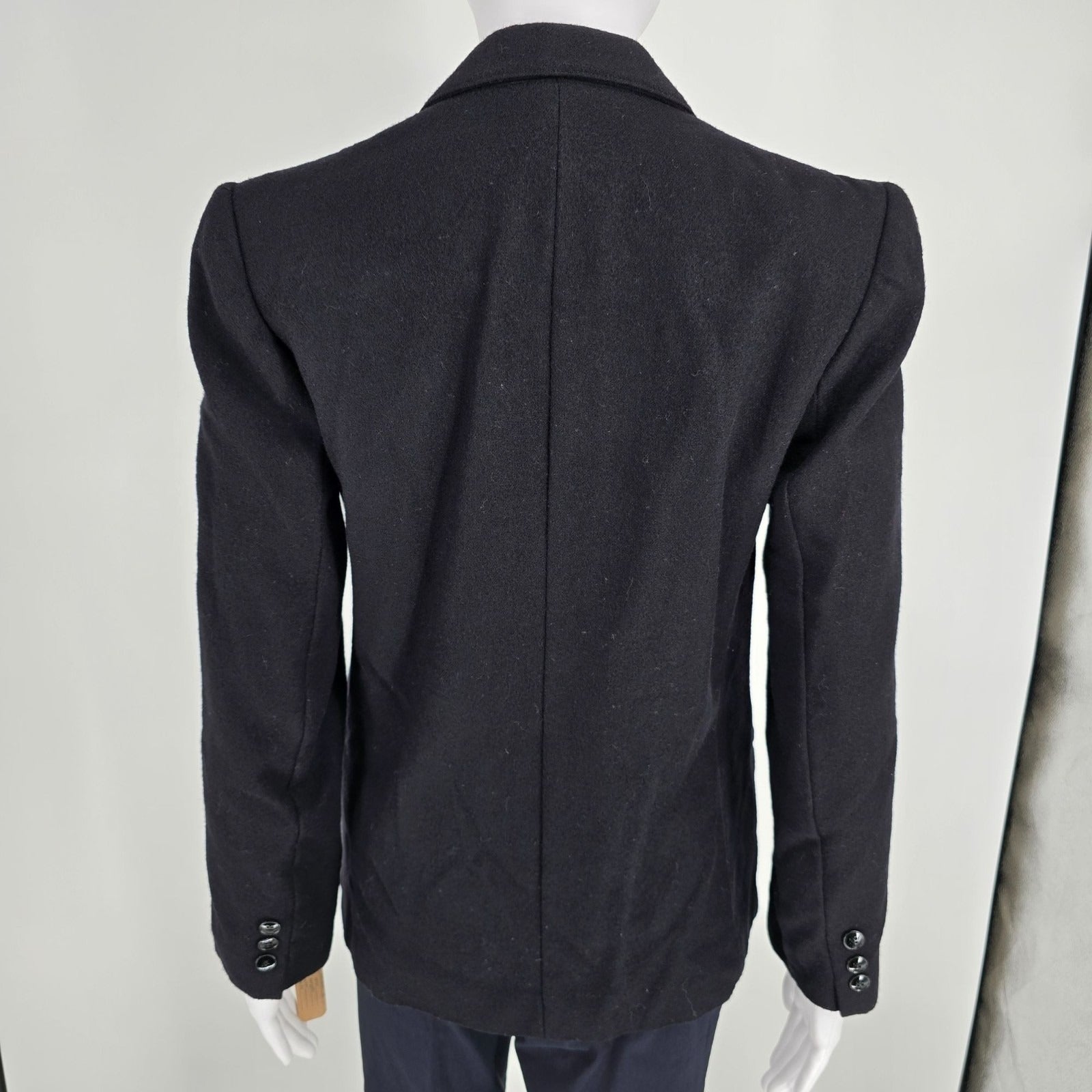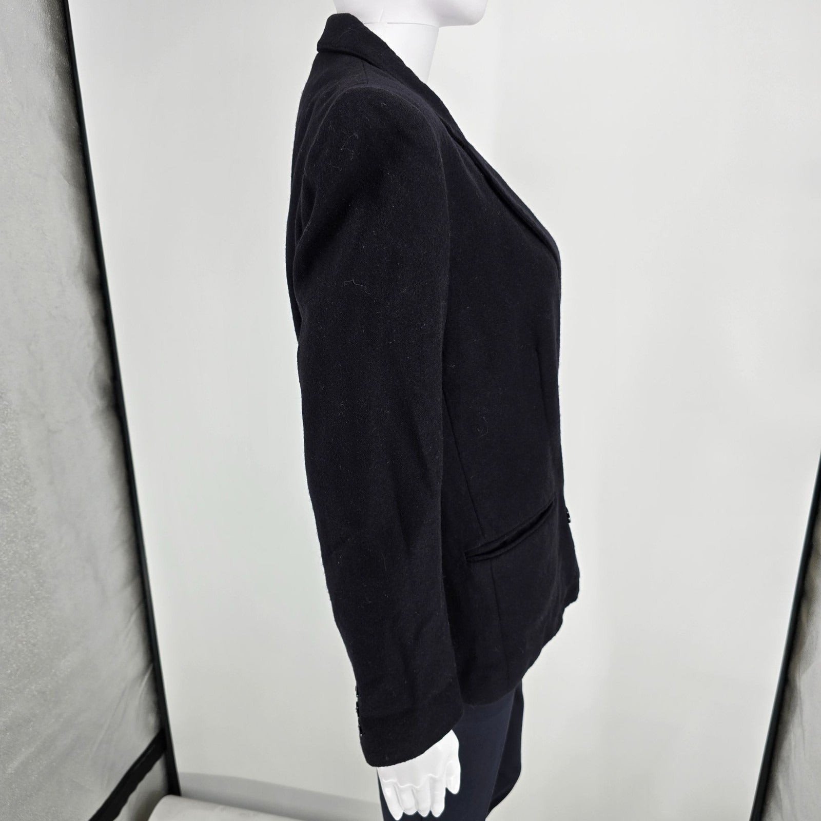 Vintage 1980s Haberdasher Women's Black Double-Breasted Wool Blazer (Small)