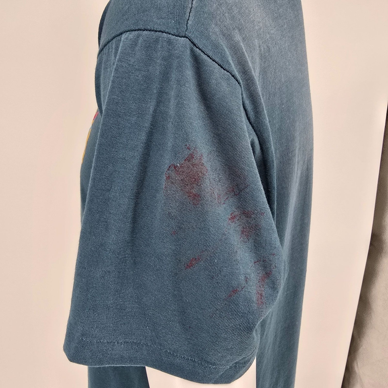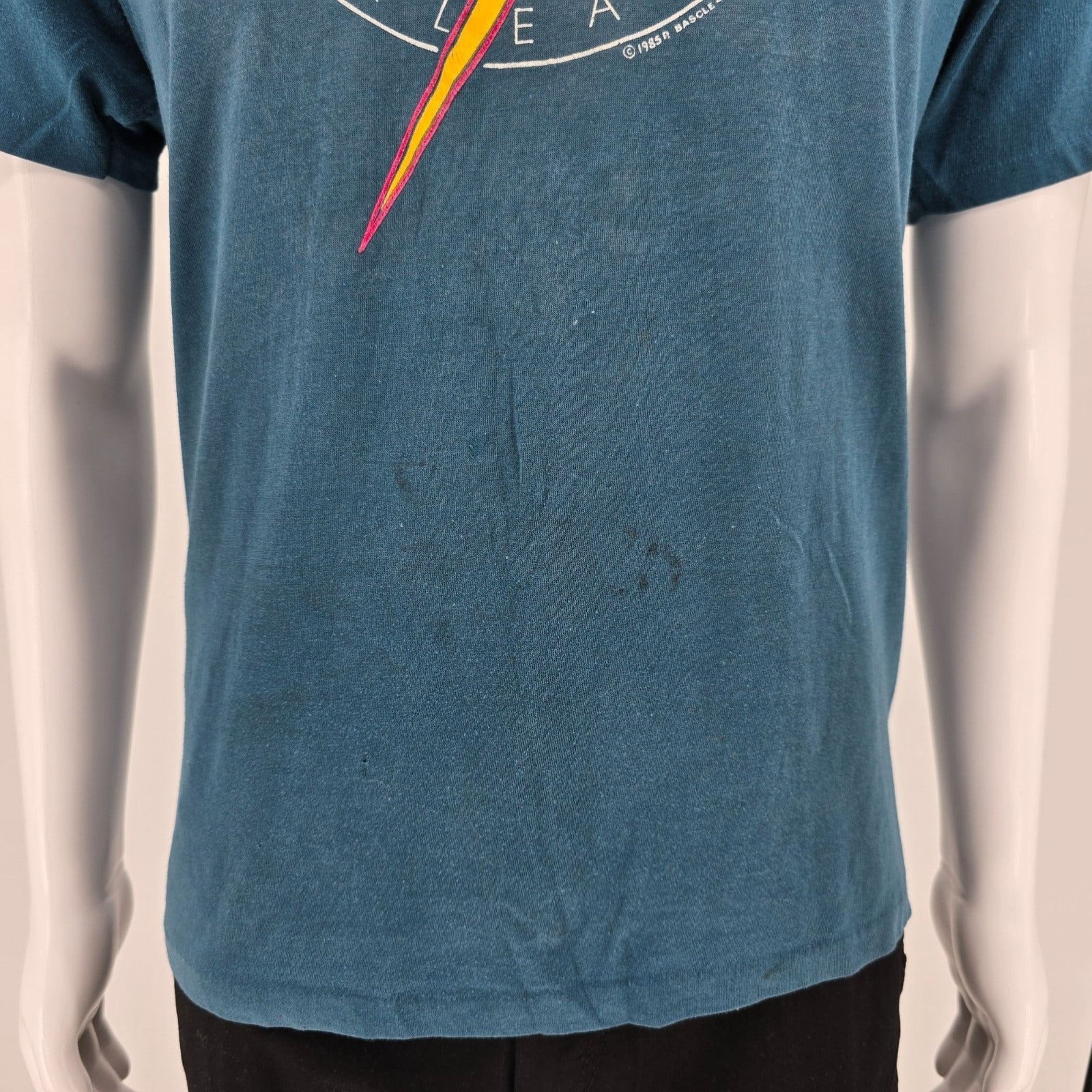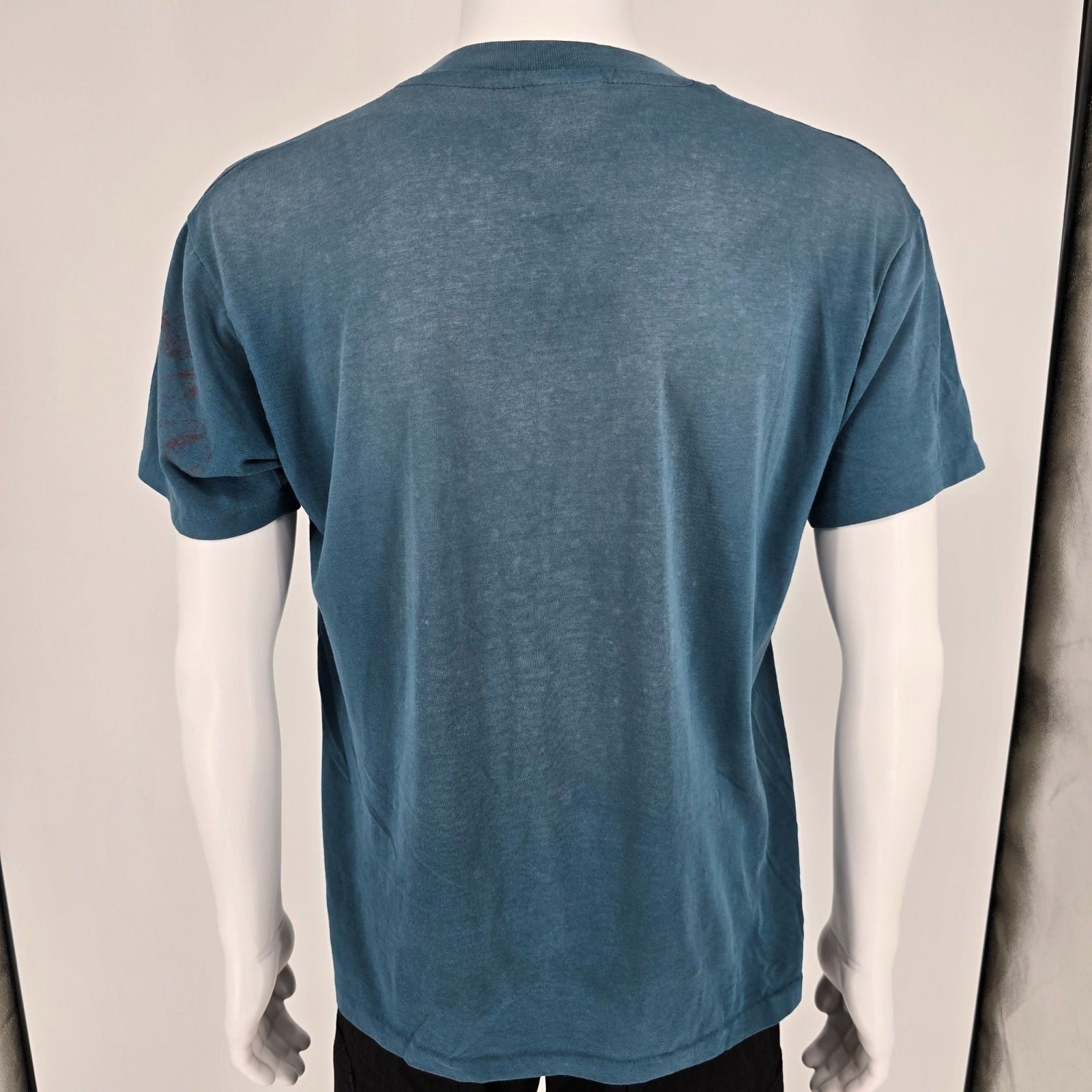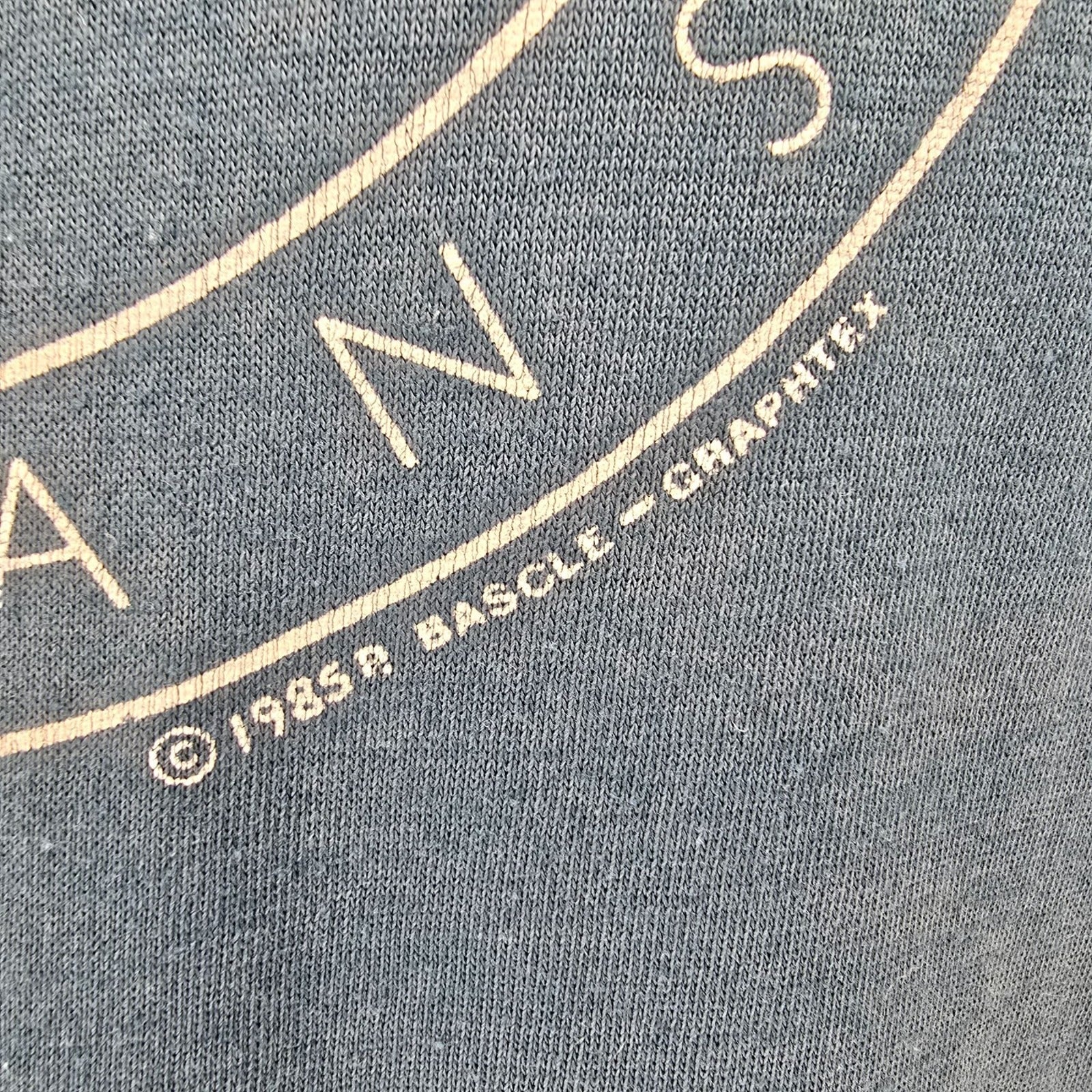 Notable Features: Single stitch cuffs and hem; tubular body; Graphic Copyright dated 1985 by "P. Bascle-Graphtex: