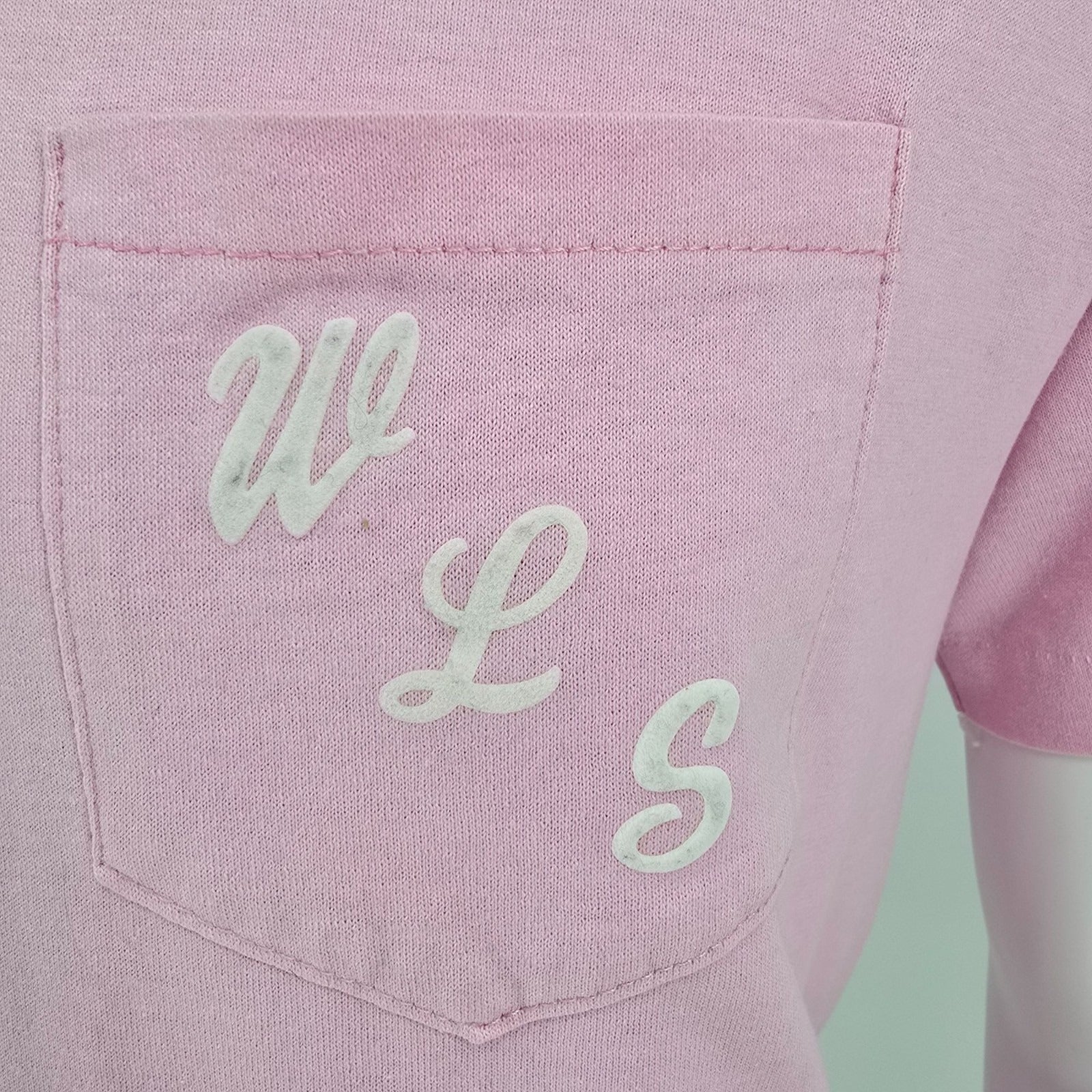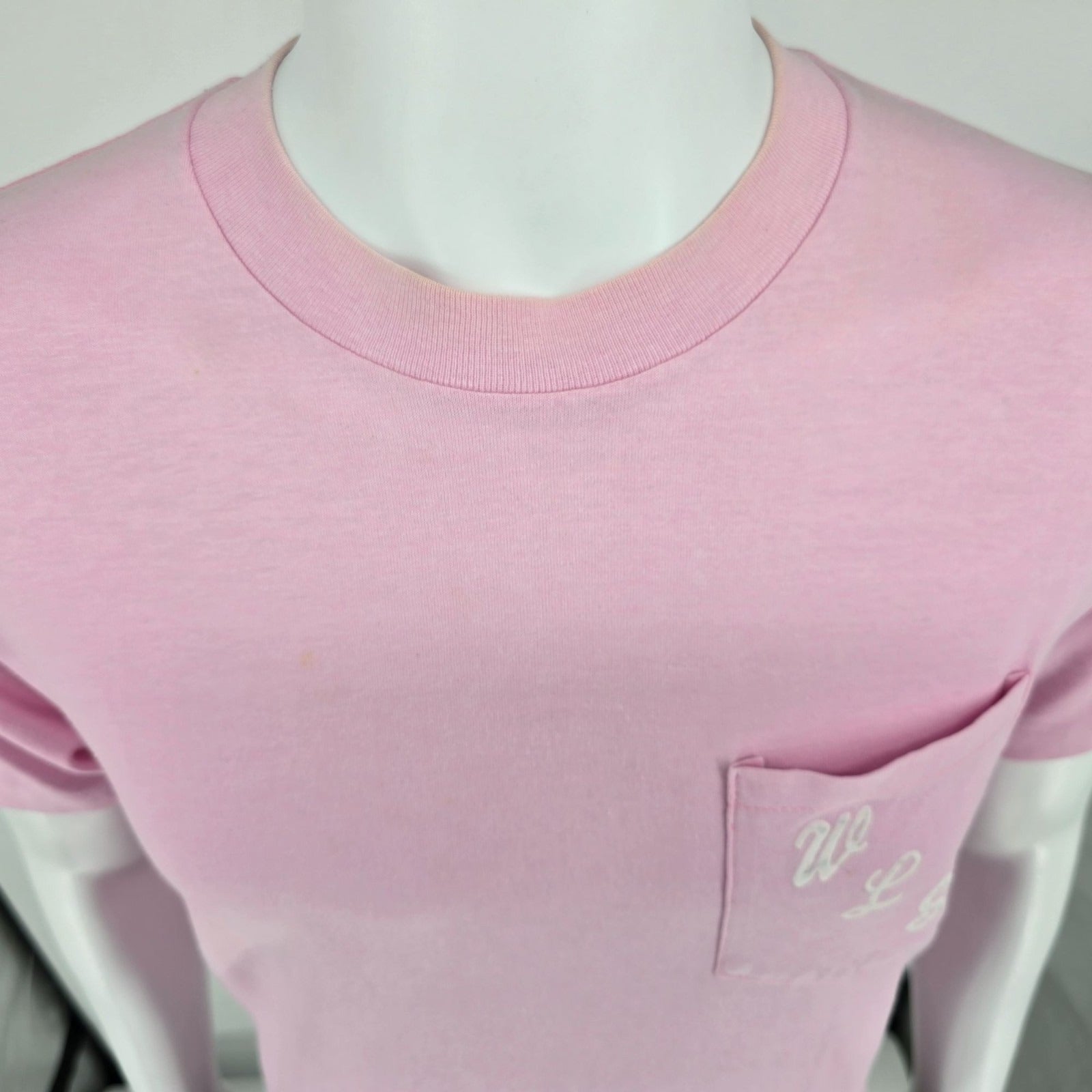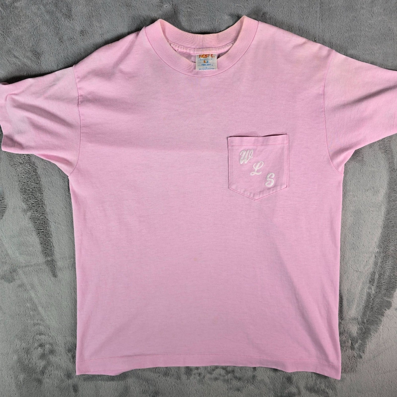 Vintage 1980s Heft-T by Tee Jays "WLS" Flocked Letter Pink Pocket T-Shirt (M/L)