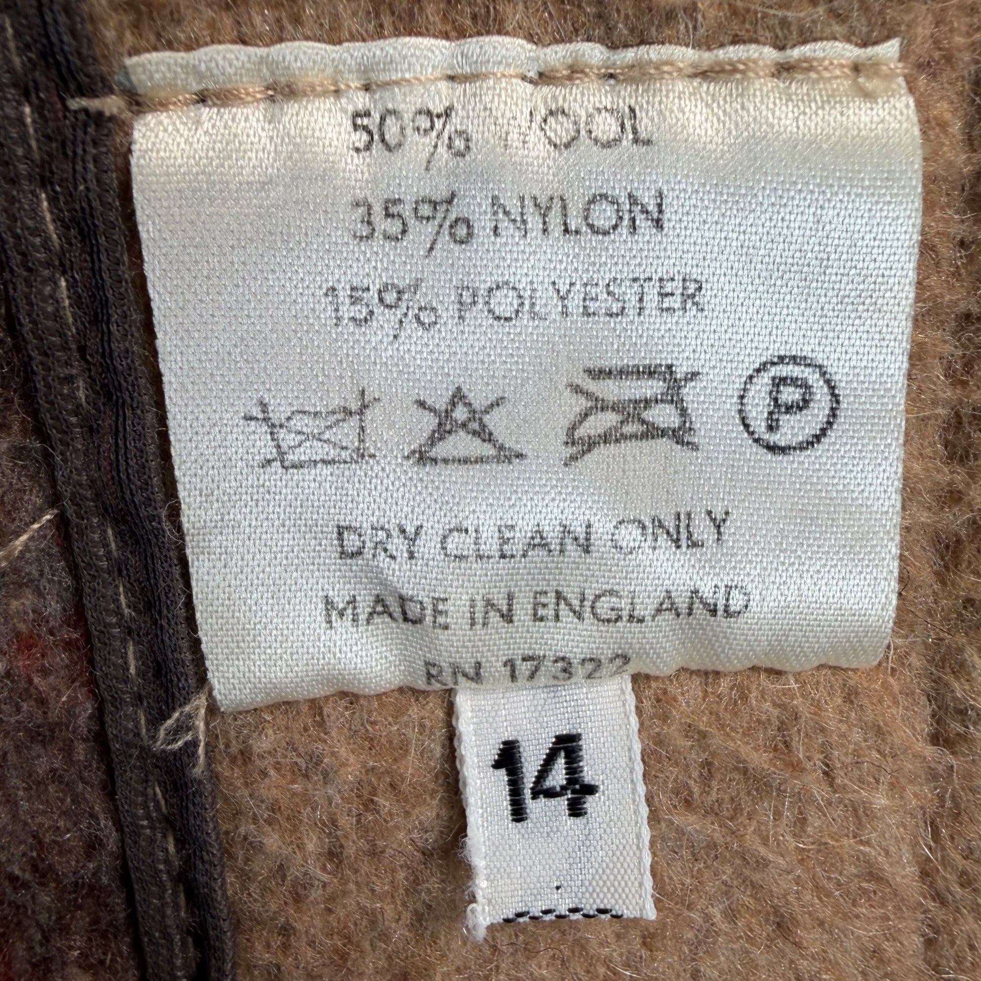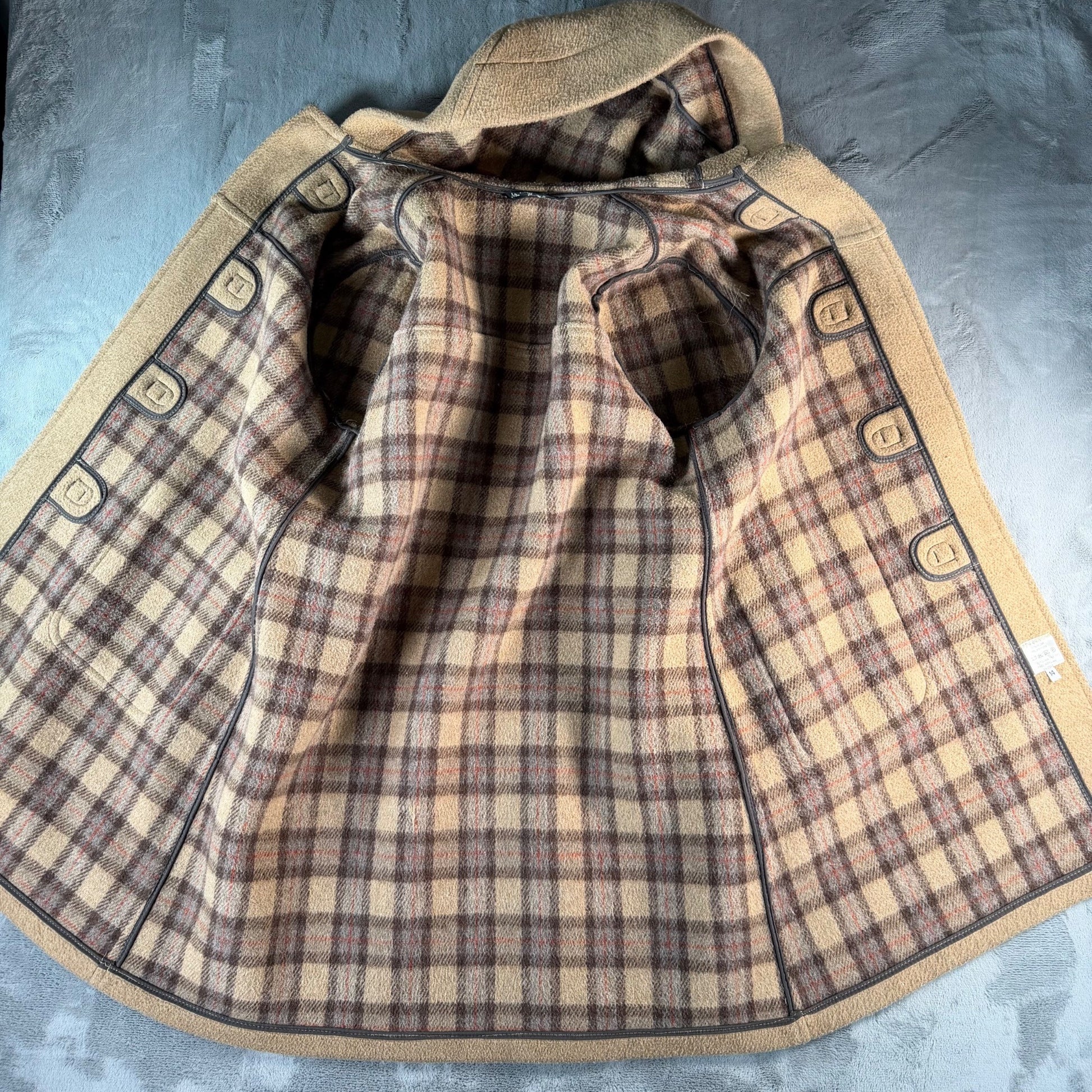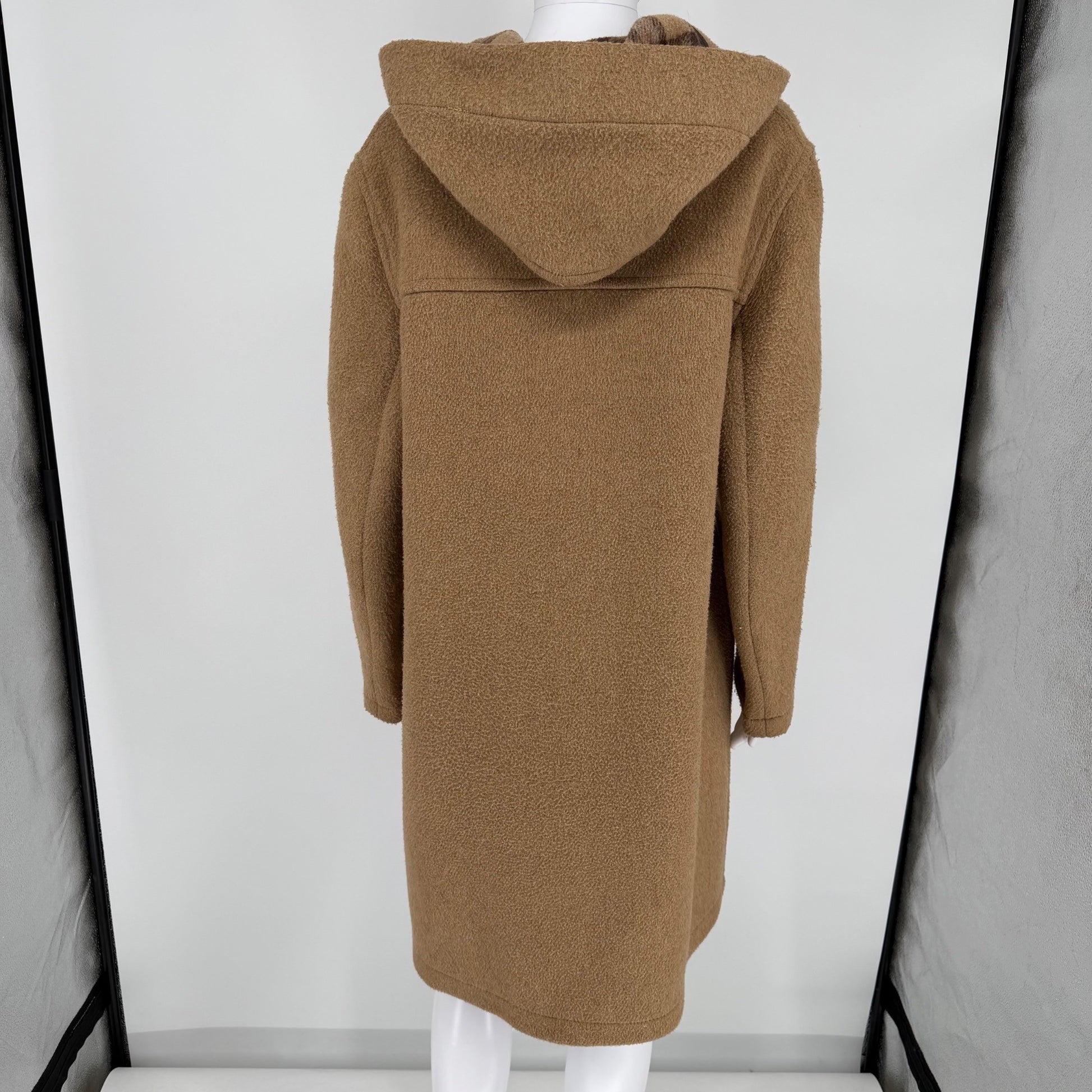 Vintage 1980s Made in England Tan Wool-Blend Hooded Duffle Coat (Size 14/XL)