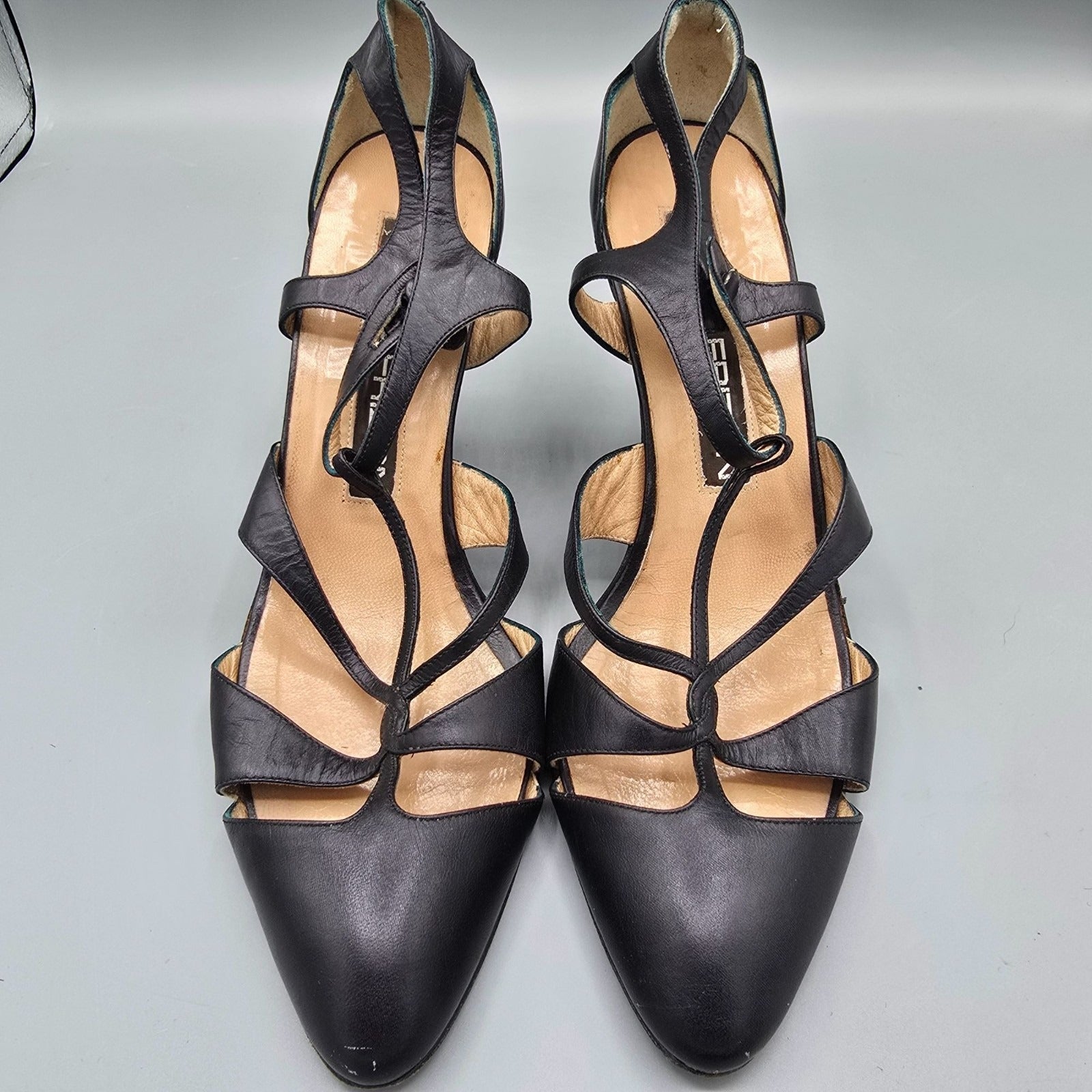 Vintage 1980s Maud Frizon Paris Black Cut-Out Multi-Strap Pumps (EU37/US6.5B)