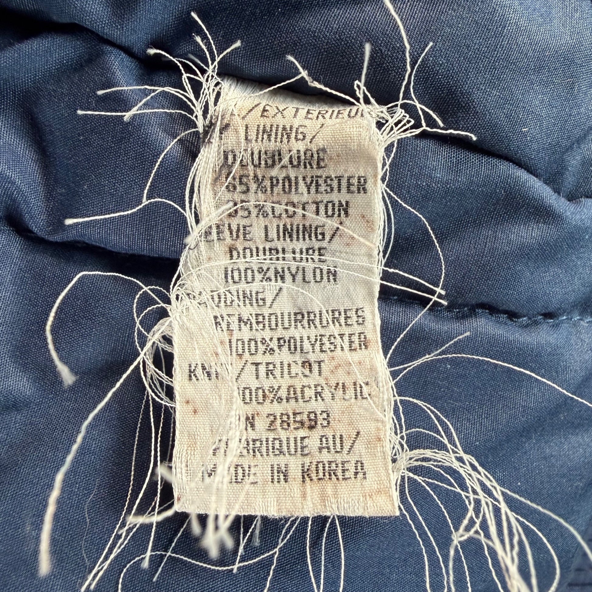 Good overall used vintage condition. No identified rips, cuts, holes, or tears. Some fading on outer shell. A few stray markings. Interior care tag is heavily frayed. Moderate wear throughout. See photos for details.