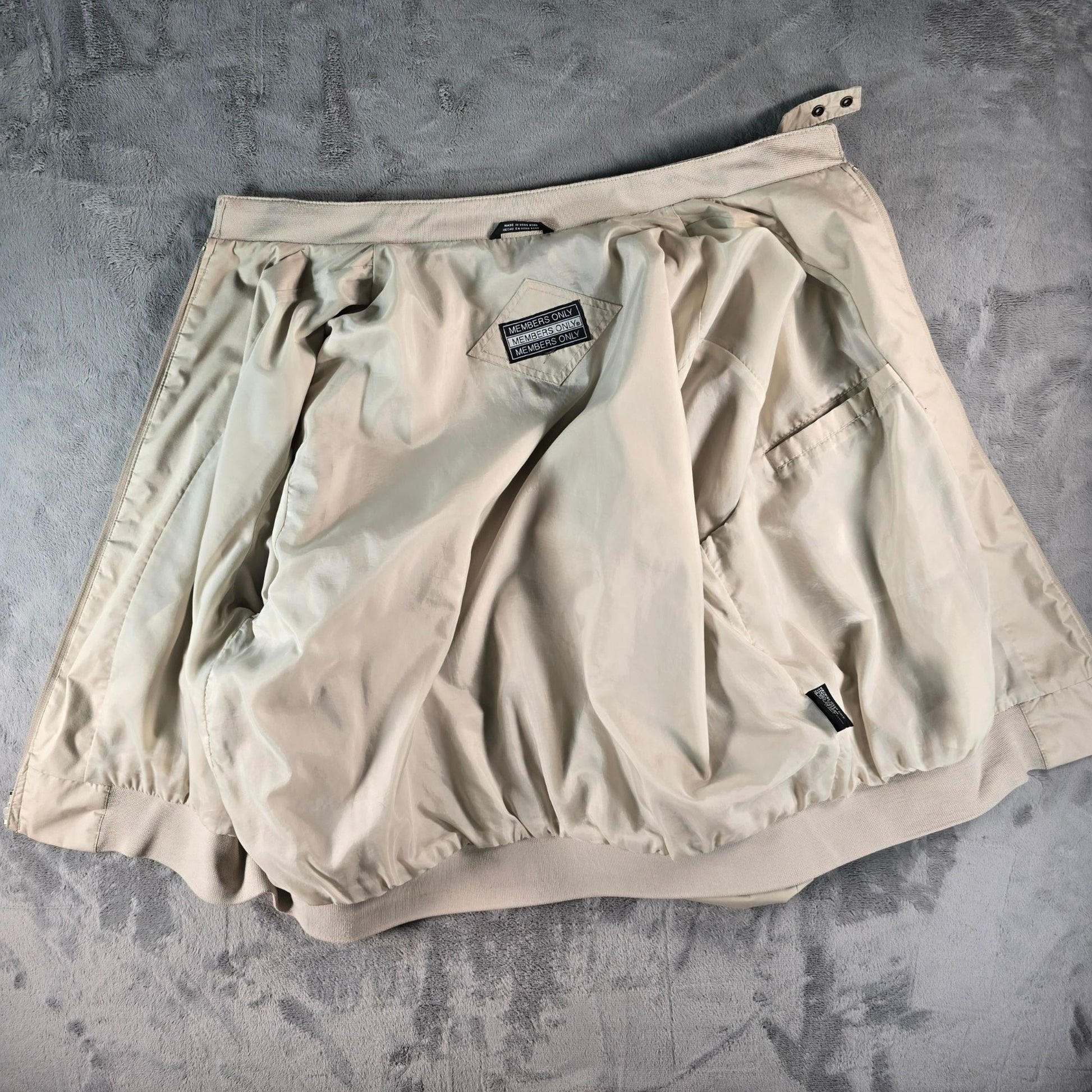 Vintage 1980s Members Only Zip-Front Beige Polycotton Racer Jacket (XL)
