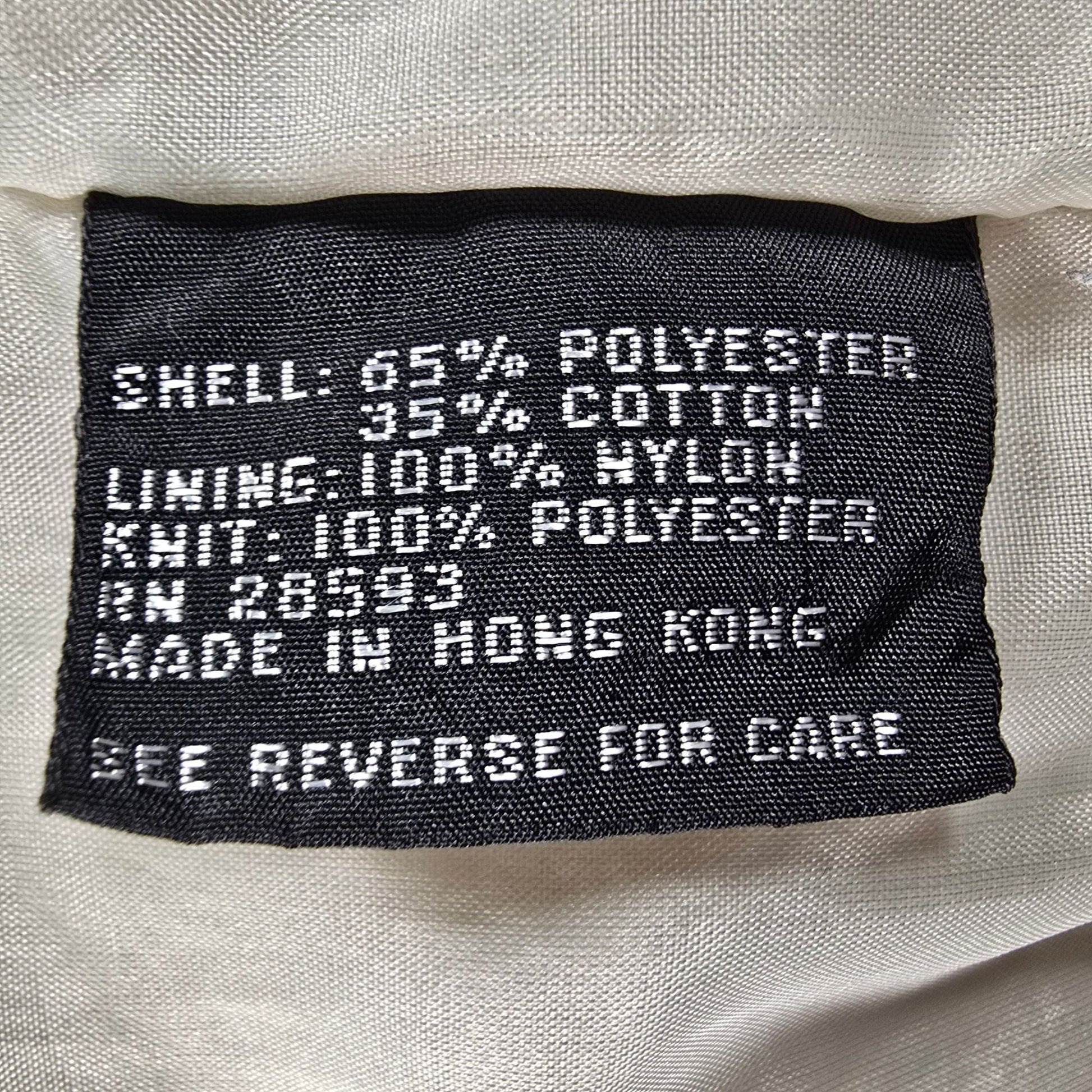 Material: Shell: 65% Polyester/35% Cotton; Lining: 100% Nylon; Knit: 100% Polyester