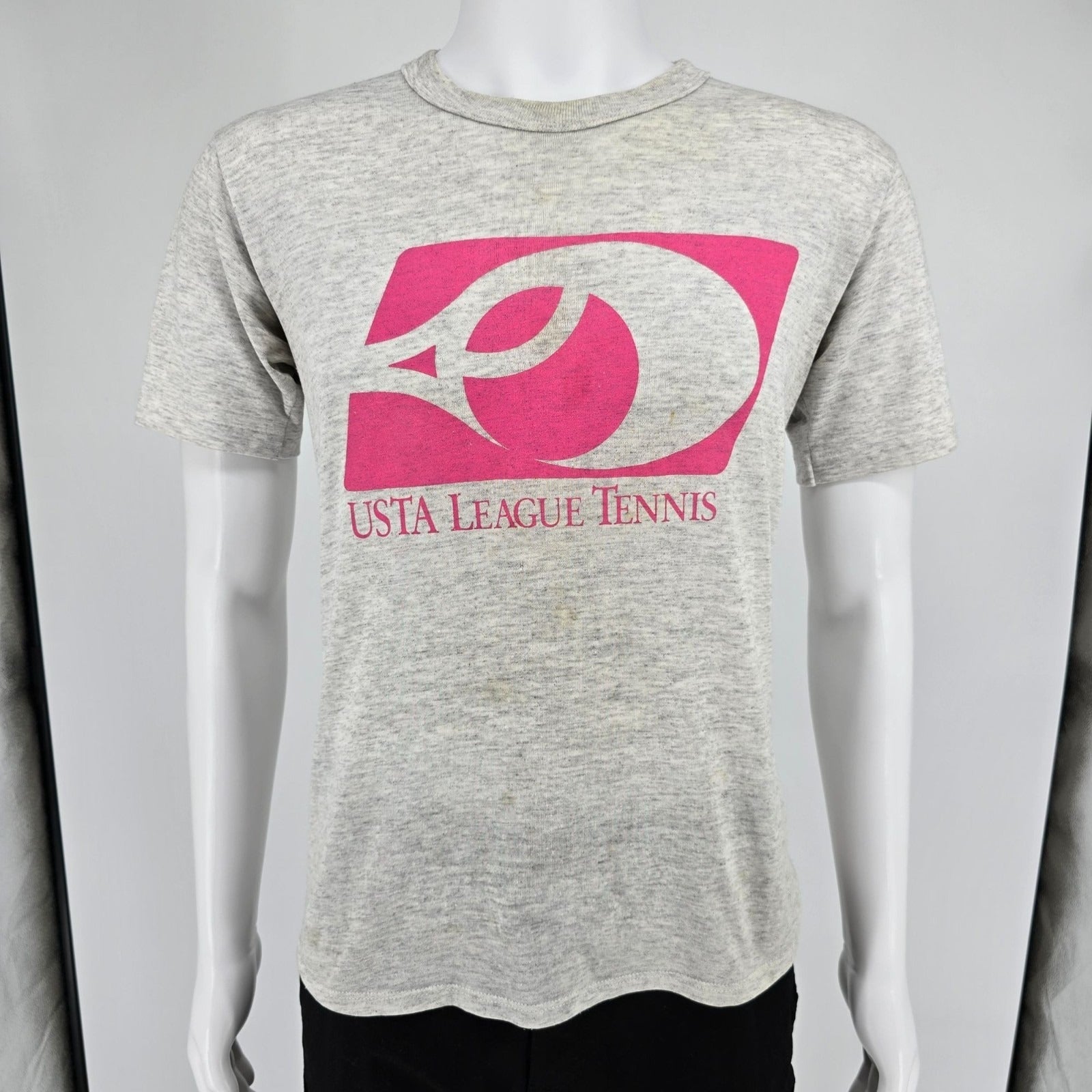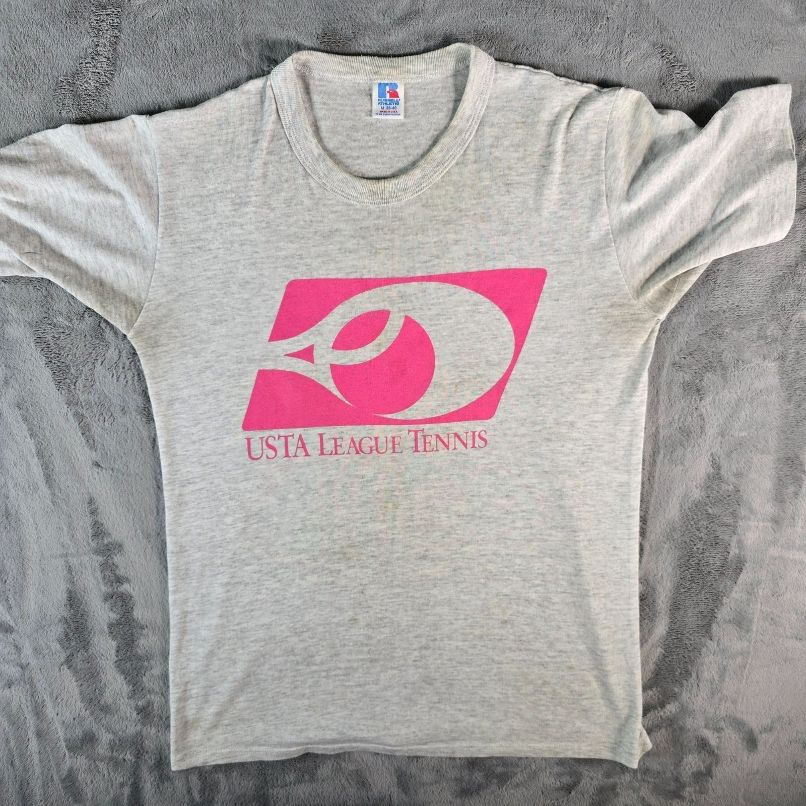 Vintage 1980s Russell Athletic USTA League Tennis Heather Gray T-Shirt (M)