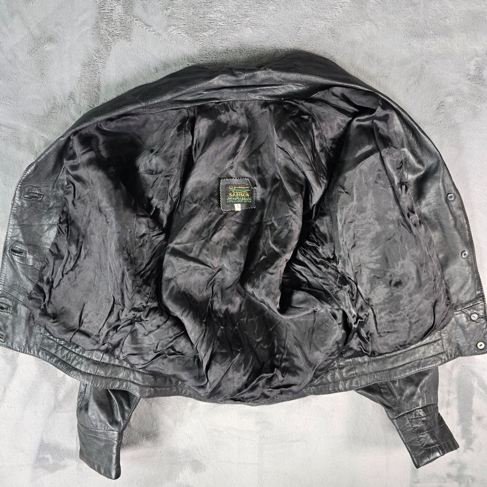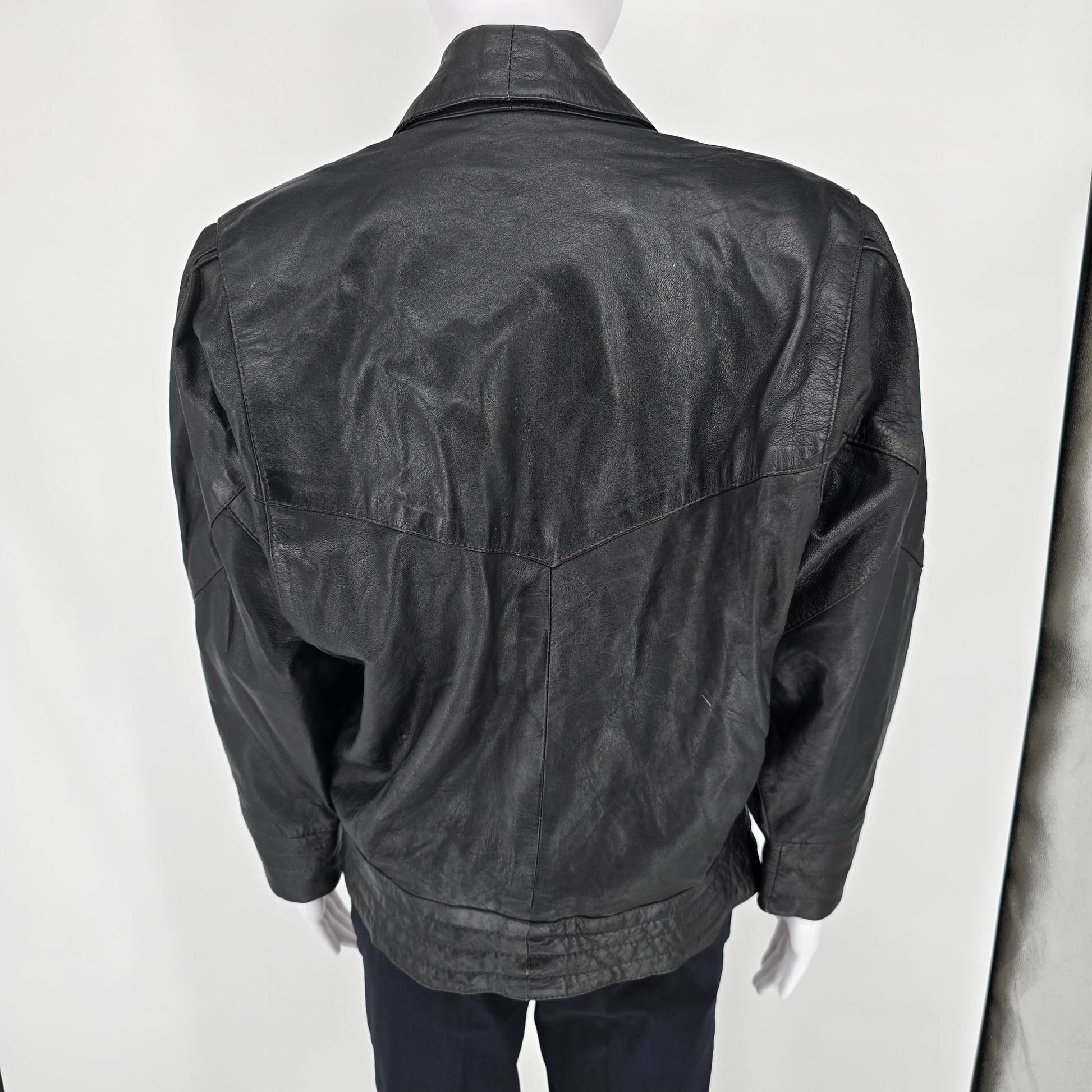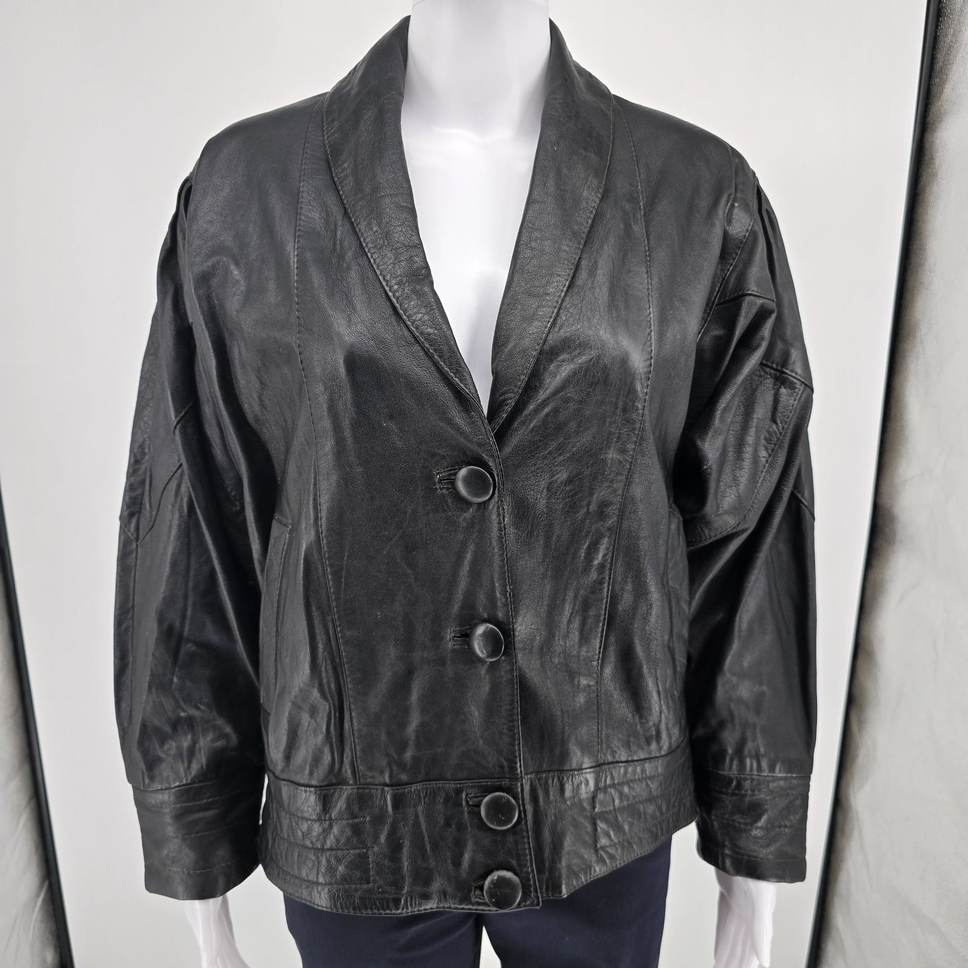Vintage 1980s Samson Women's Oversized Batwing Sleeve Black Leather Jacket (L)