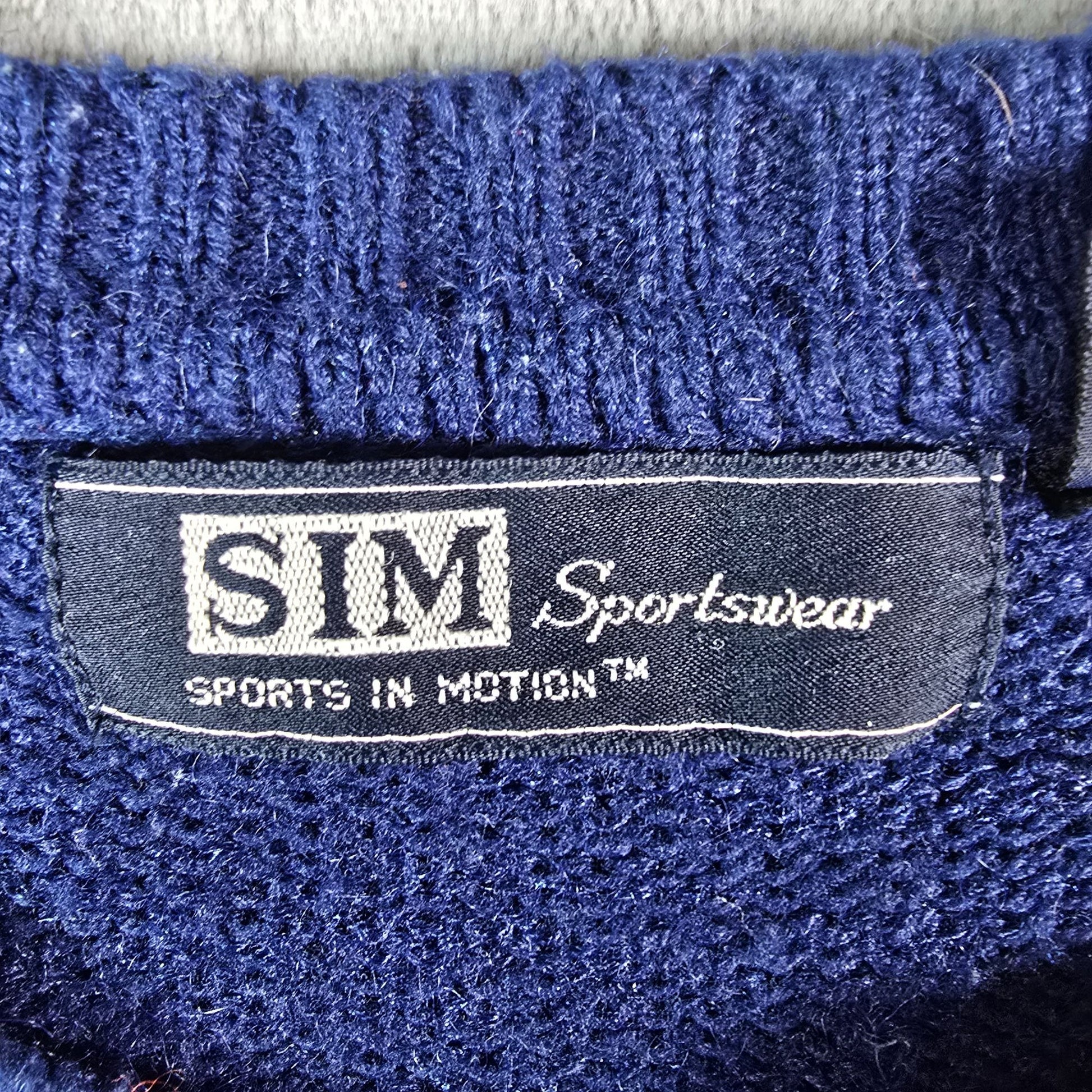 Vintage 1980s SIM Sportswear Blue & Gray Striped Acrylic/Nylon Sweater (L/XL)