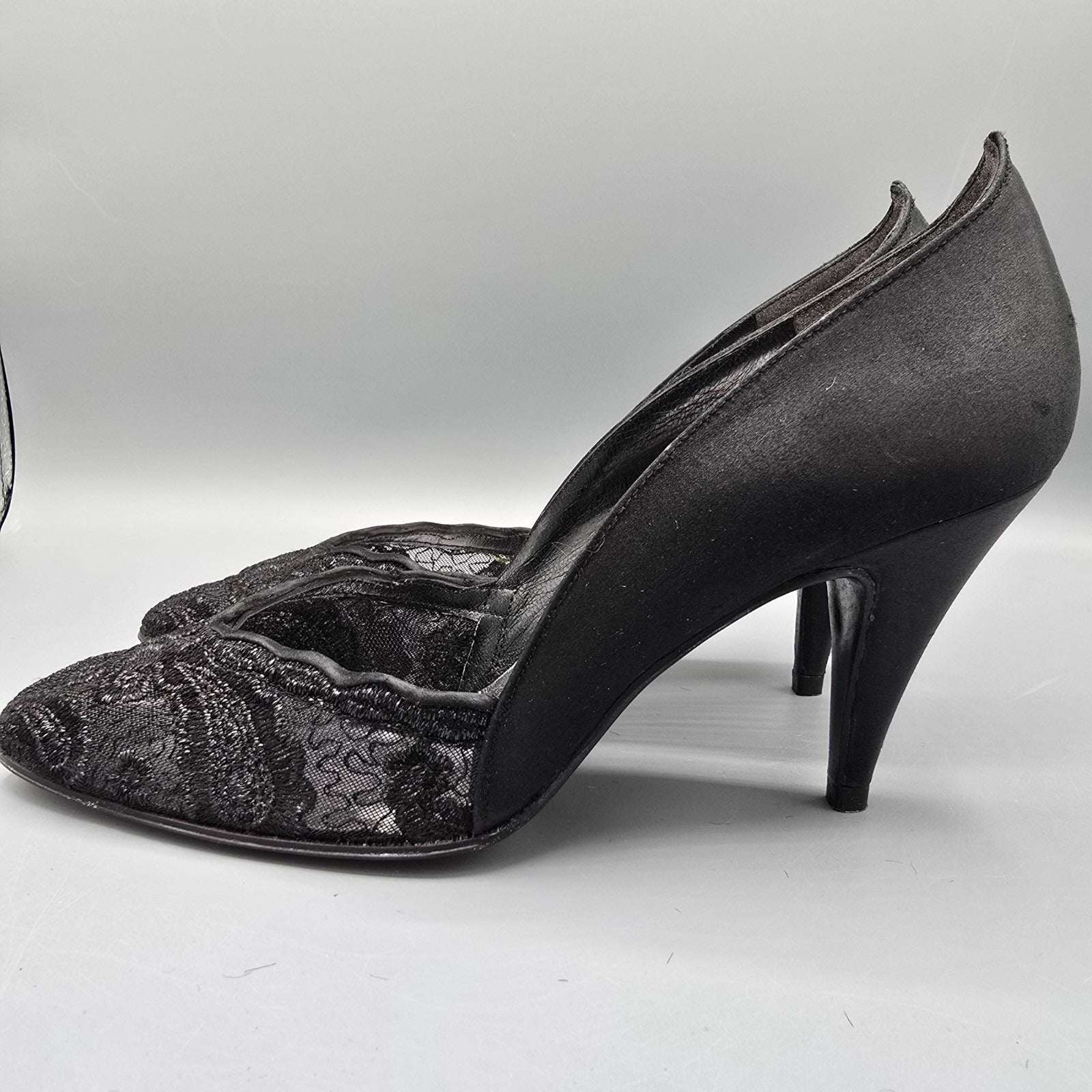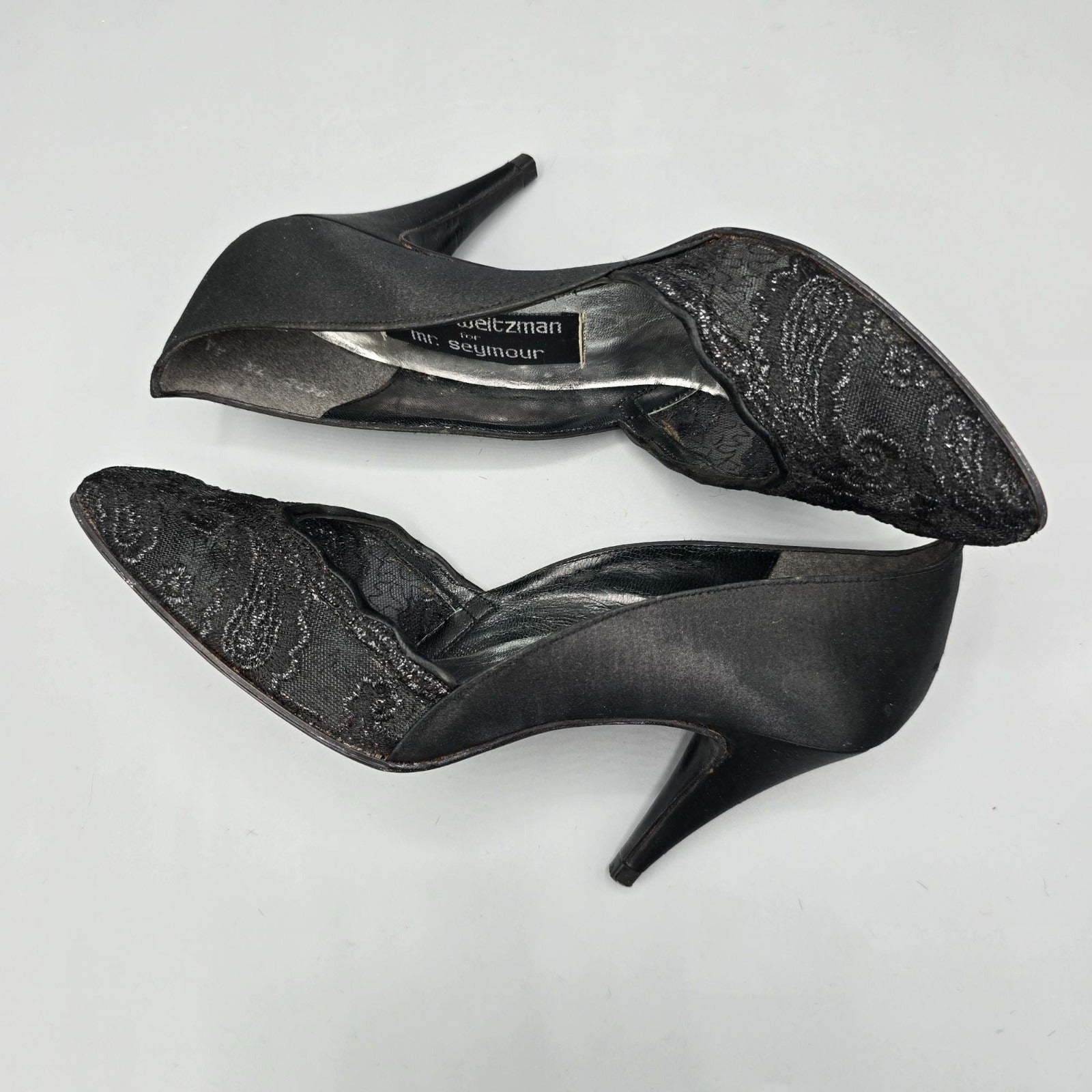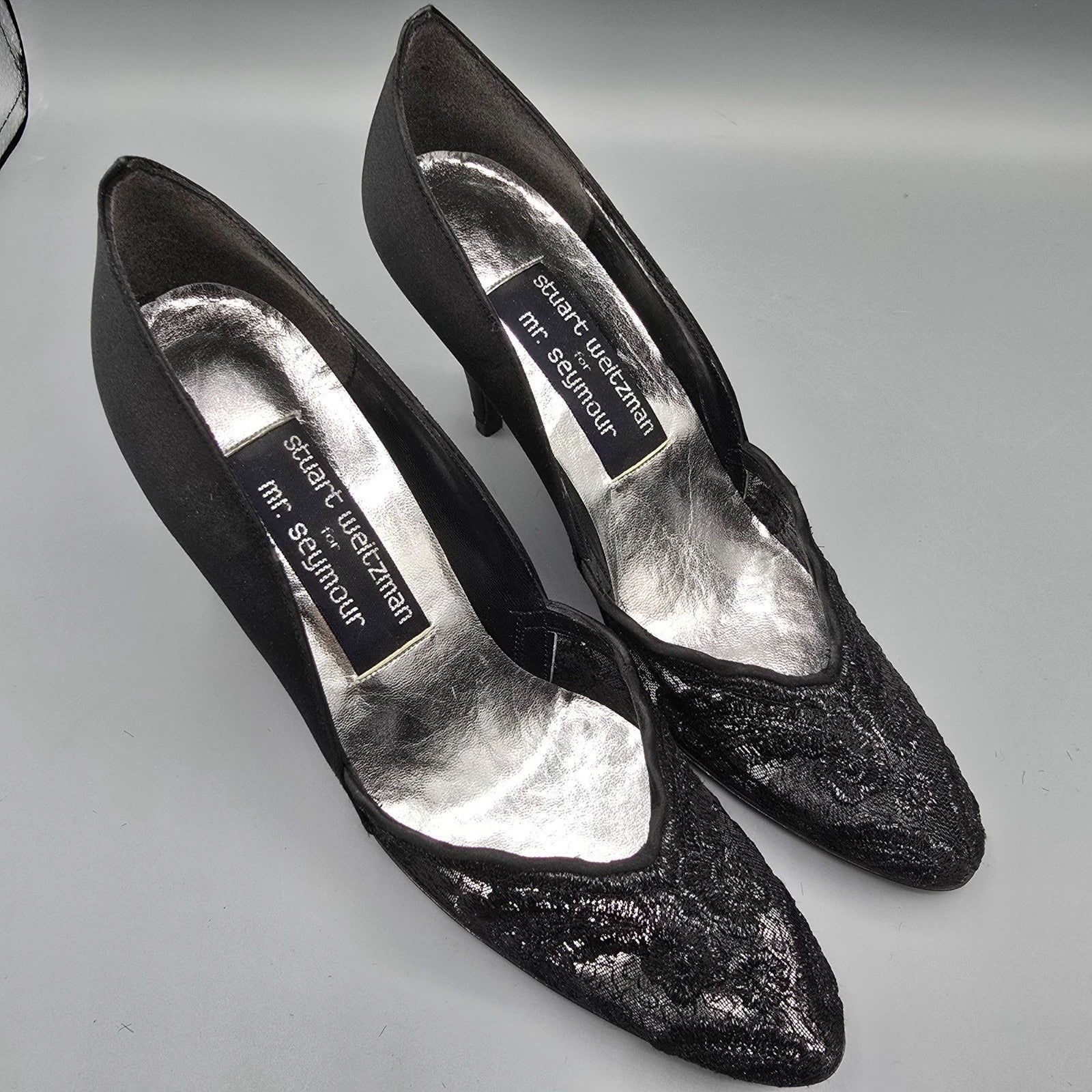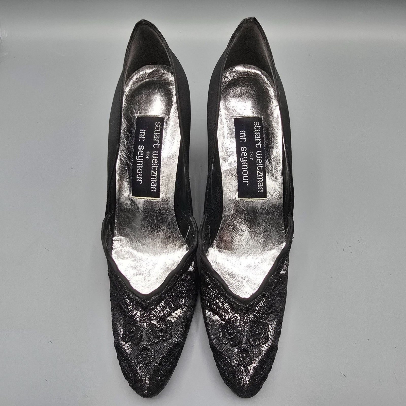 Vintage 1980s Stuart Weitzman for Mr. Seymour Black Lace & Satin Pumps (7.5AA)