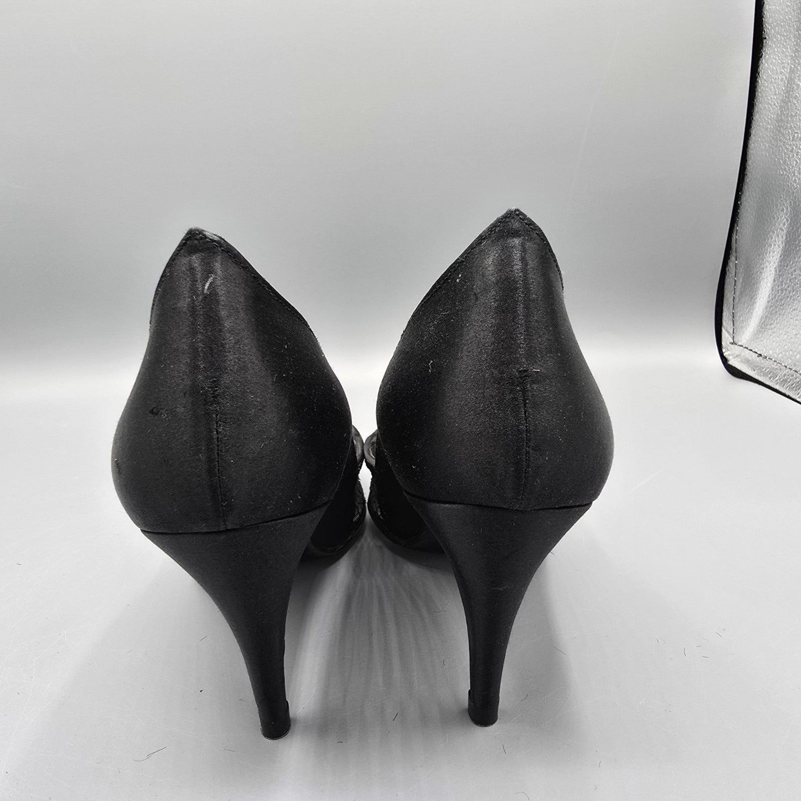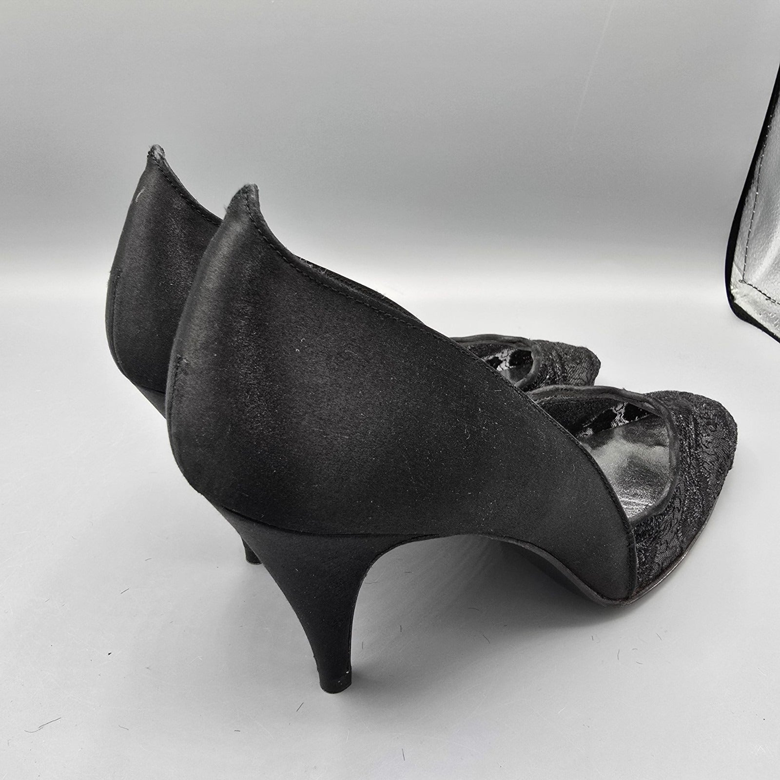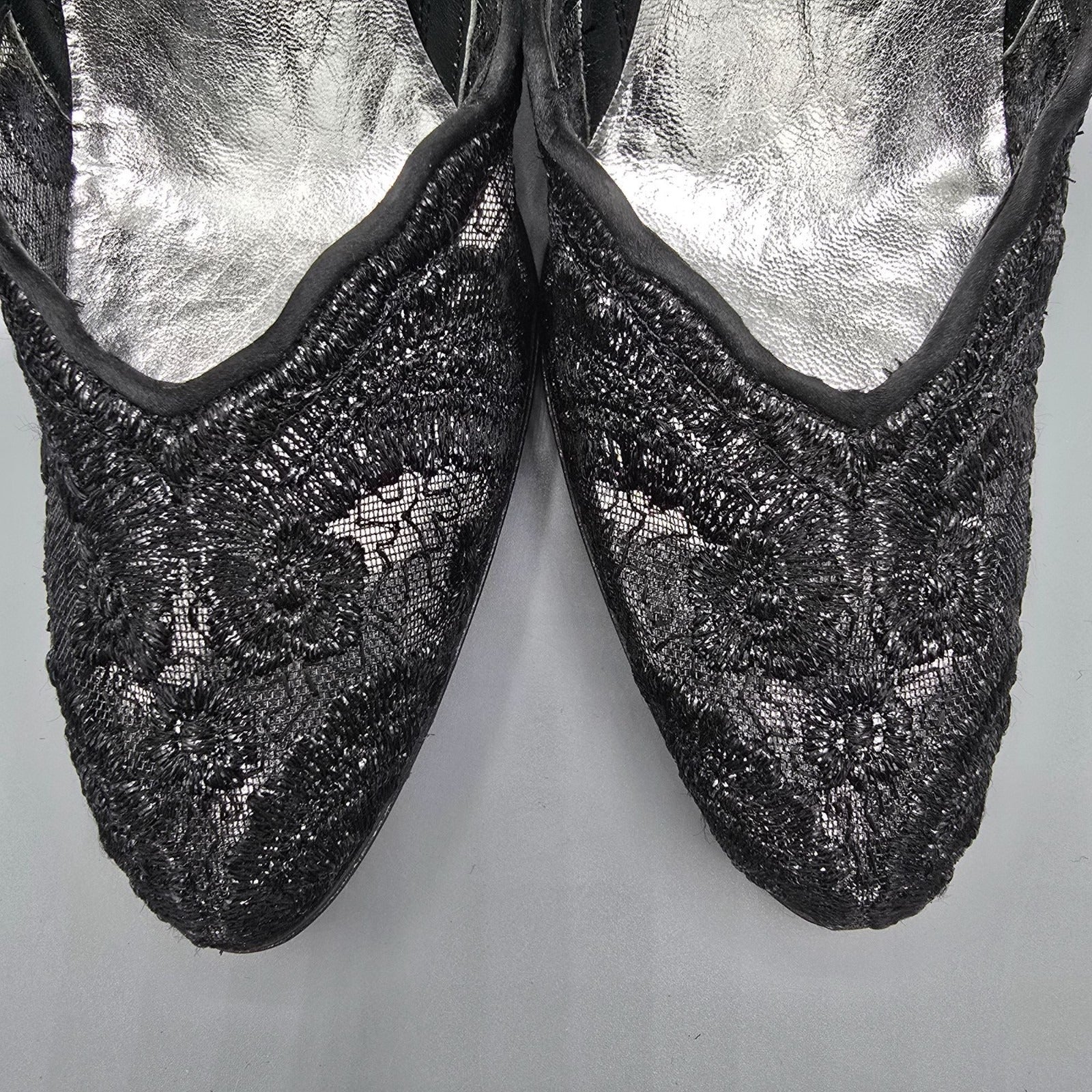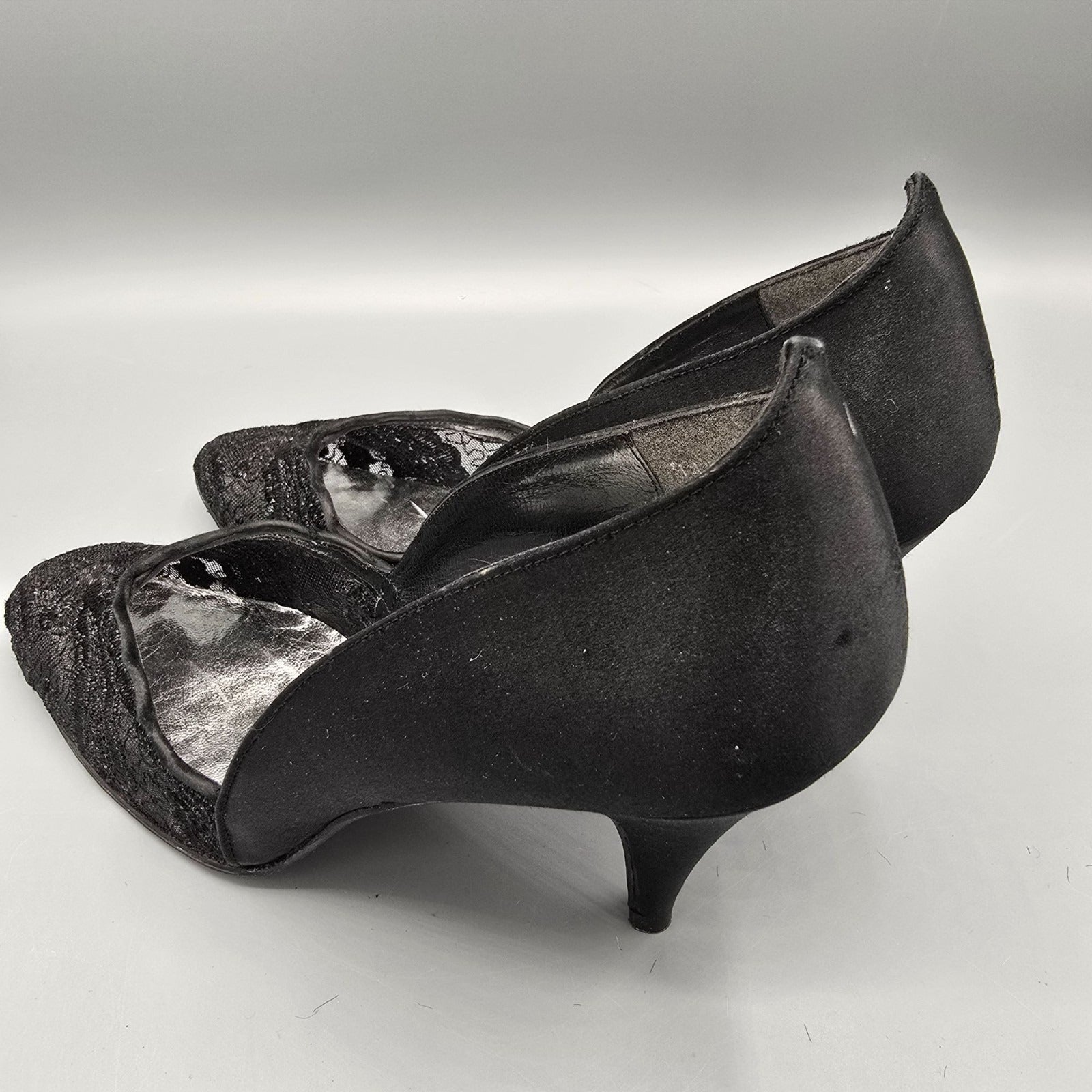 Vintage 1980s Stuart Weitzman for Mr. Seymour Black Lace & Satin Pumps (7.5AA)