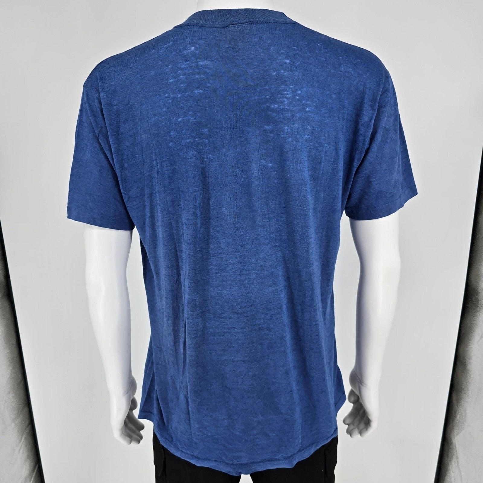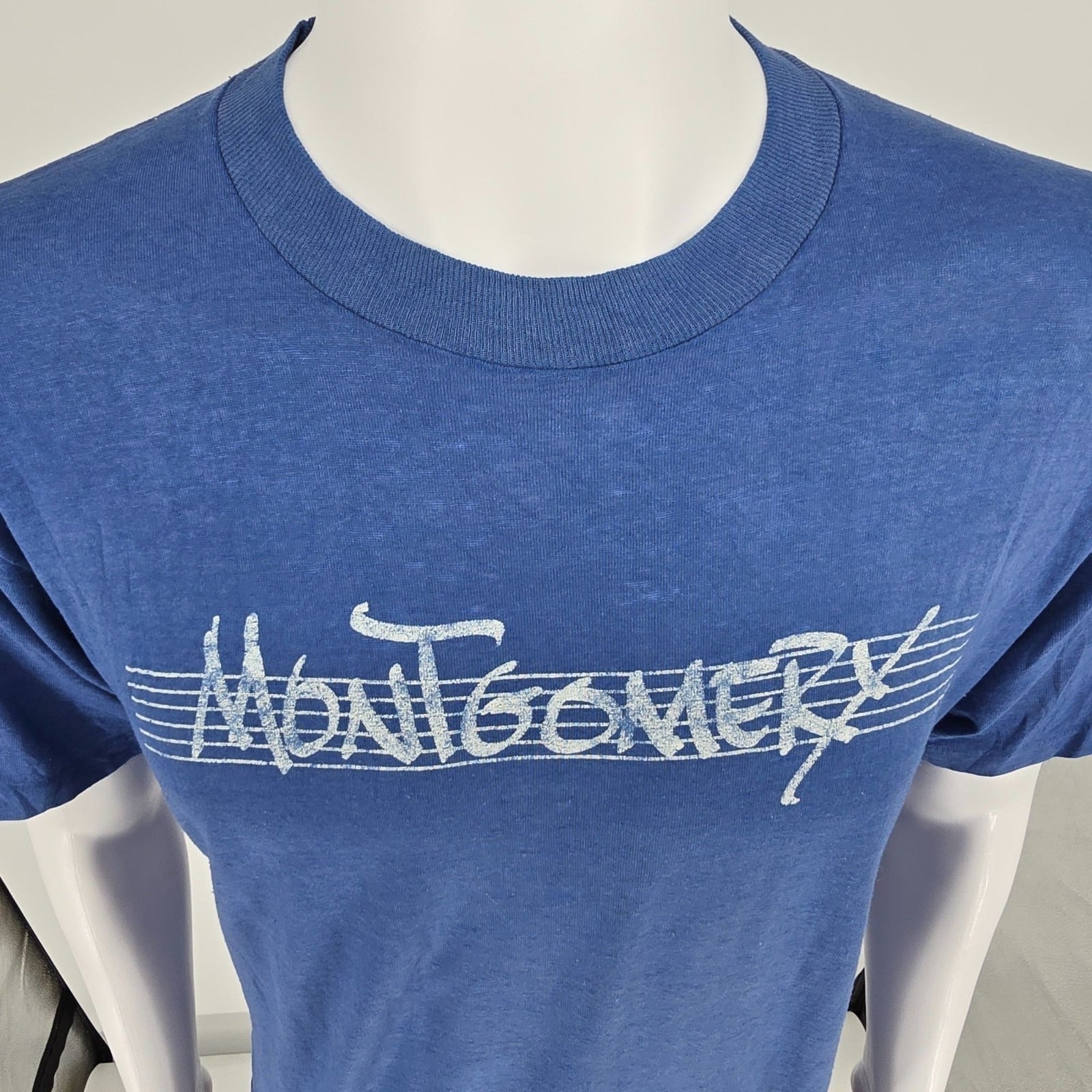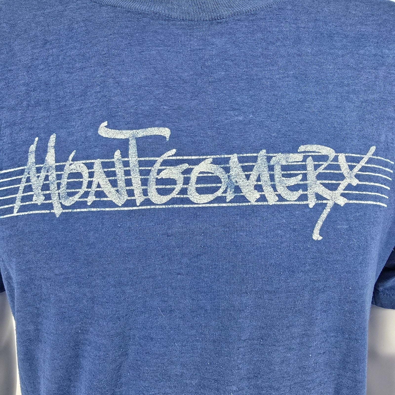 Vintage 1980s Velva Sheen Montgomery Script Logo Soft & Thin Blue T-Shirt (L)