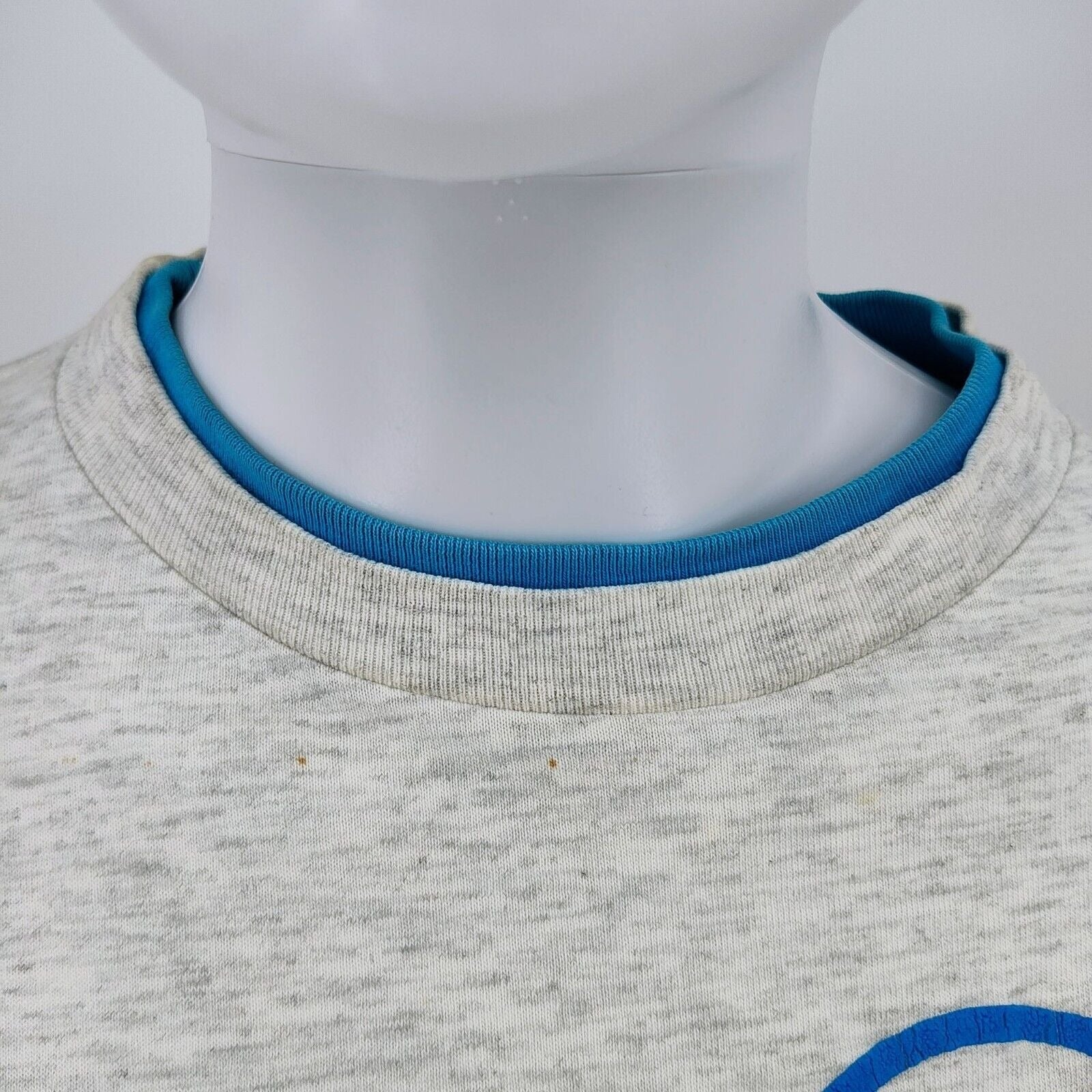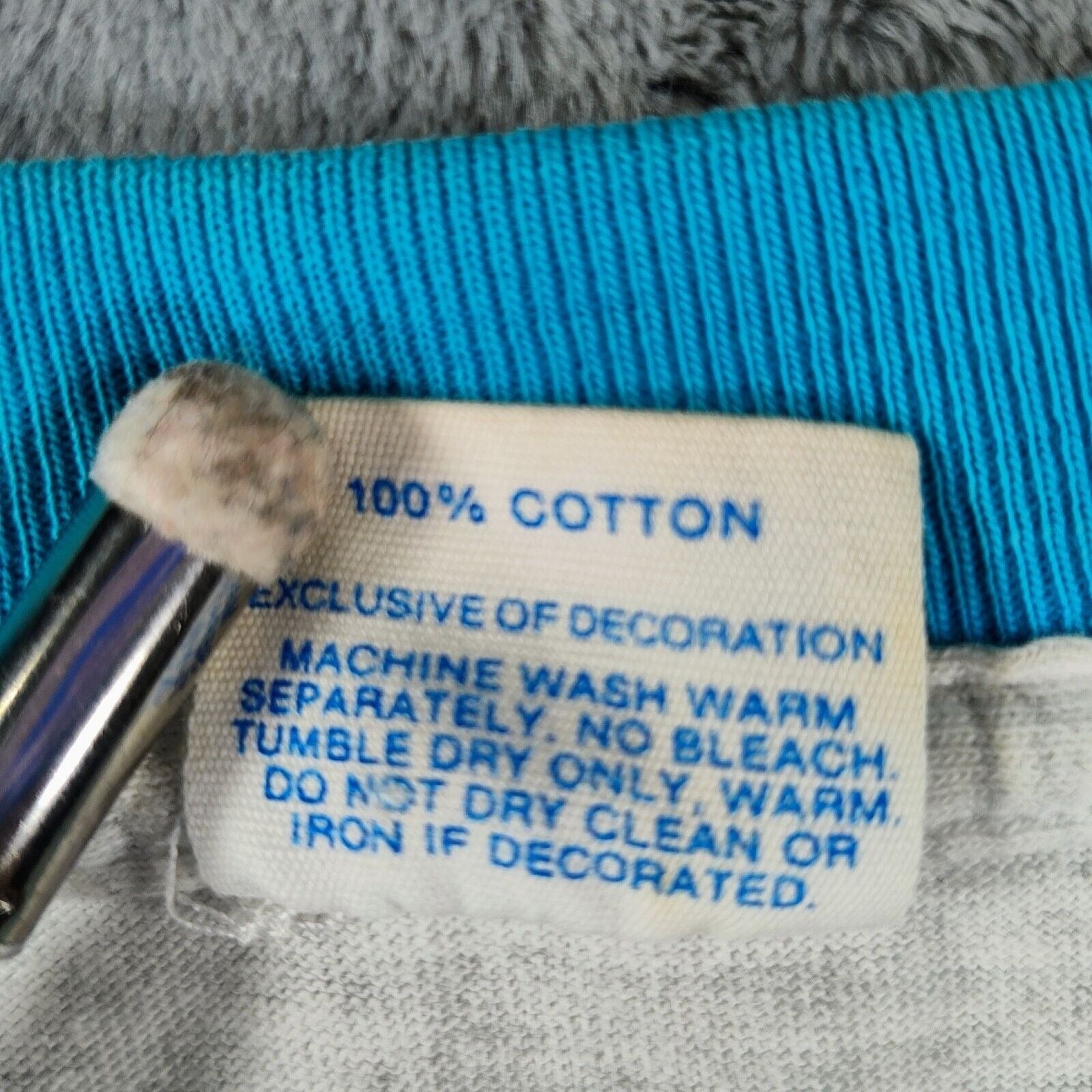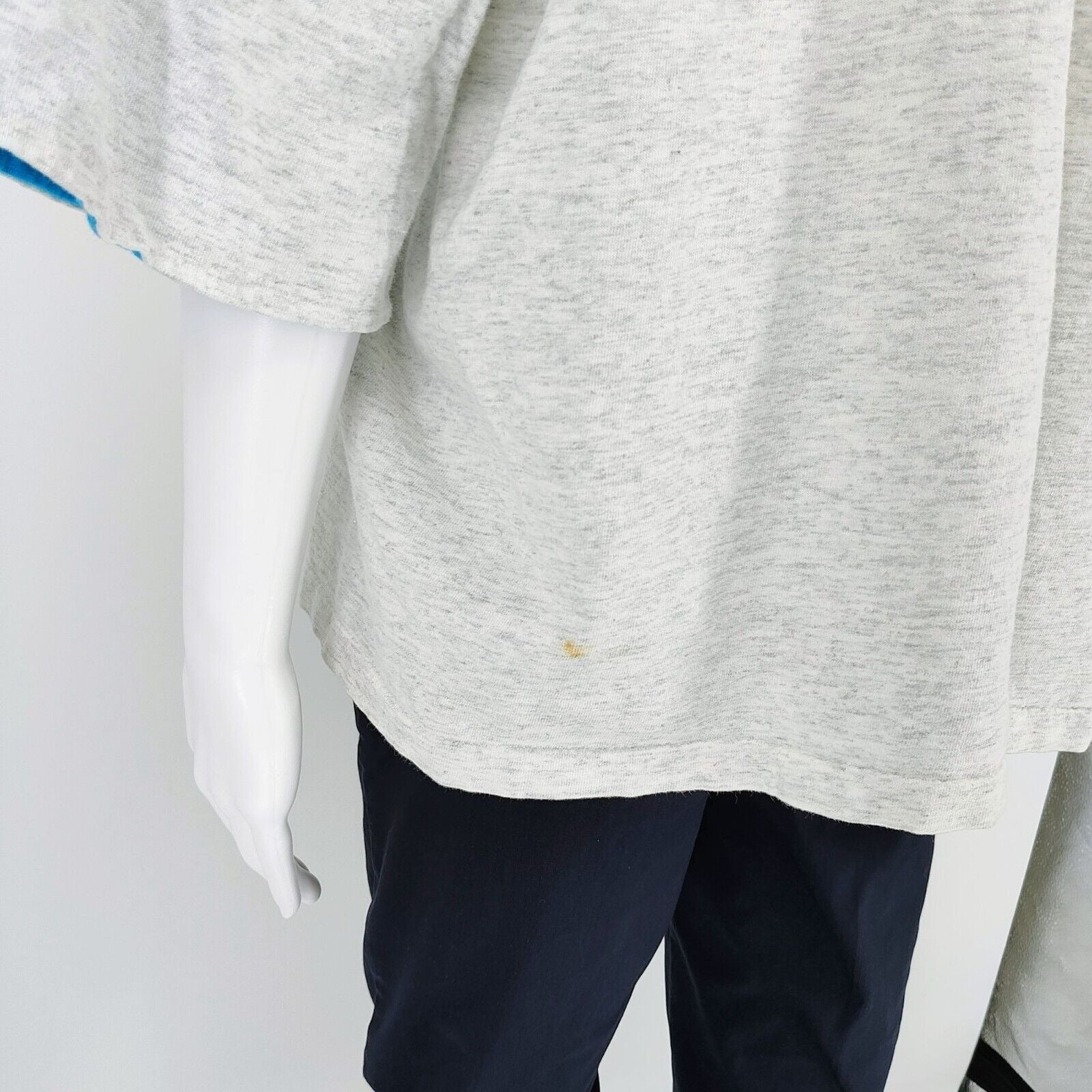 Condition Notes: Fair vintage condition. Staining on Mickey Mouse logo. Small stains below collar and discoloration at collar. Small stains on left shoulder. Staining on back on left side near hem. Moderate wear throughout. See photos.