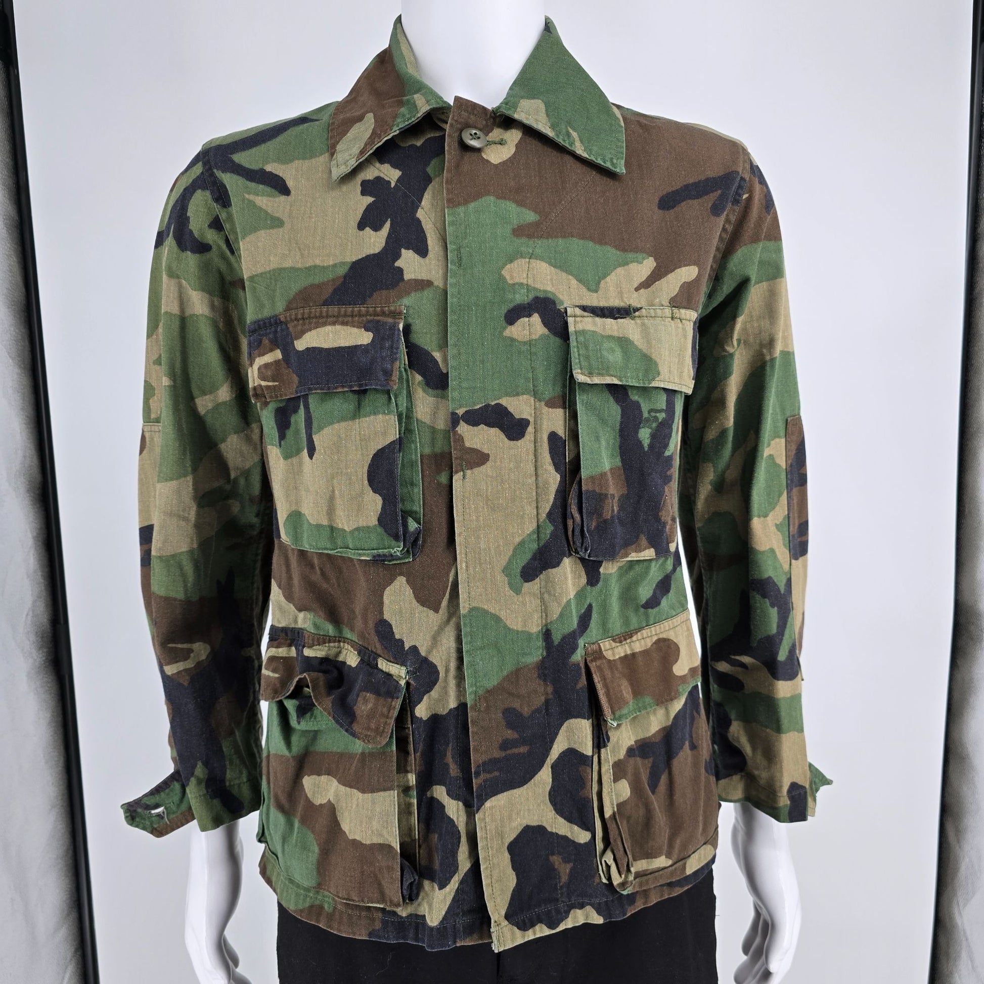 Vintage 1982 U.S. Army Woodland BDU Camouflage Combat Jacket (Small Short)