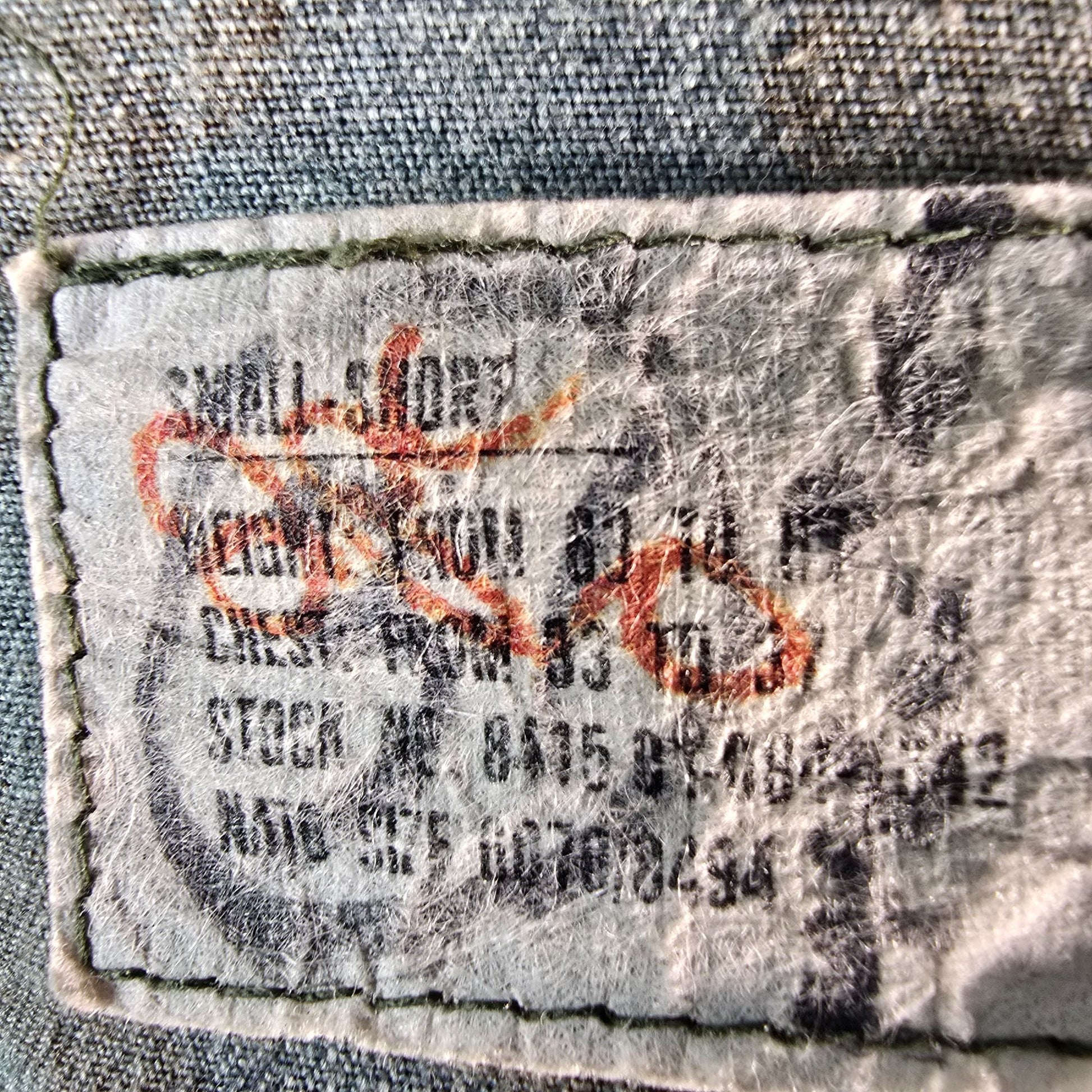 Good overall used service-worn condition. No missing buttons. No identified rips, cuts, holes, or tears. Ink markings on inner labels. Moderate to heavy fabric wear and fading throughout. See photos for details.