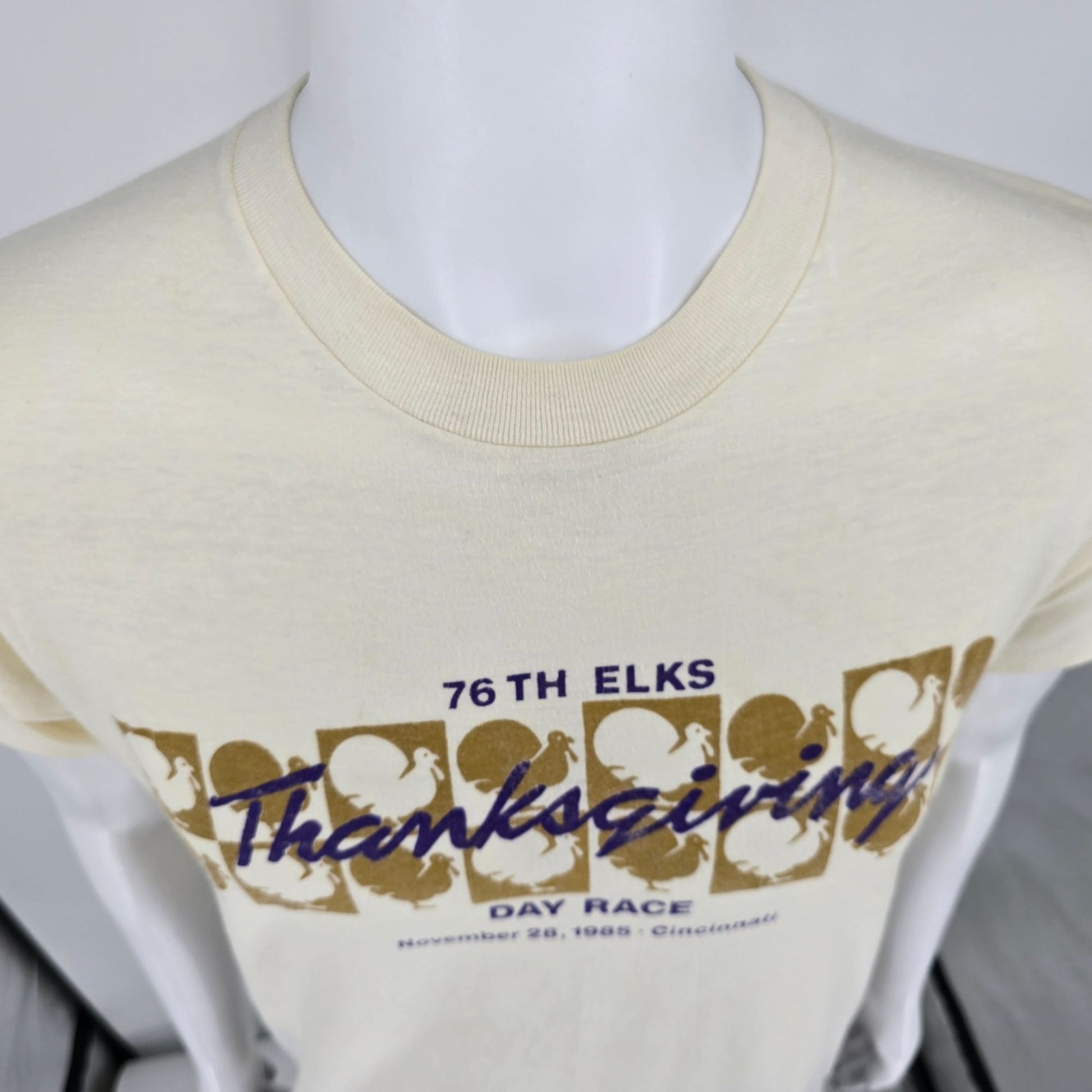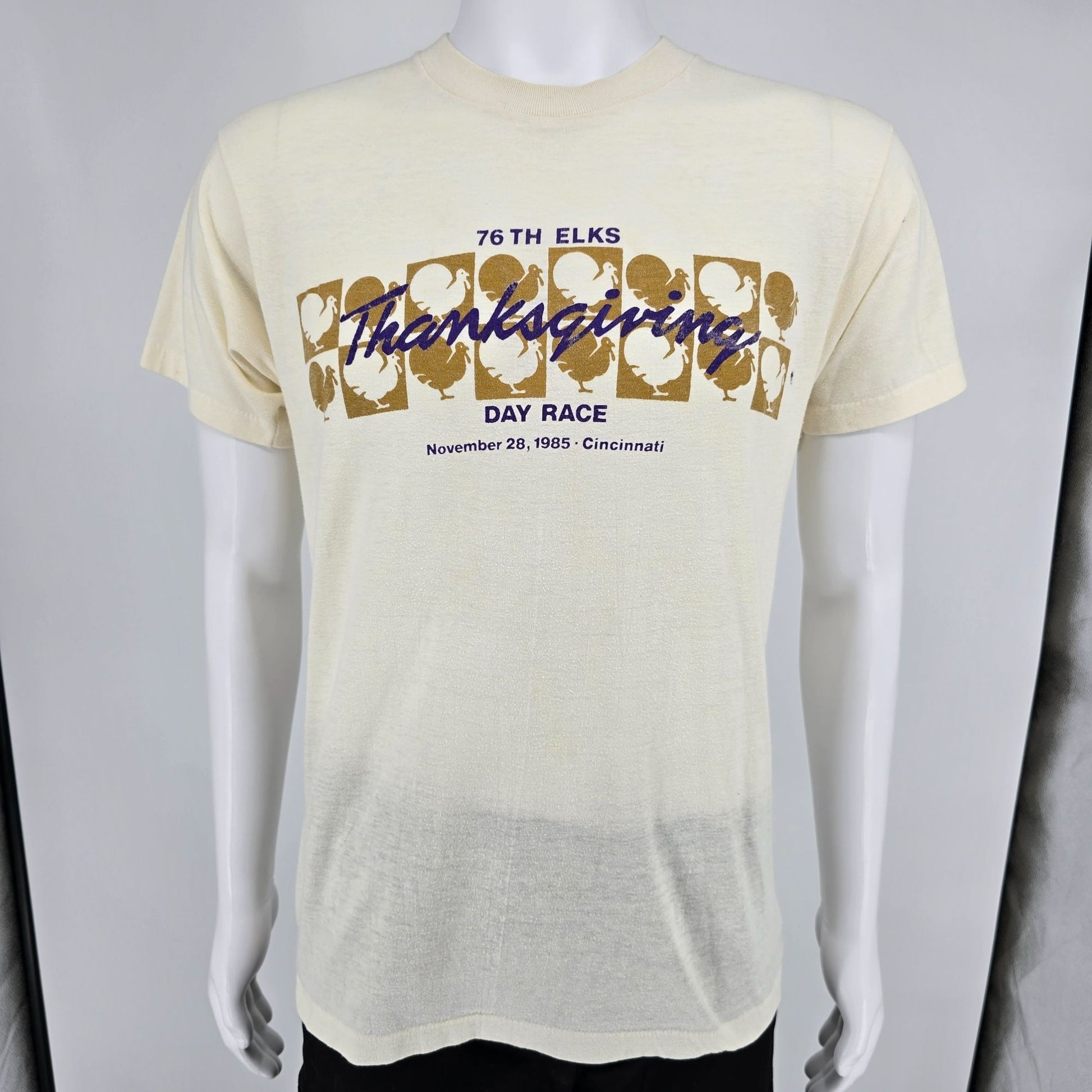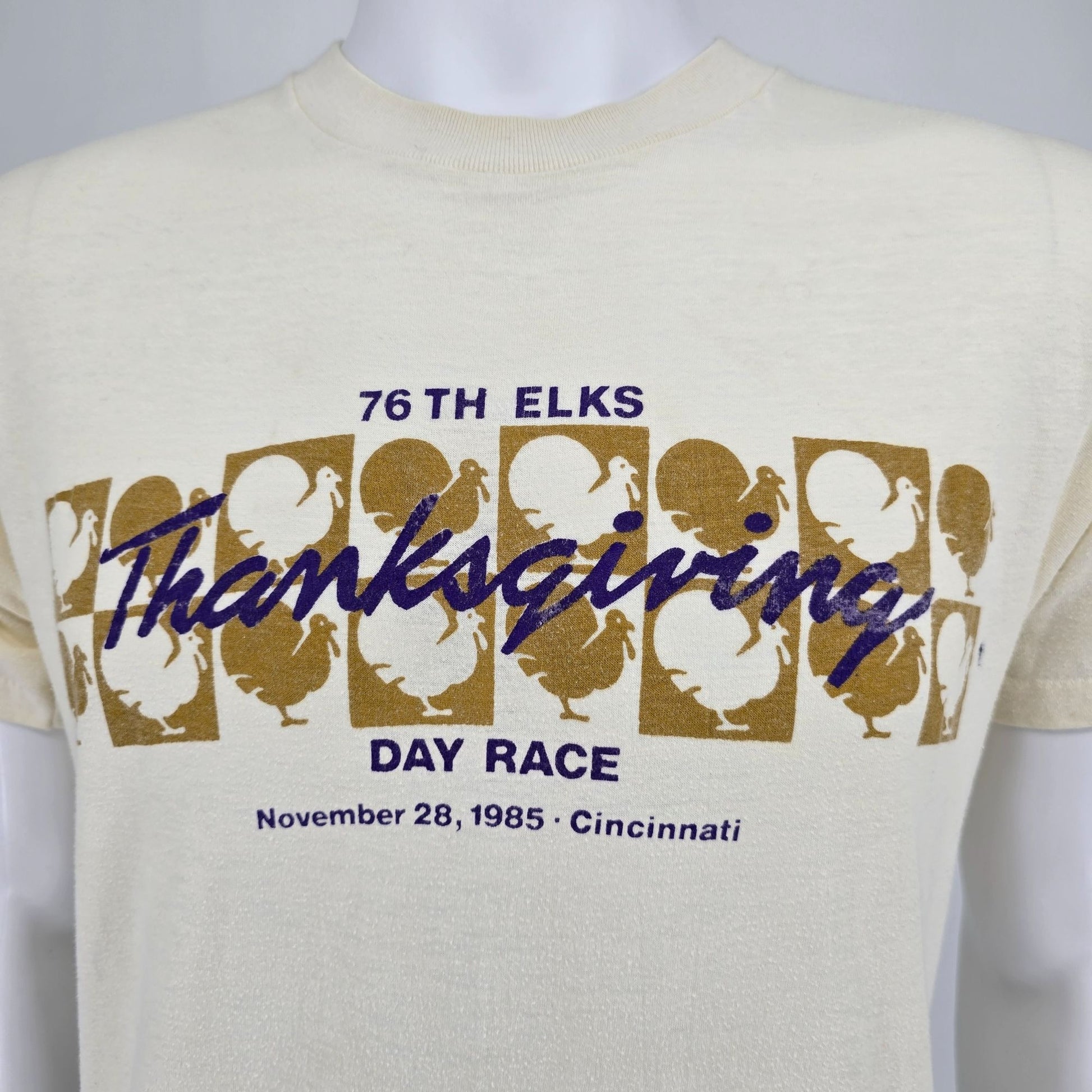 Vintage 1985 Elks Thanksgiving Day Race T-Shirt XL Bob Ronckers Running Spot USA