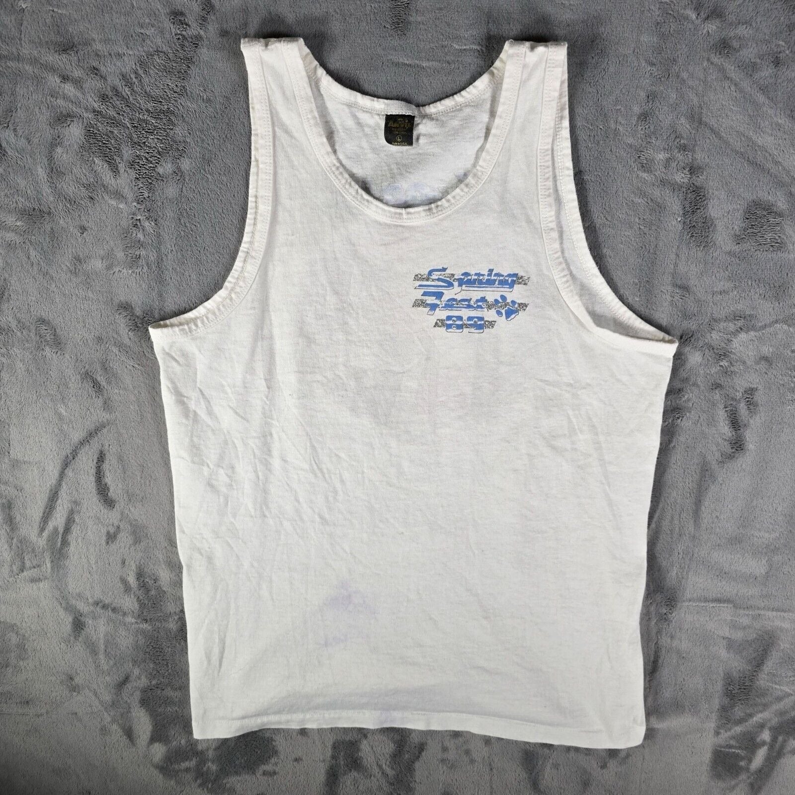 Vintage 1989 Anvil "Spring Break 89" White Sunset Graphic Tank Top (Medium)