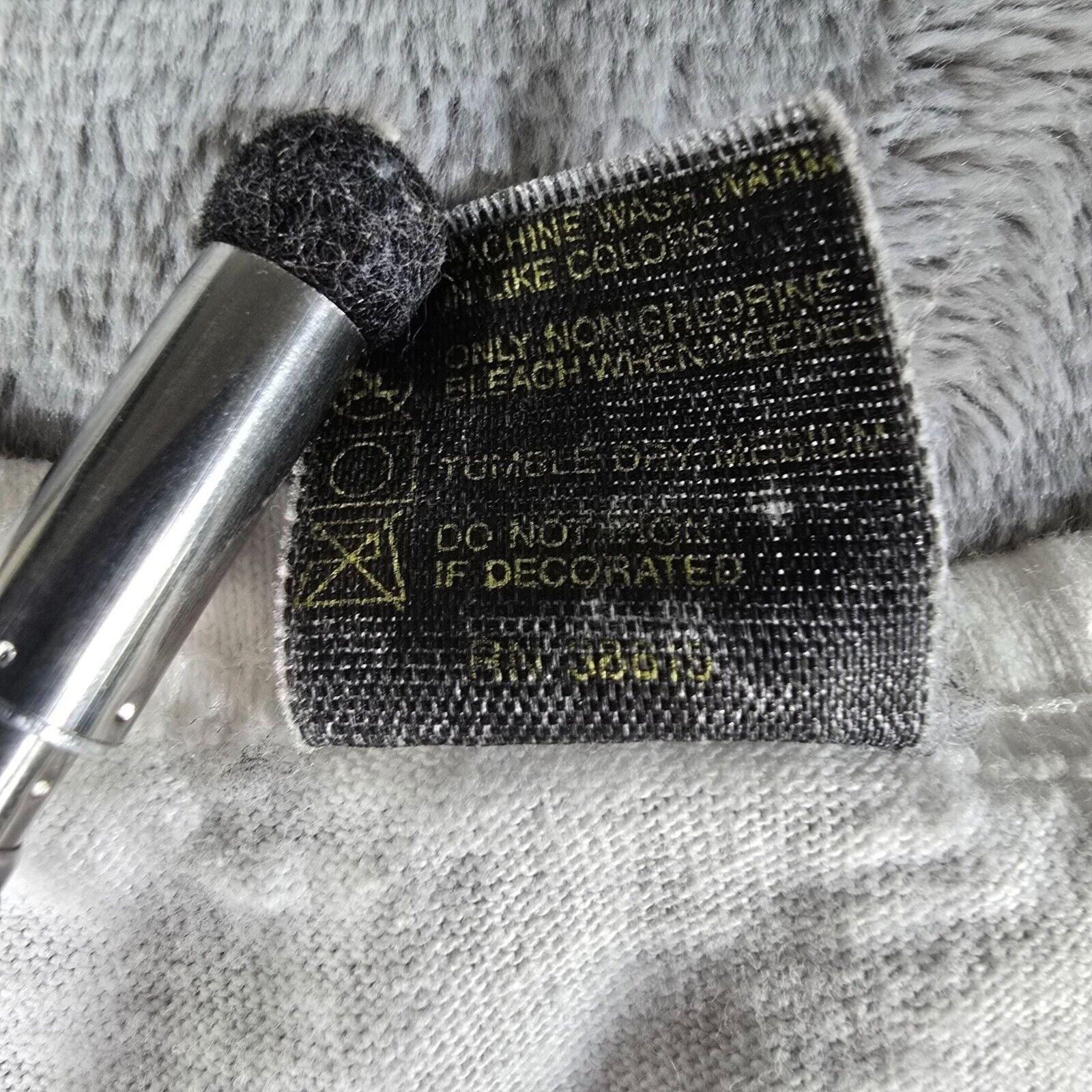 Large spot of faint purple discoloration on front of tank top near bottom.