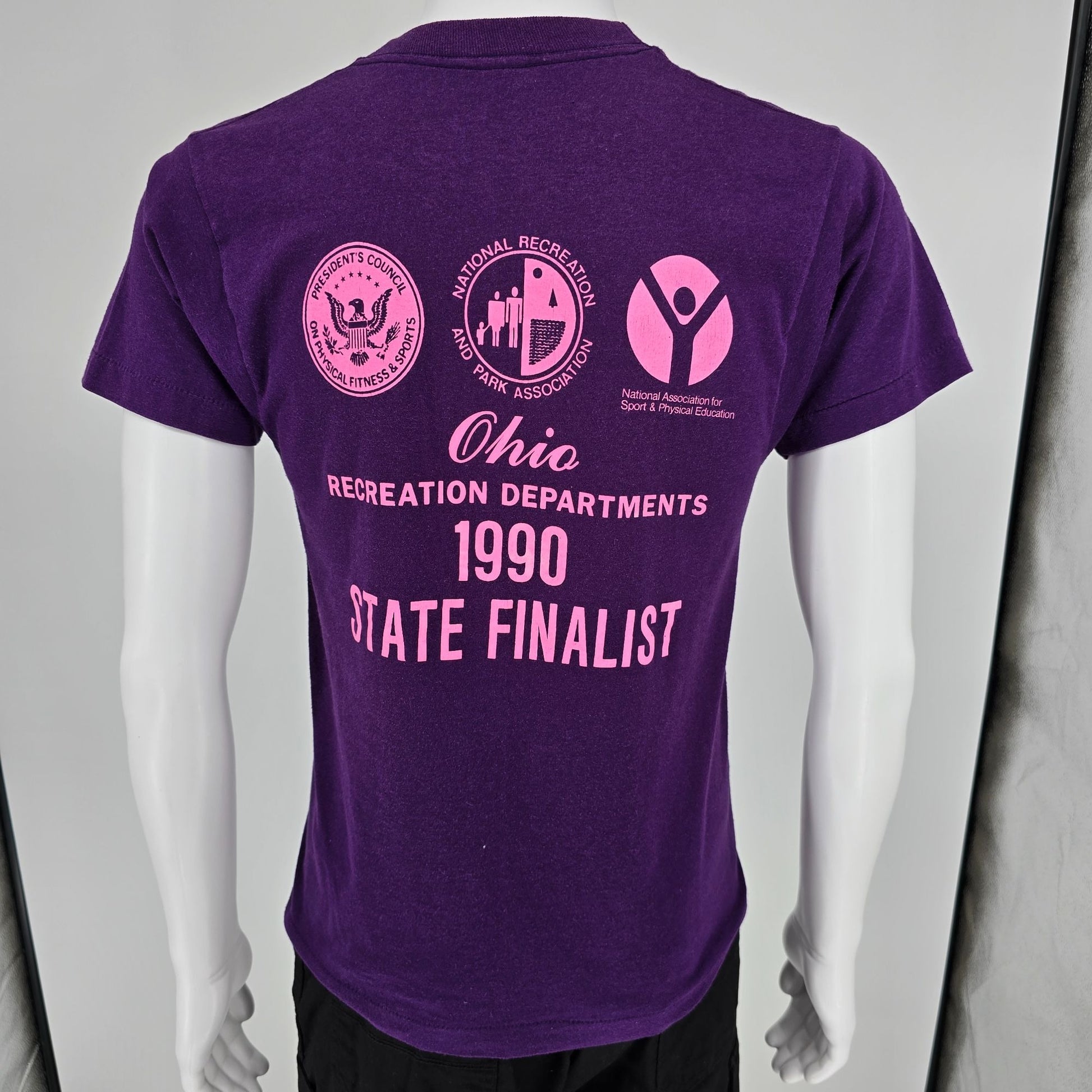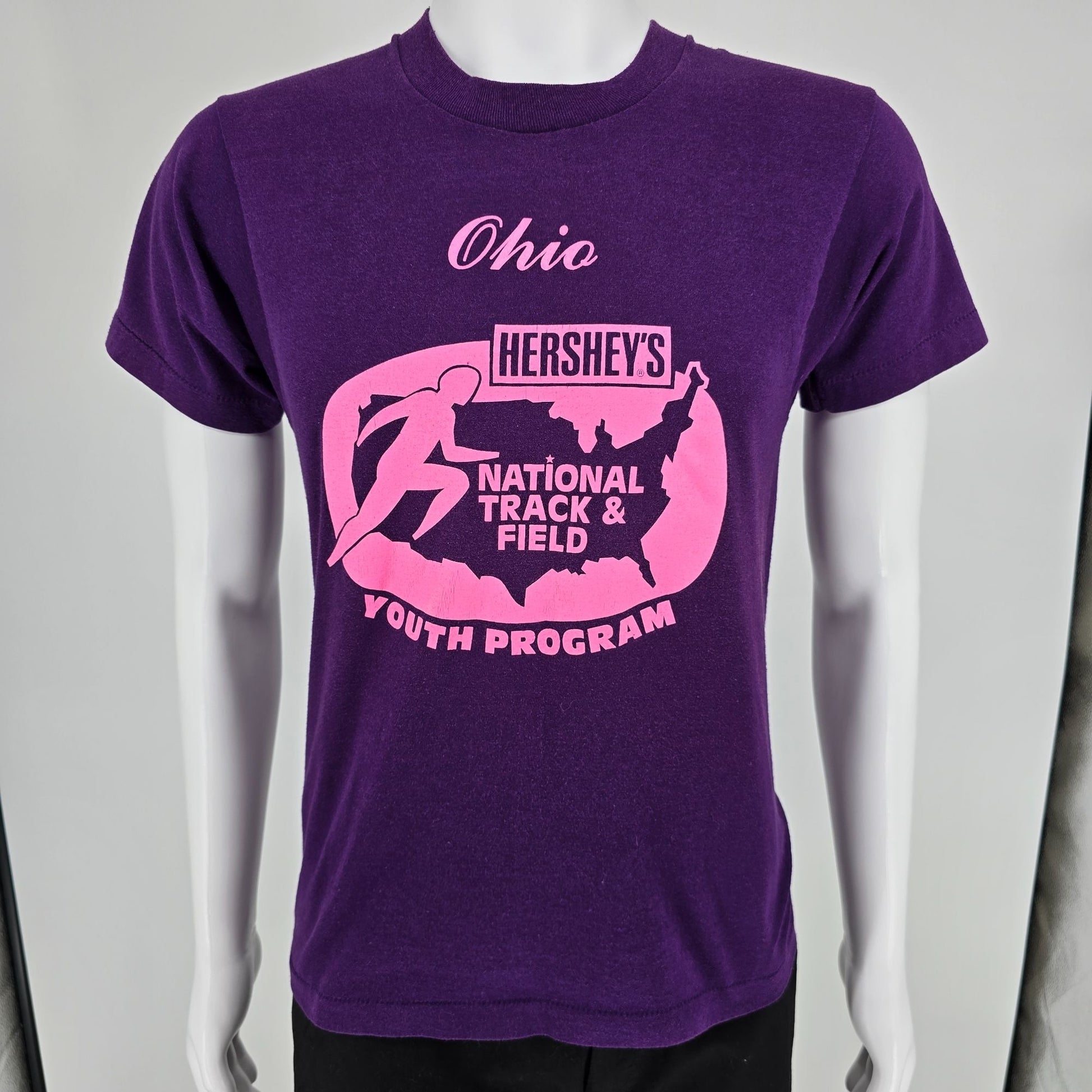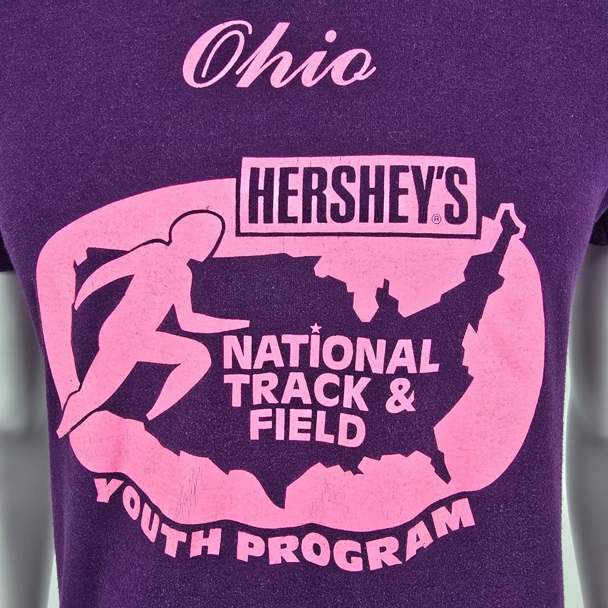 Notable Features: Hershey’s National Track & Field Youth Program “Ohio” front graphic with 1990 State Finalist sponsors/back hit; Single-stitch sleeves and hem