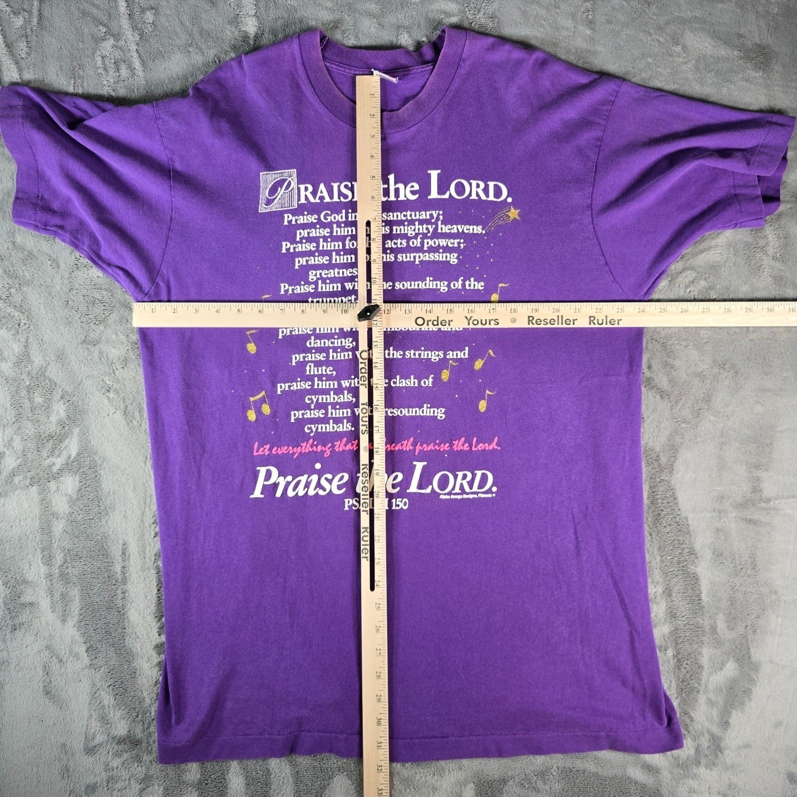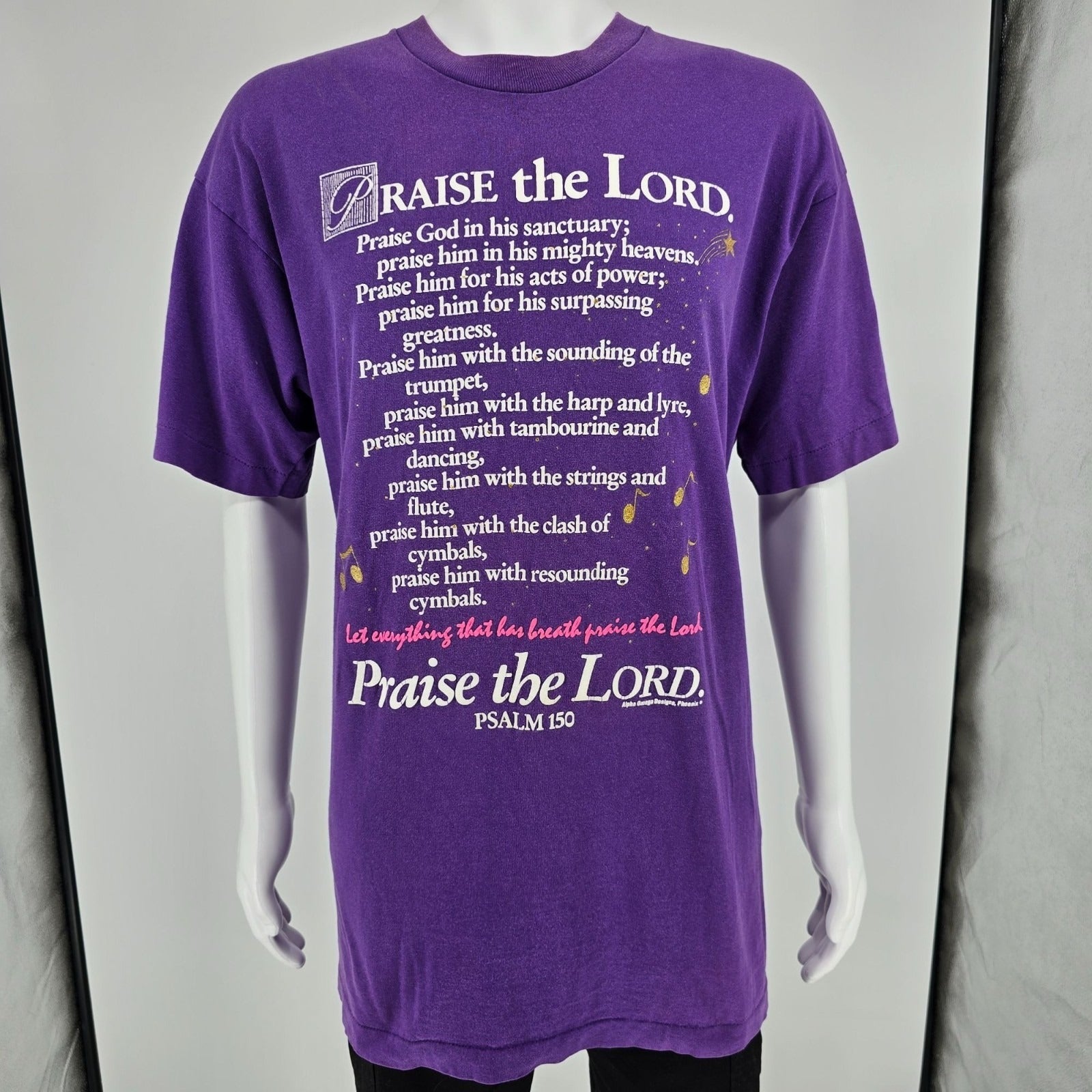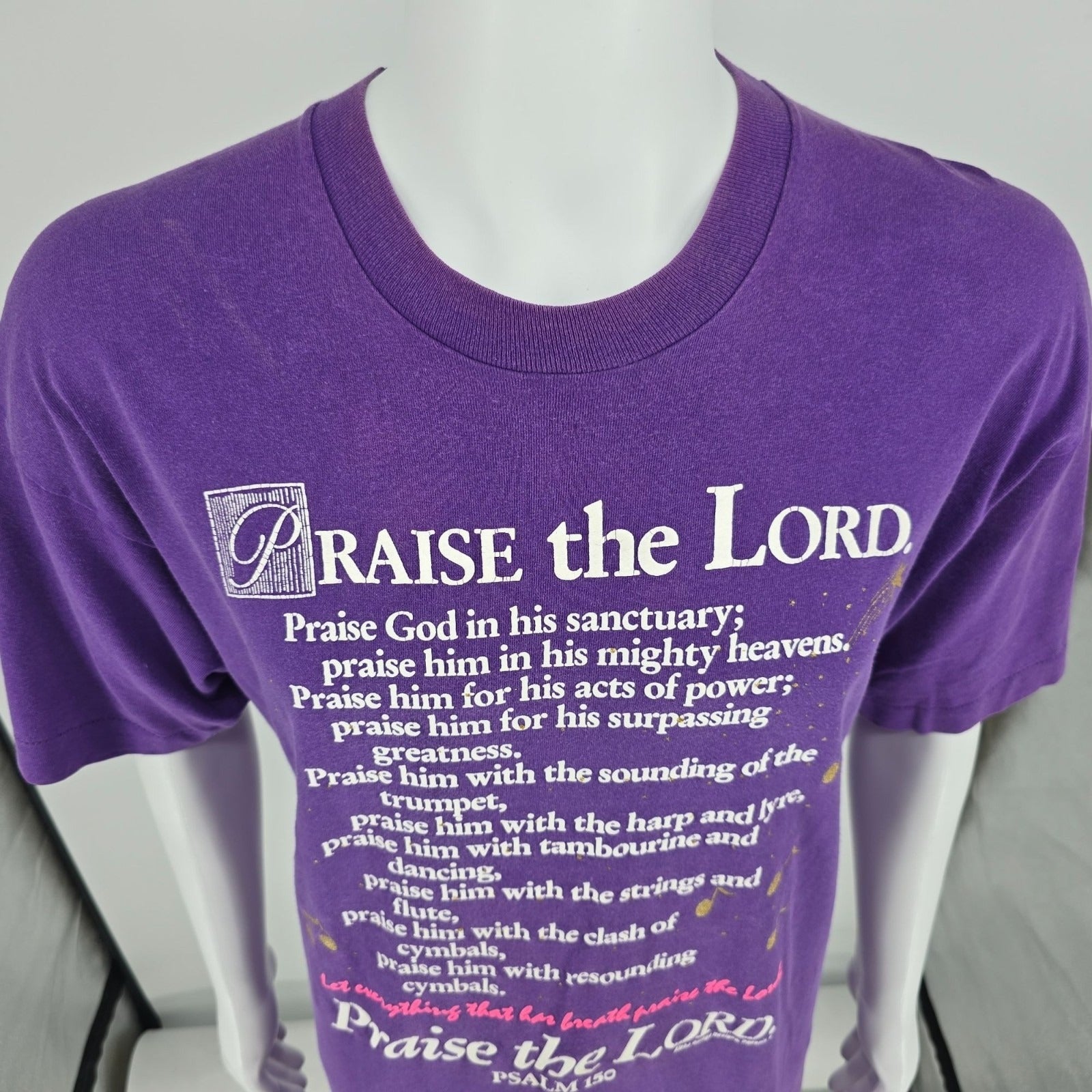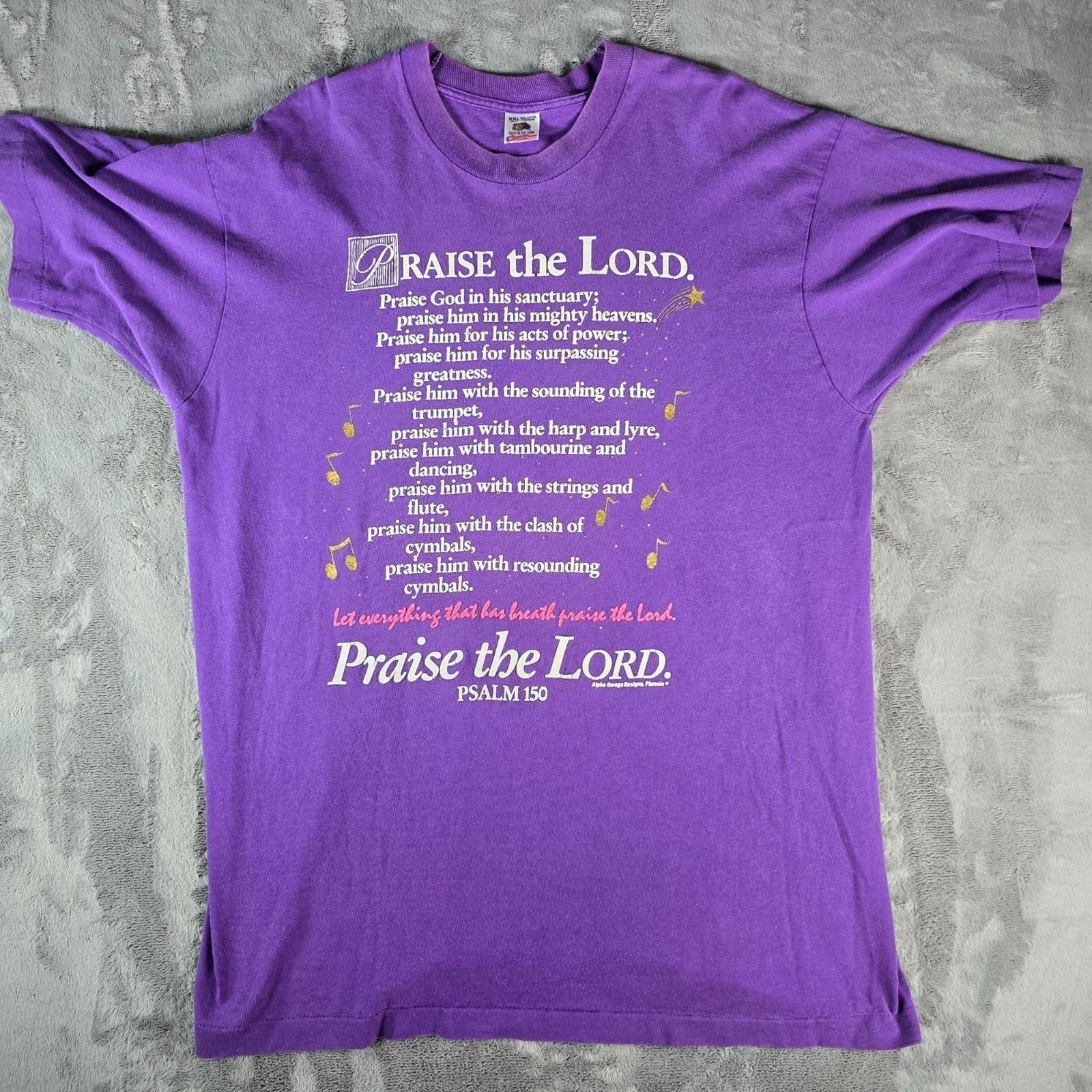 Vintage 1990s Alpha Omega Designs Praise the Lord Psalm 150 Purple T-Shirt (XL)