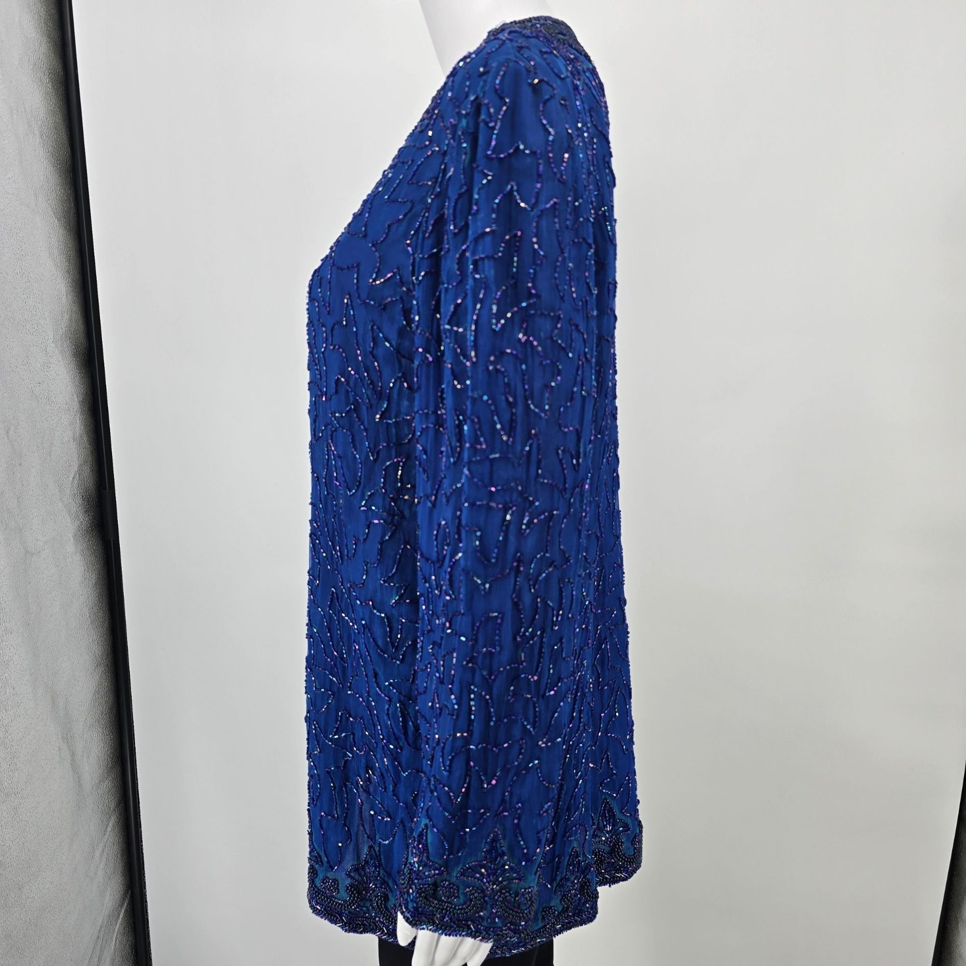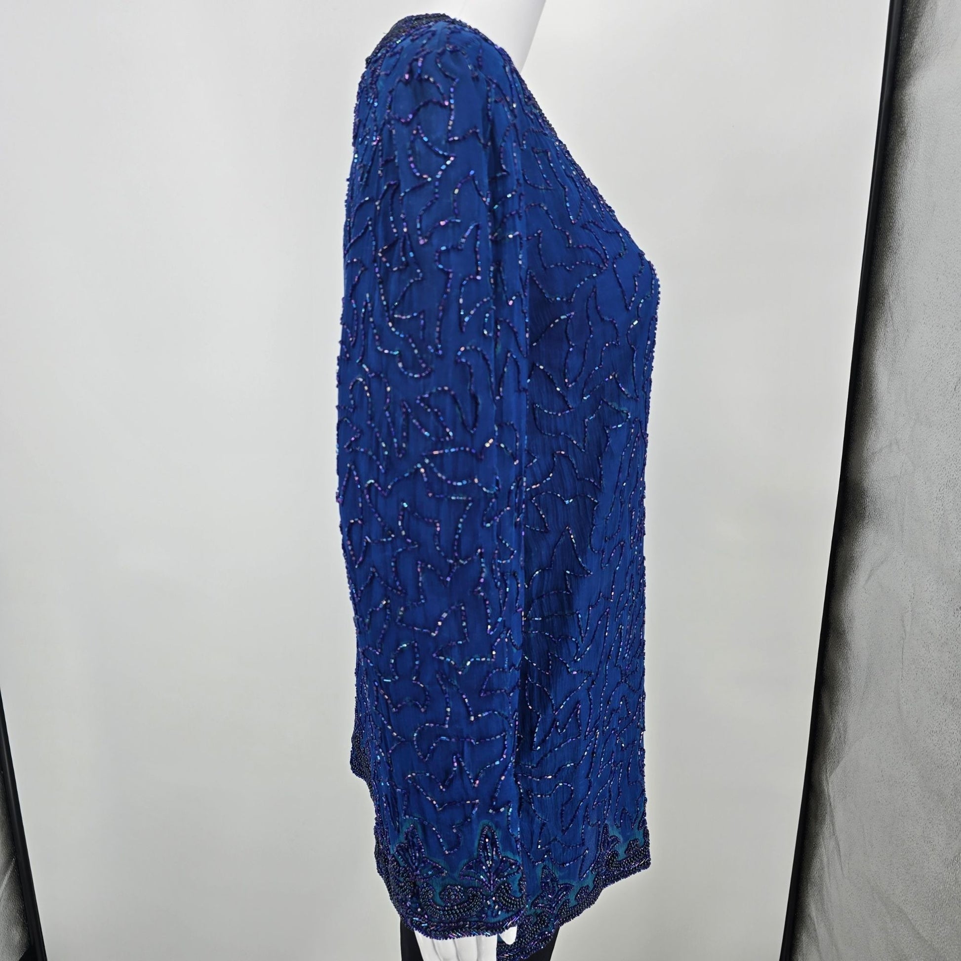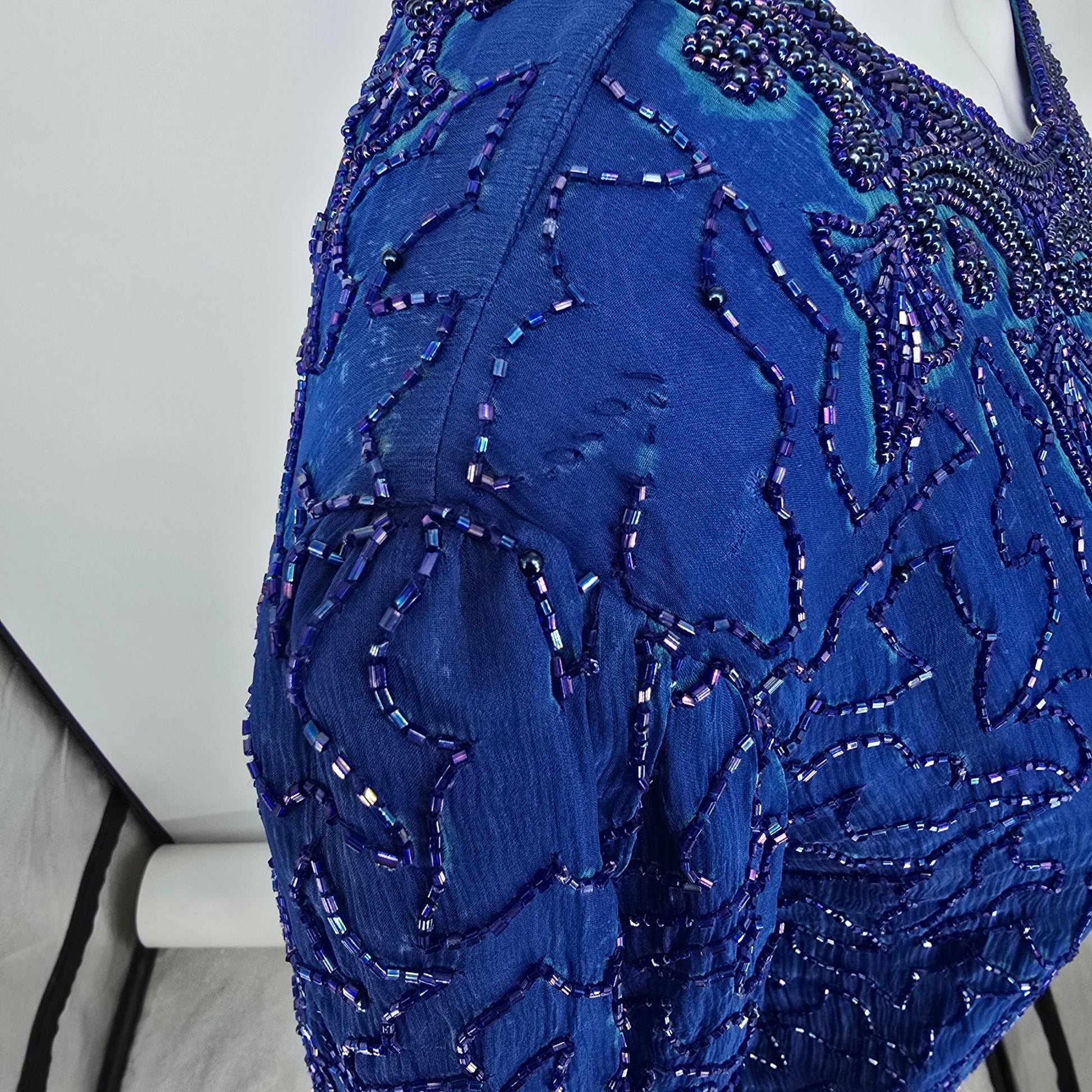 Vintage 1990s Anujan Creation Cobalt Blue Silk Beaded Evening Jacket (M)