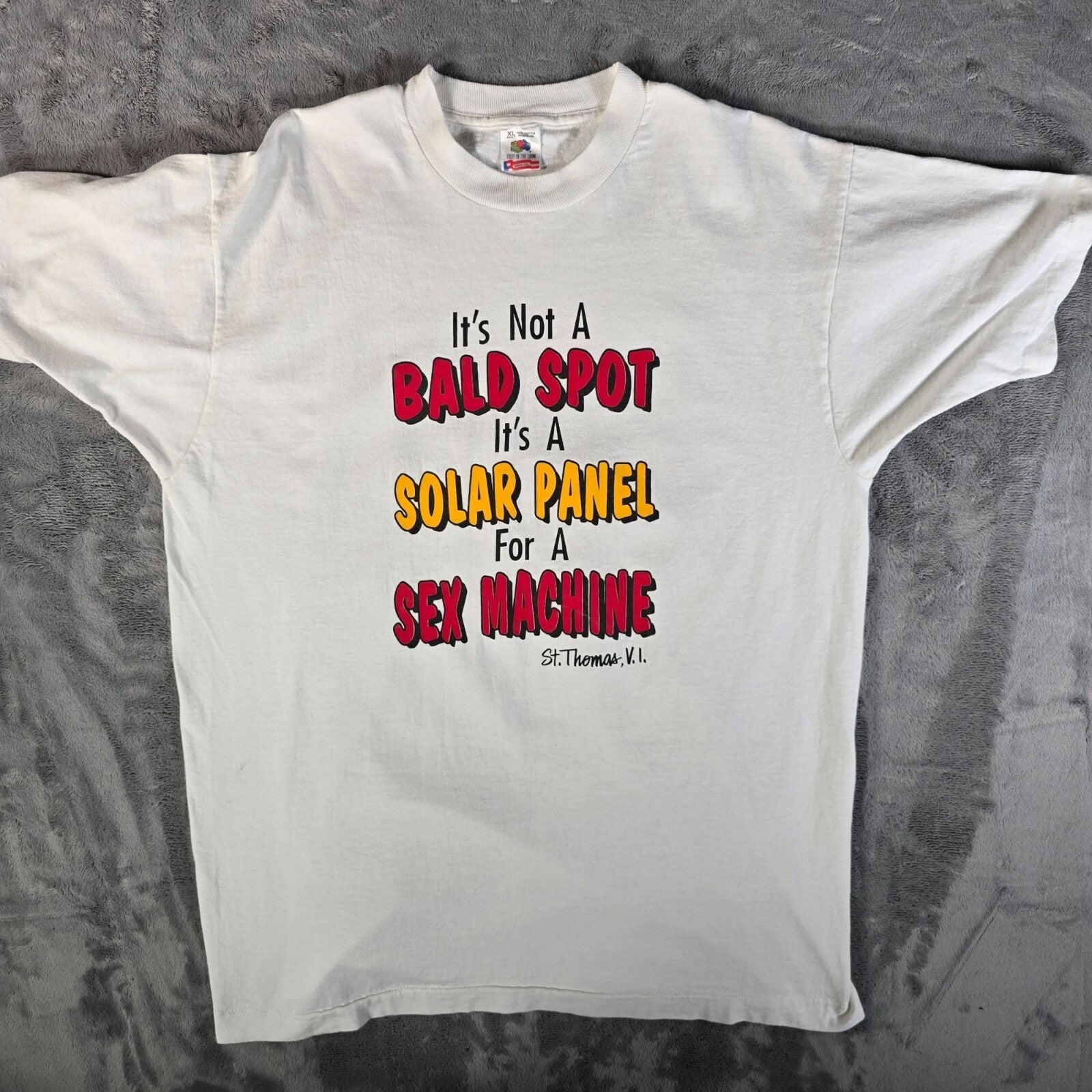 Vintage 1990s Bald Spot Sex Machine St. Thomas, V.I. Tourist T-Shirt (L/XL)
