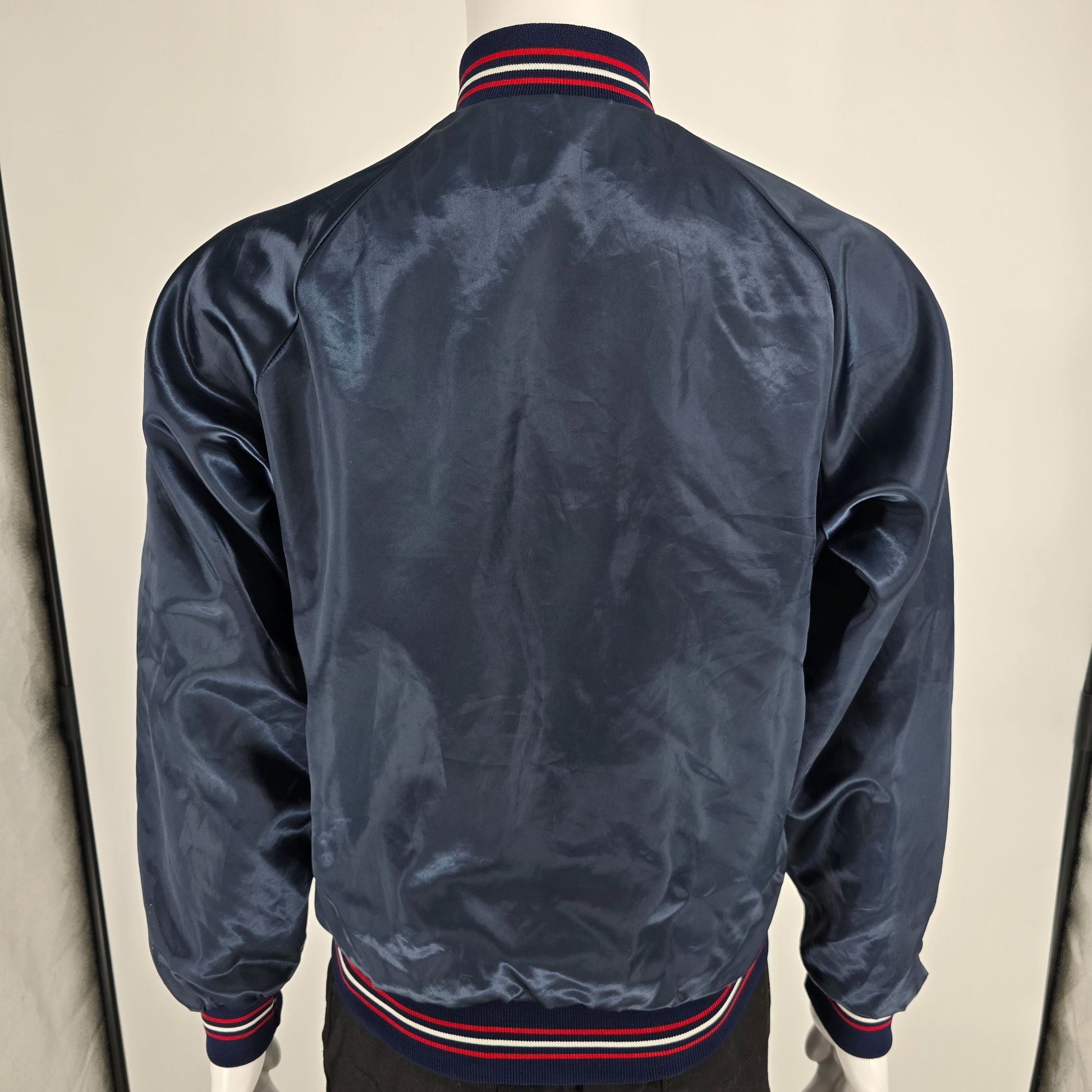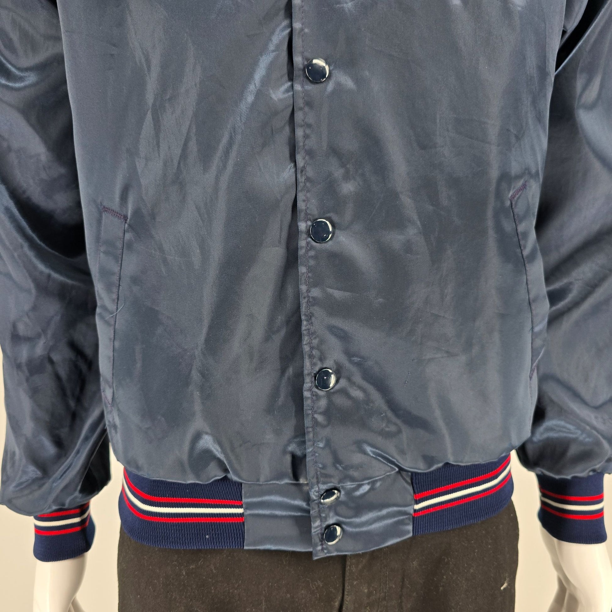 Vintage 1980s Bud Light Delivery Driver Fleece Lined Satin Bomber Jacket (M)