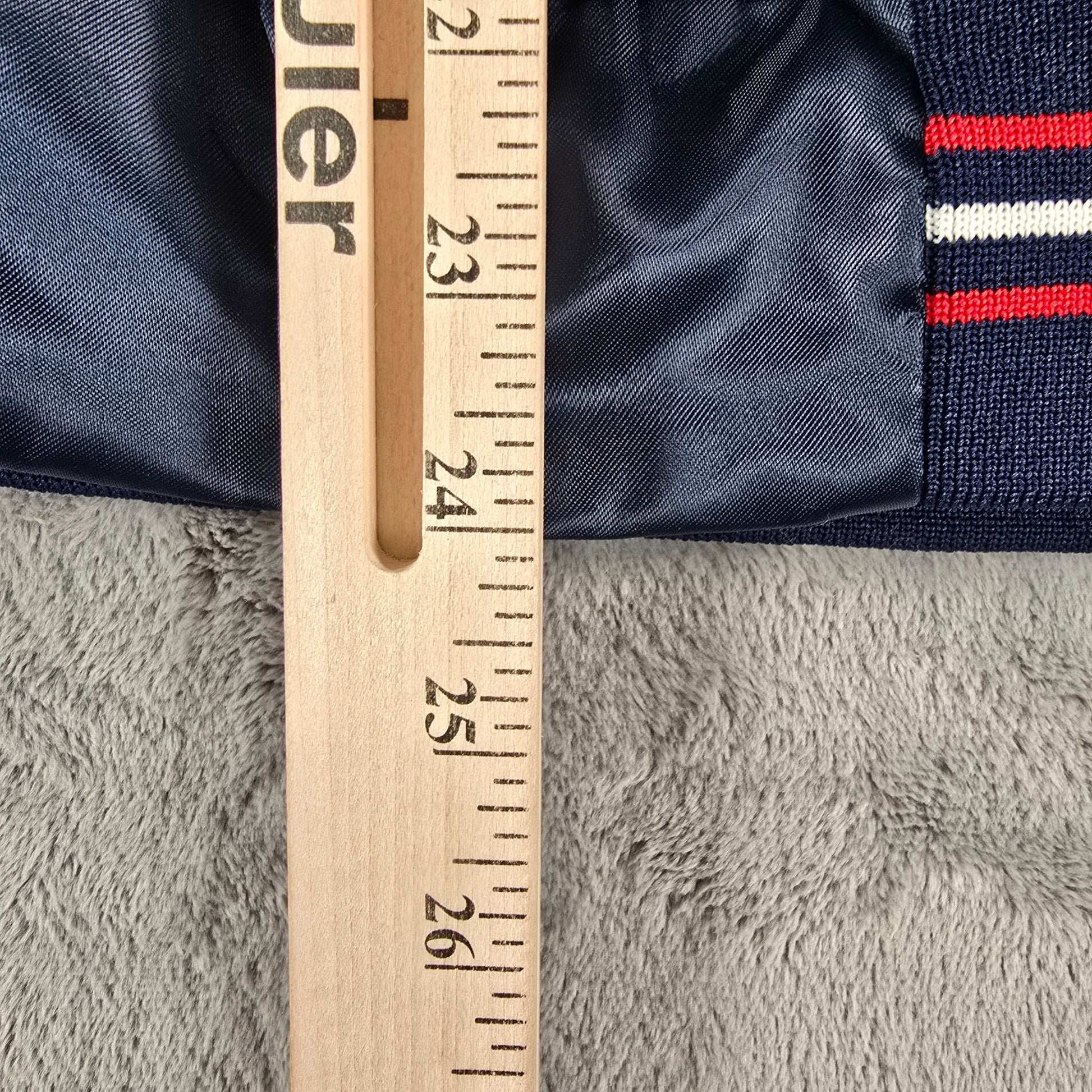 Color: Navy blue (satin finish) with red/white stripe trim