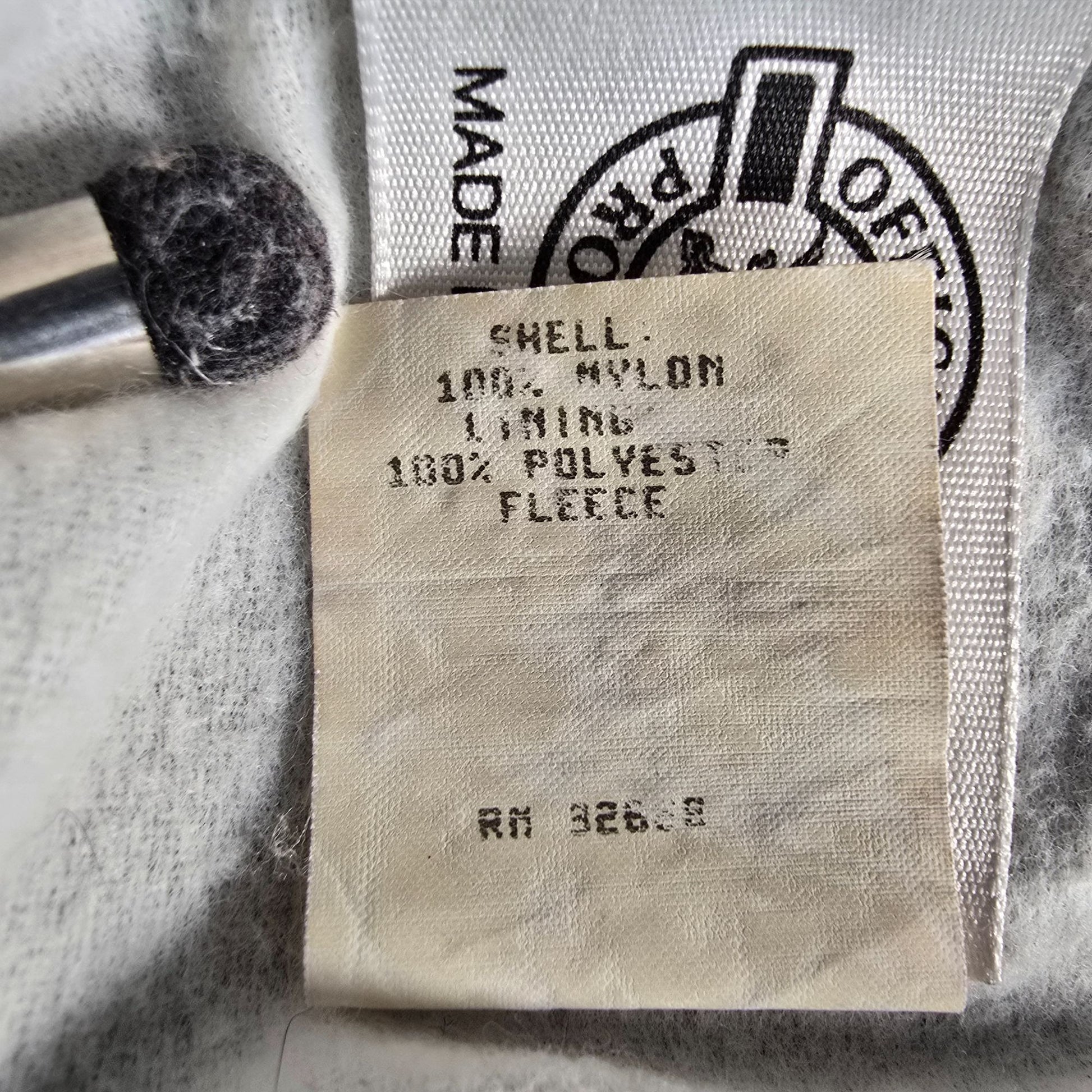 Material: Shell 100% Nylon; Lining 100% Polyester fleece
