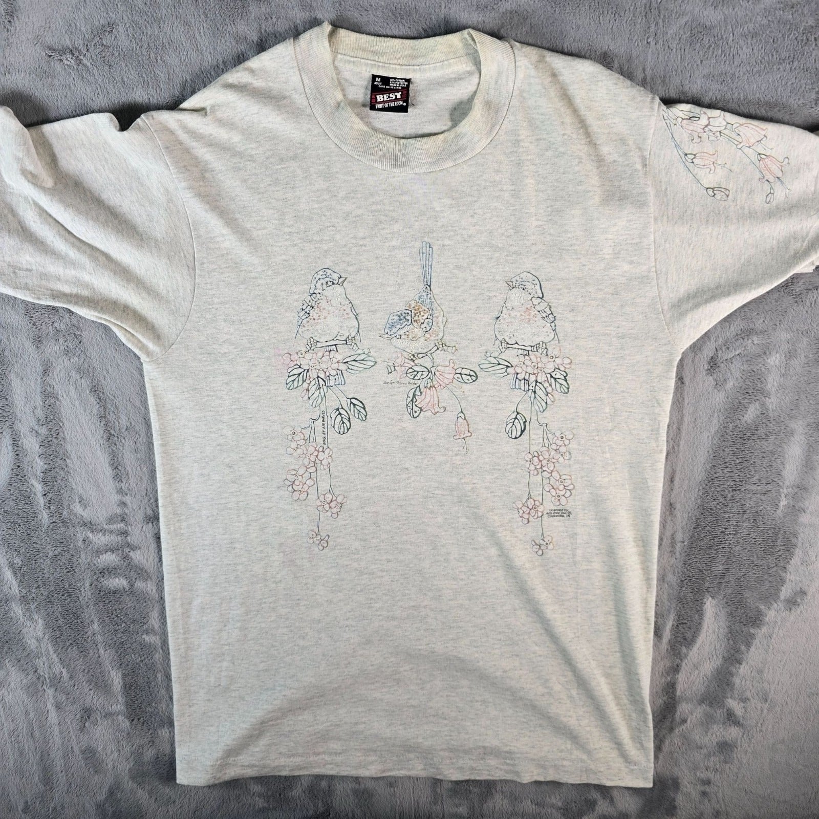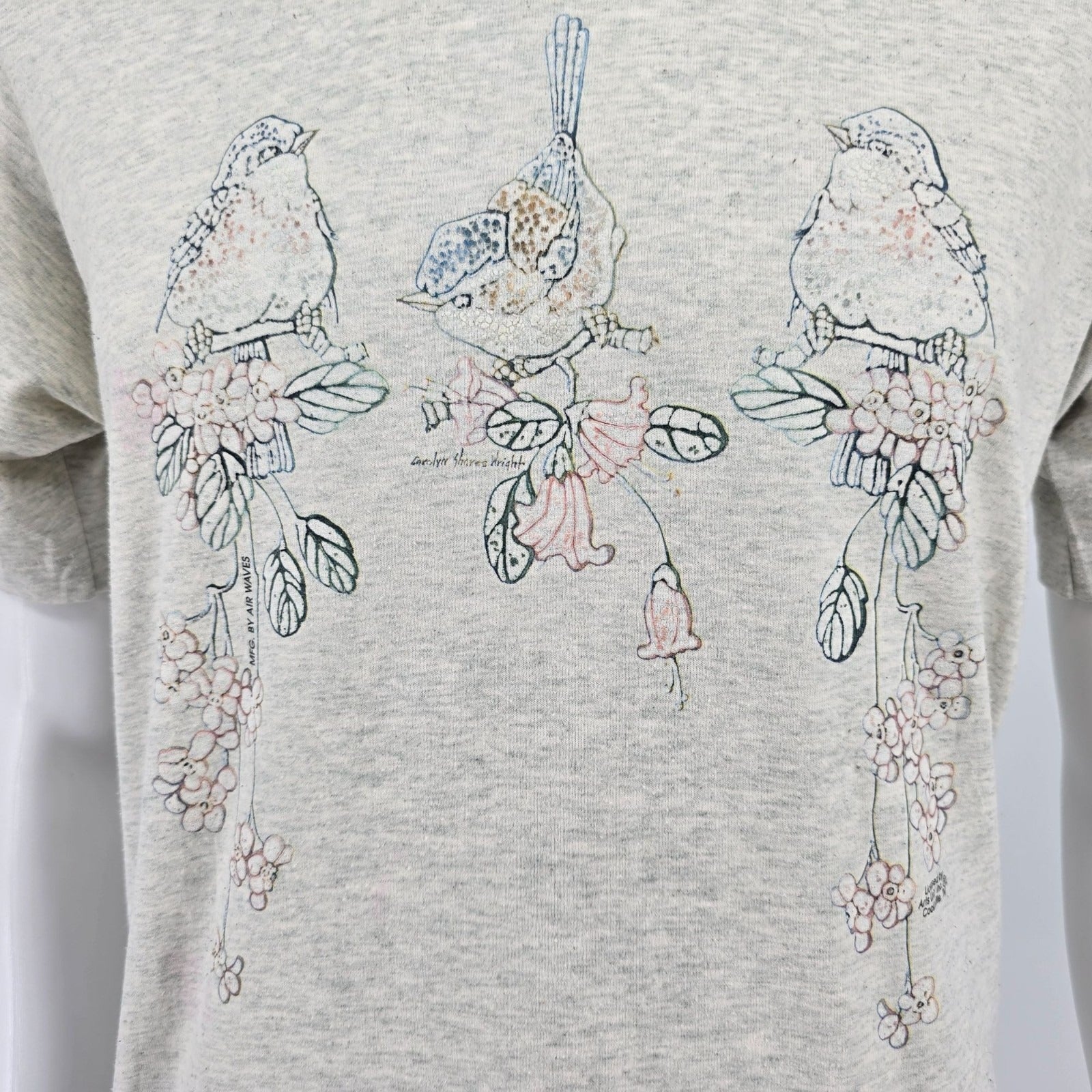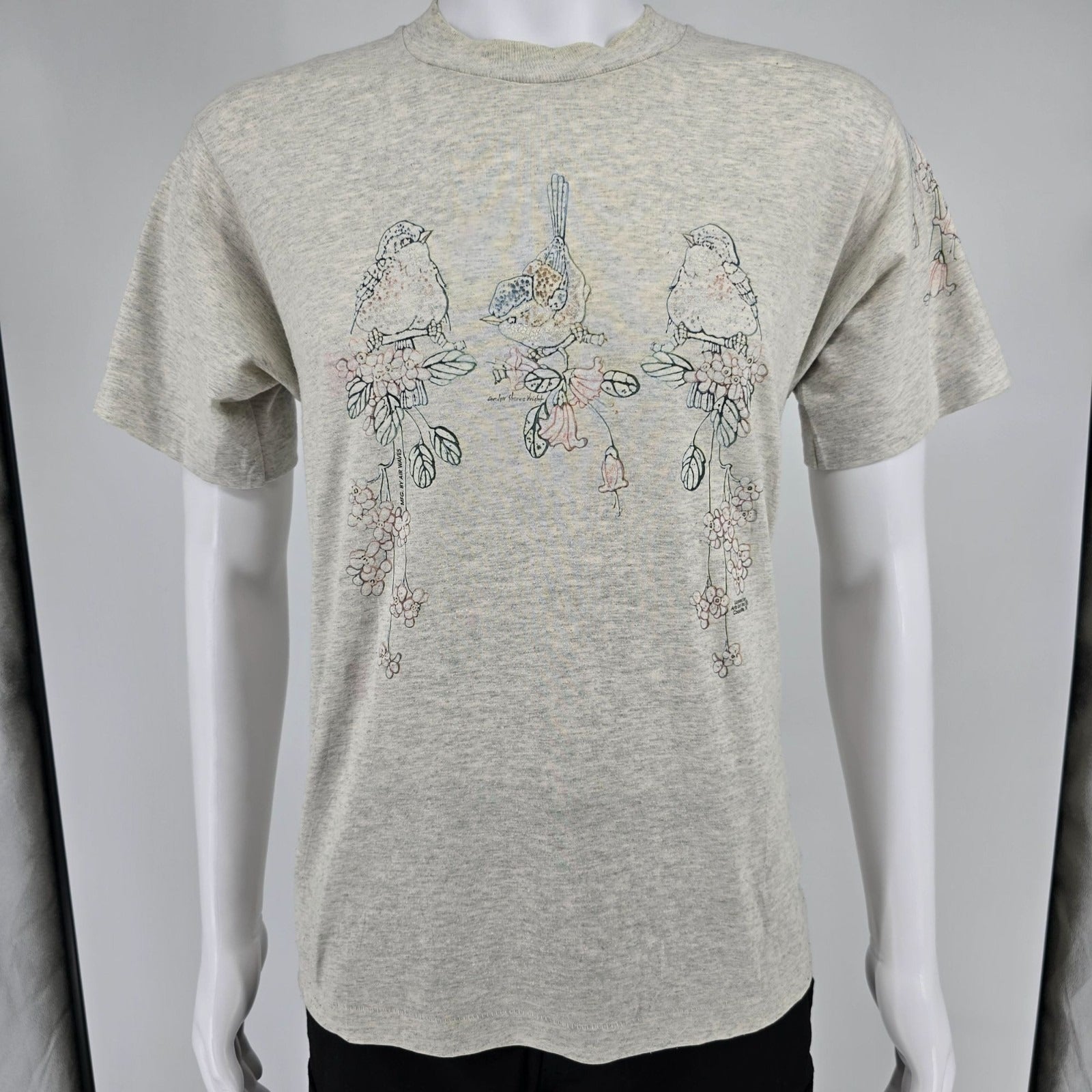 Vintage 1990s Carolyn Shores Wright Bird & Floral Art Single Stitch T-Shirt (M)
