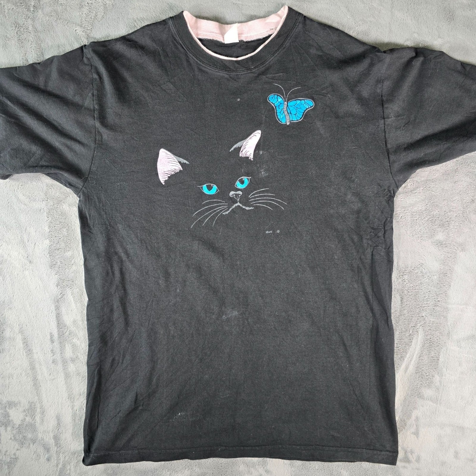 Vintage 1990s Chere Cat & Butterfly Double Collar Double Sleeve T-Shirt (L/XL)