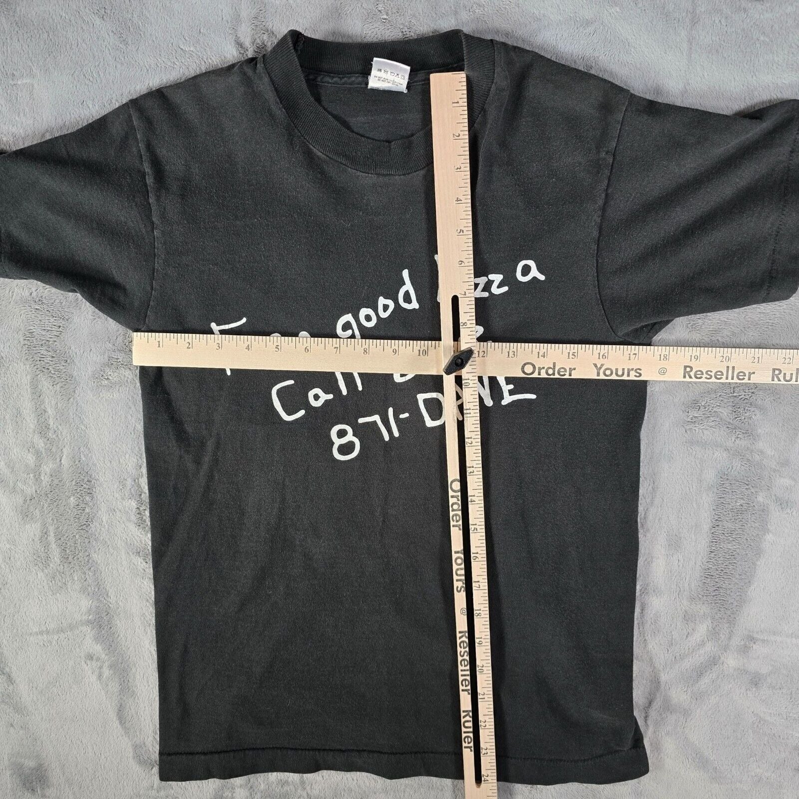 This shirt is from Dave's Pizza in Homewood, Alabama, which opened in 1993. The tag on the shirt is one that Fruit of the Loom started using in 1989 and continued using through much of the 90s.