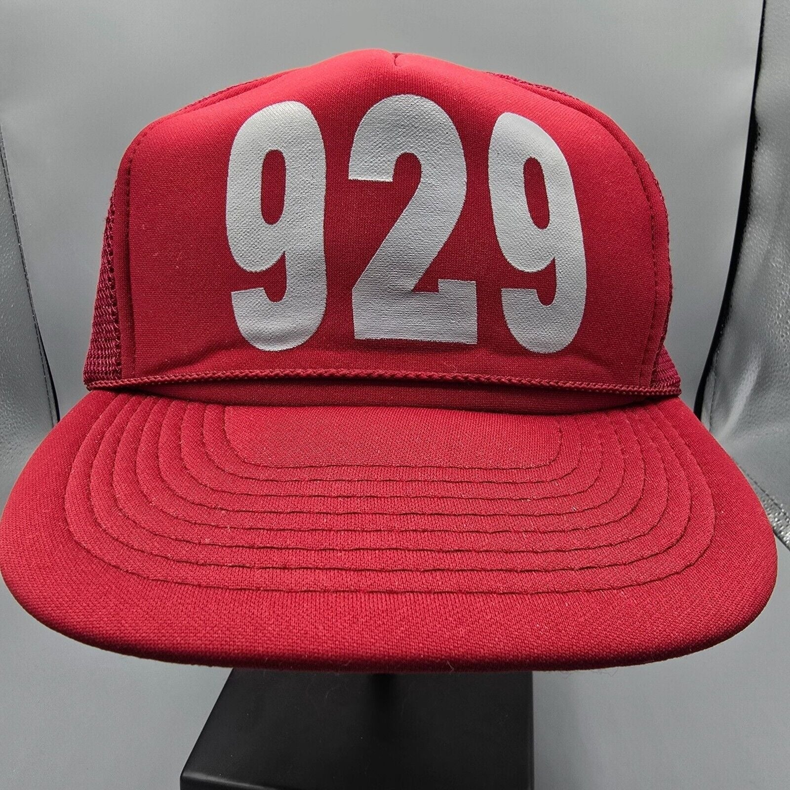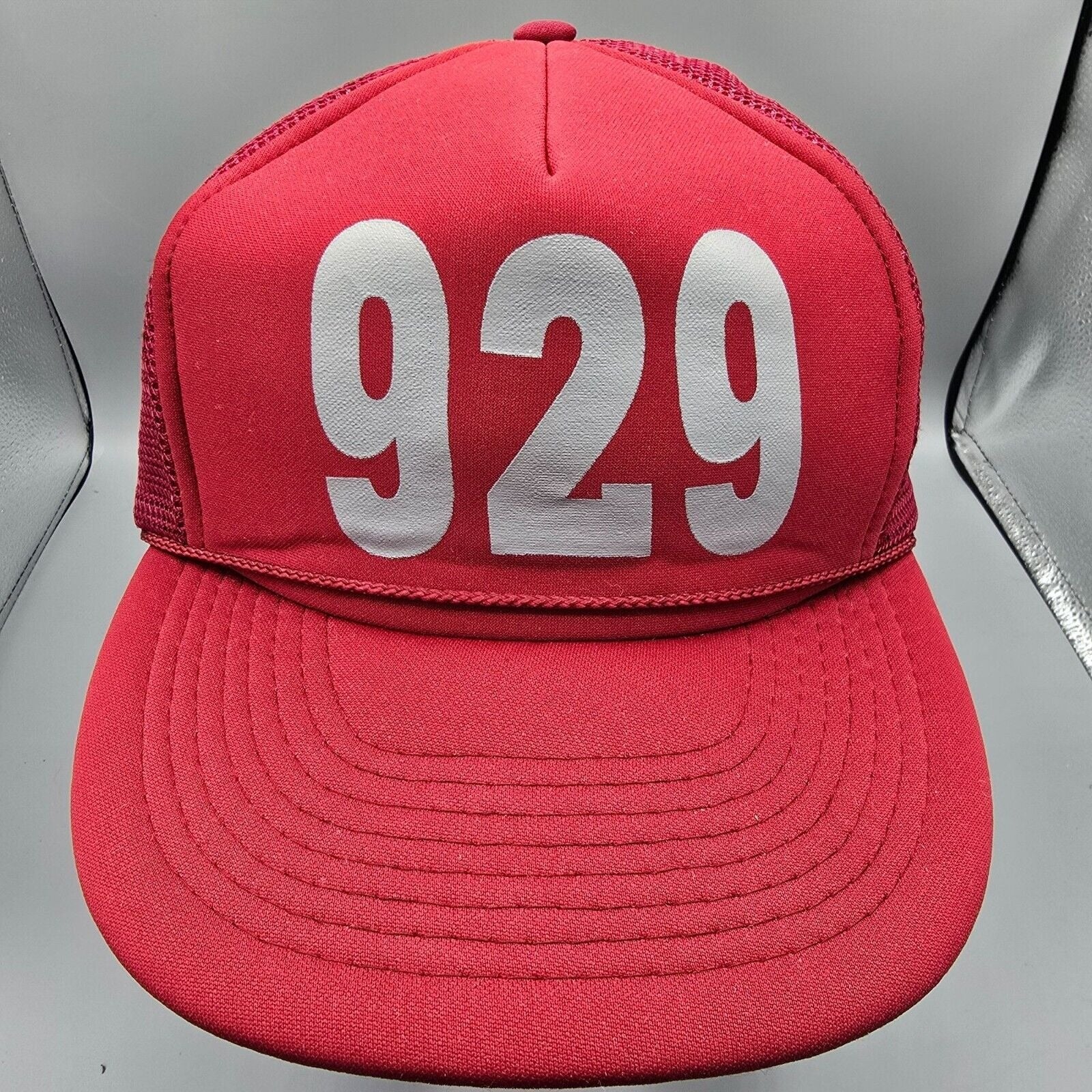 Vintage 1990s Distressed 929 Area Code Red Otto Mesh Back Trucker Hat *Damaged
