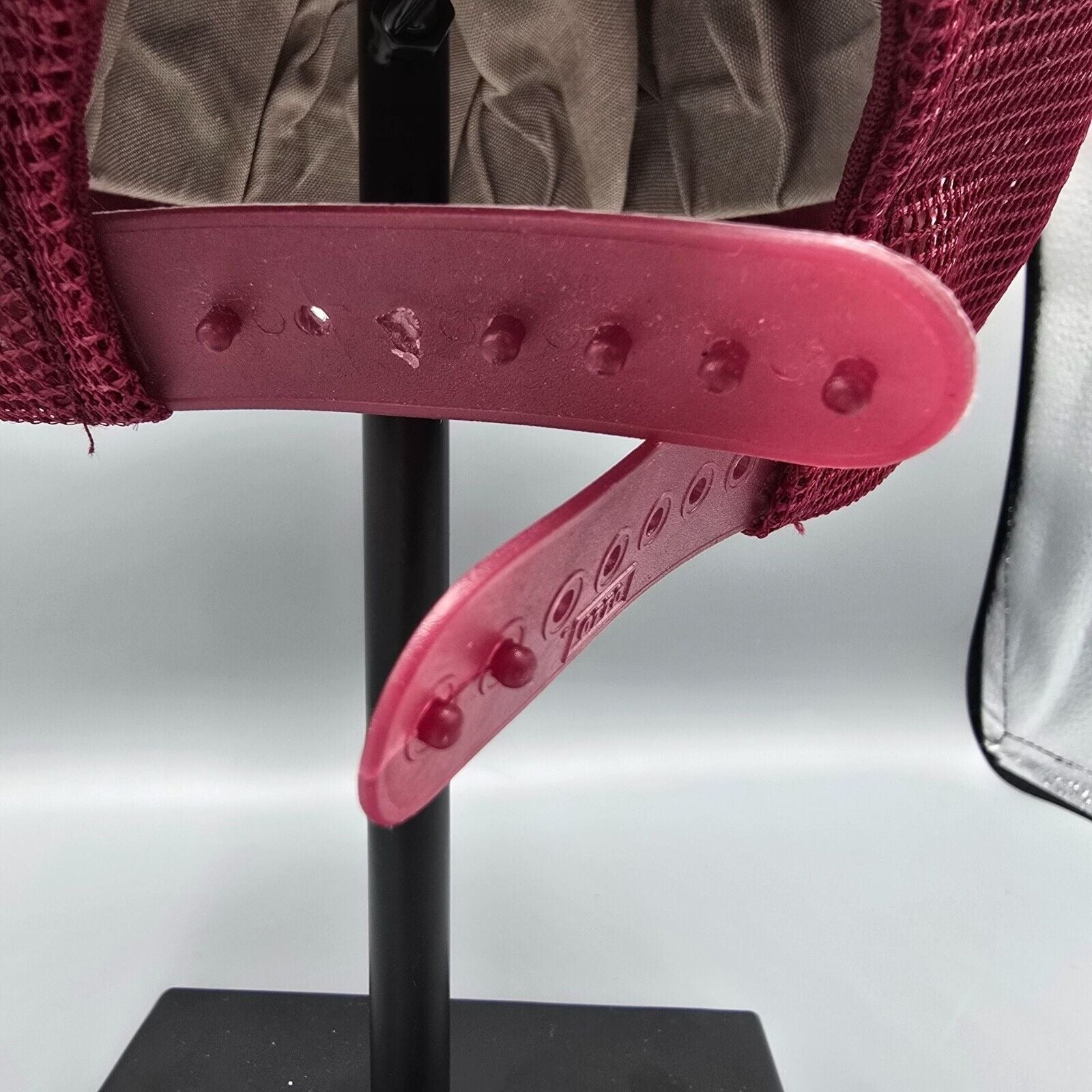 Condition Notes: Fair/distressed used condition. Damage at snapback (two broken plastic dots. Misshaping and flattening of foam panel from storage. Moderate misshaping of mesh panels. Moderate wear throughout. See photos.