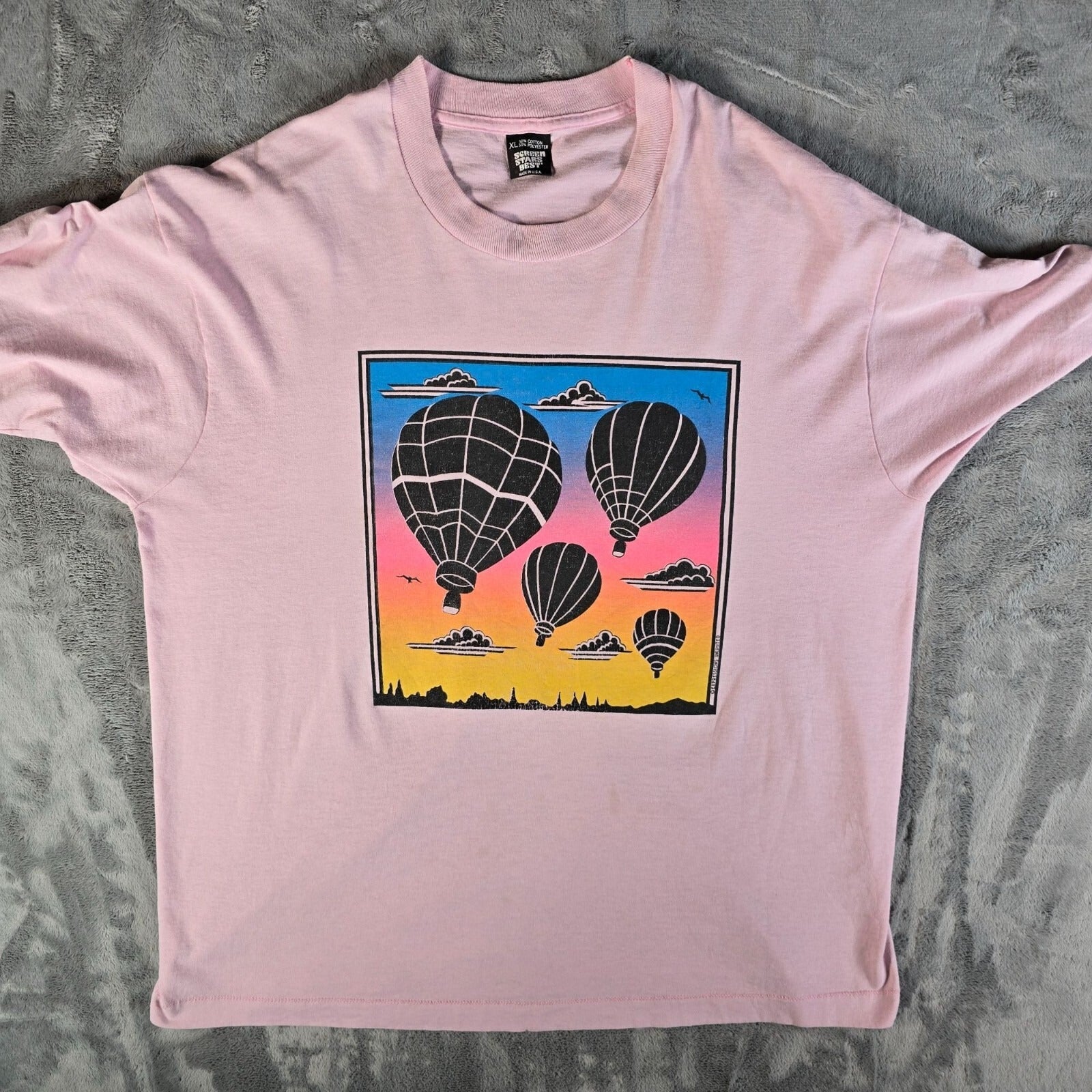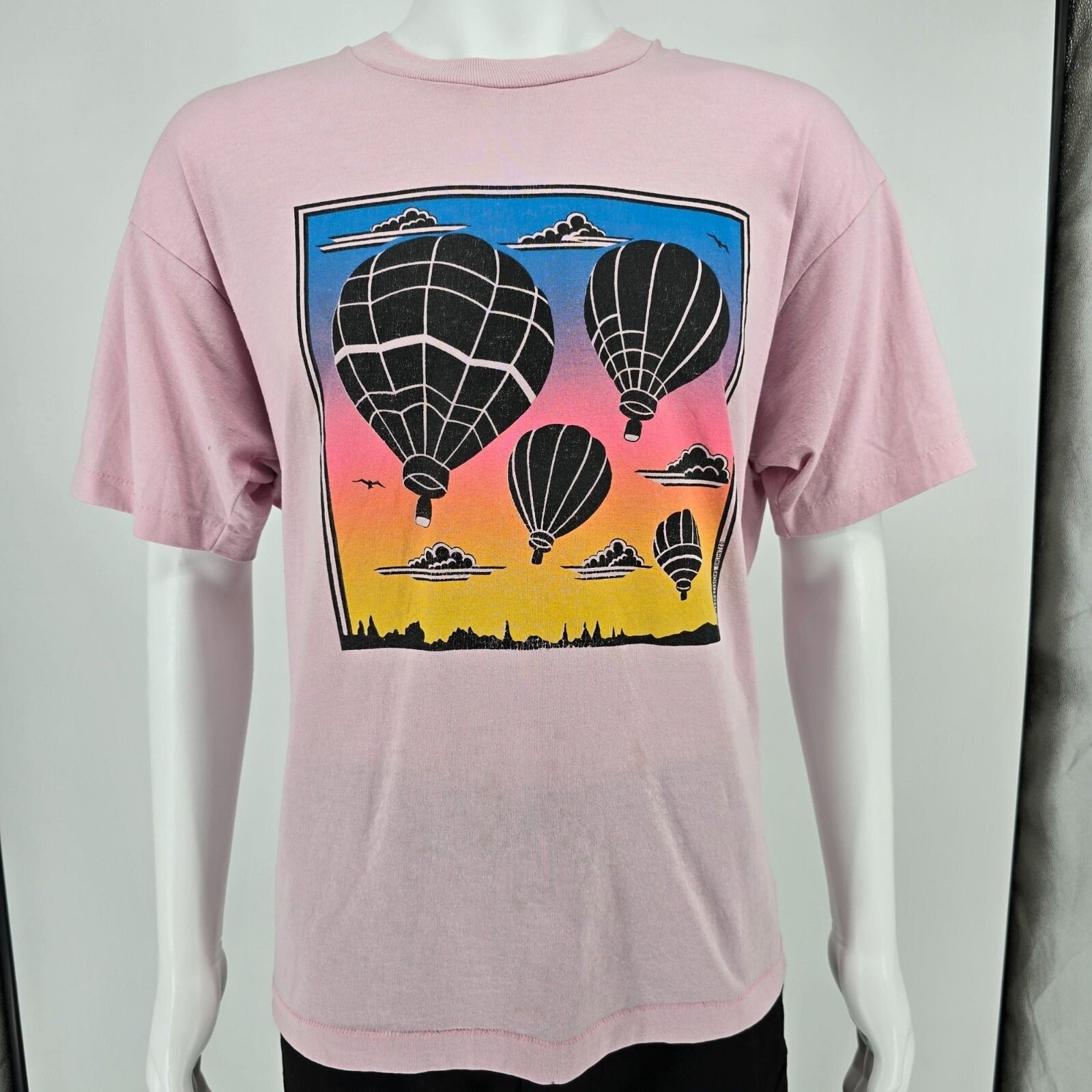 Vintage 1990s Expressions Unlimited Hot Air Balloon Sunset Pink T-Shirt (XL)