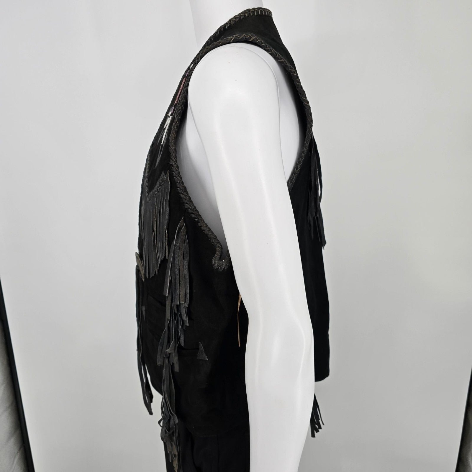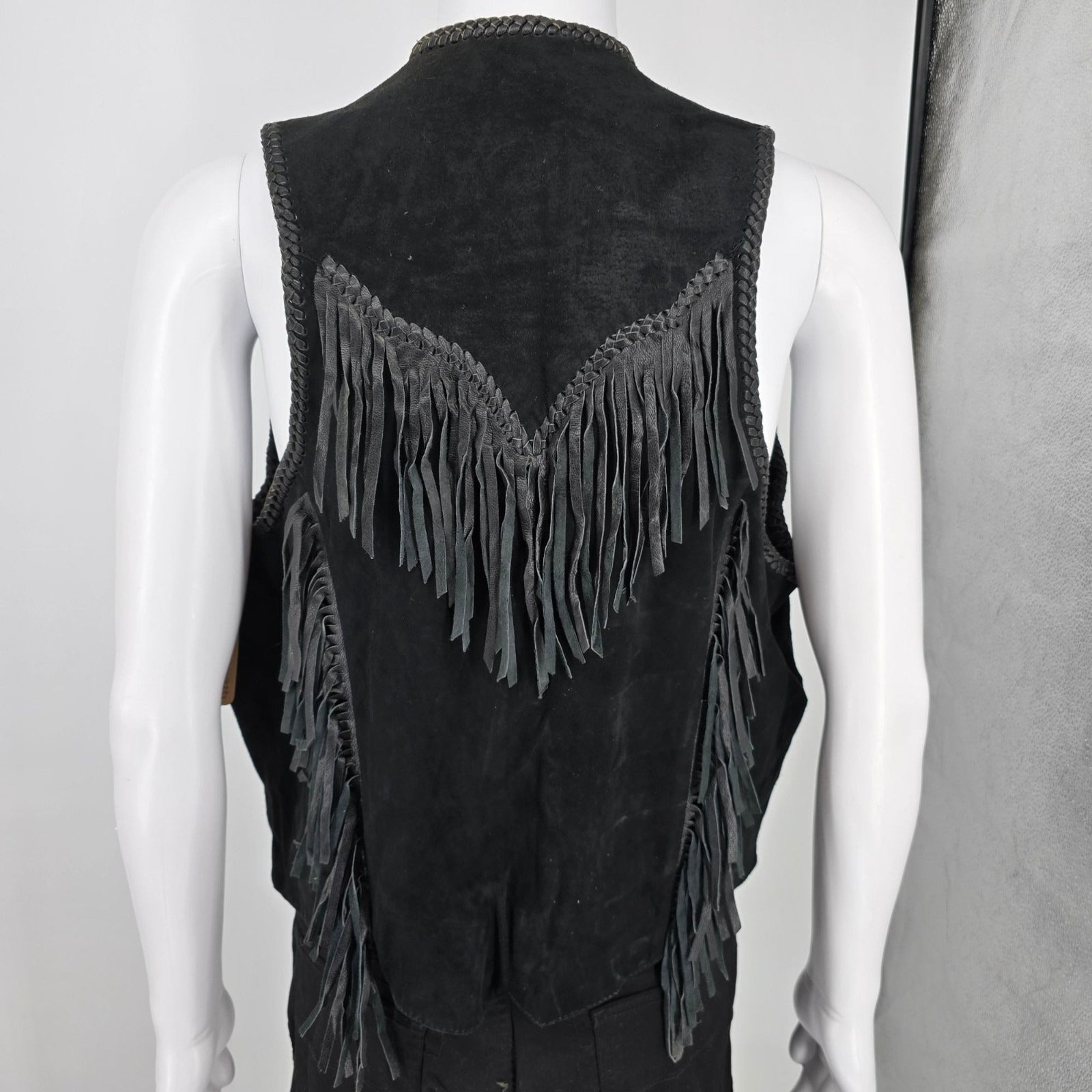 Vintage 1990s First Genuine Leather Men's Suede Beaded/Fringe Western Vest (M)