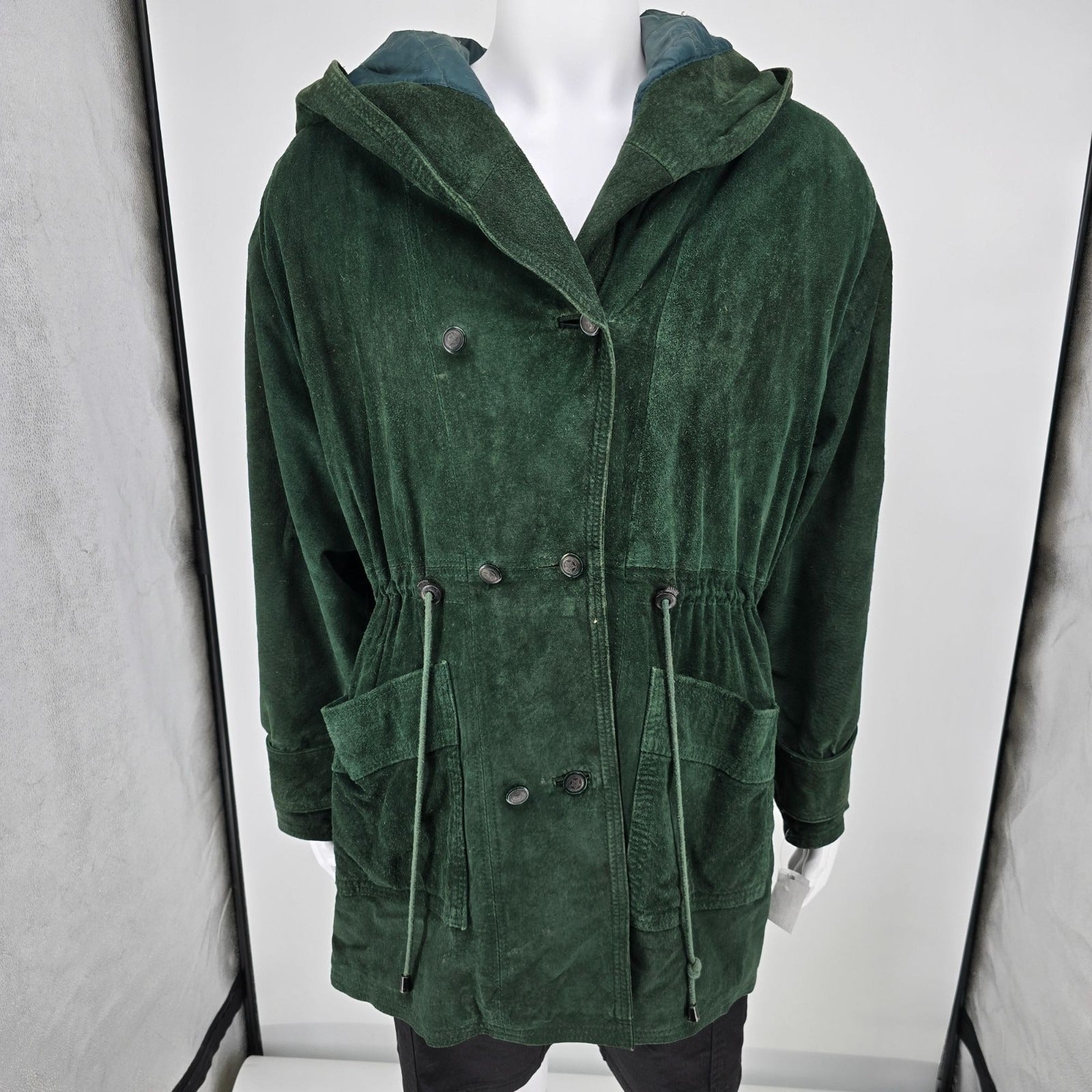 Vintage 1990s G-III Forest Green Hooded Suede Insulated Parka Jacket (Large)