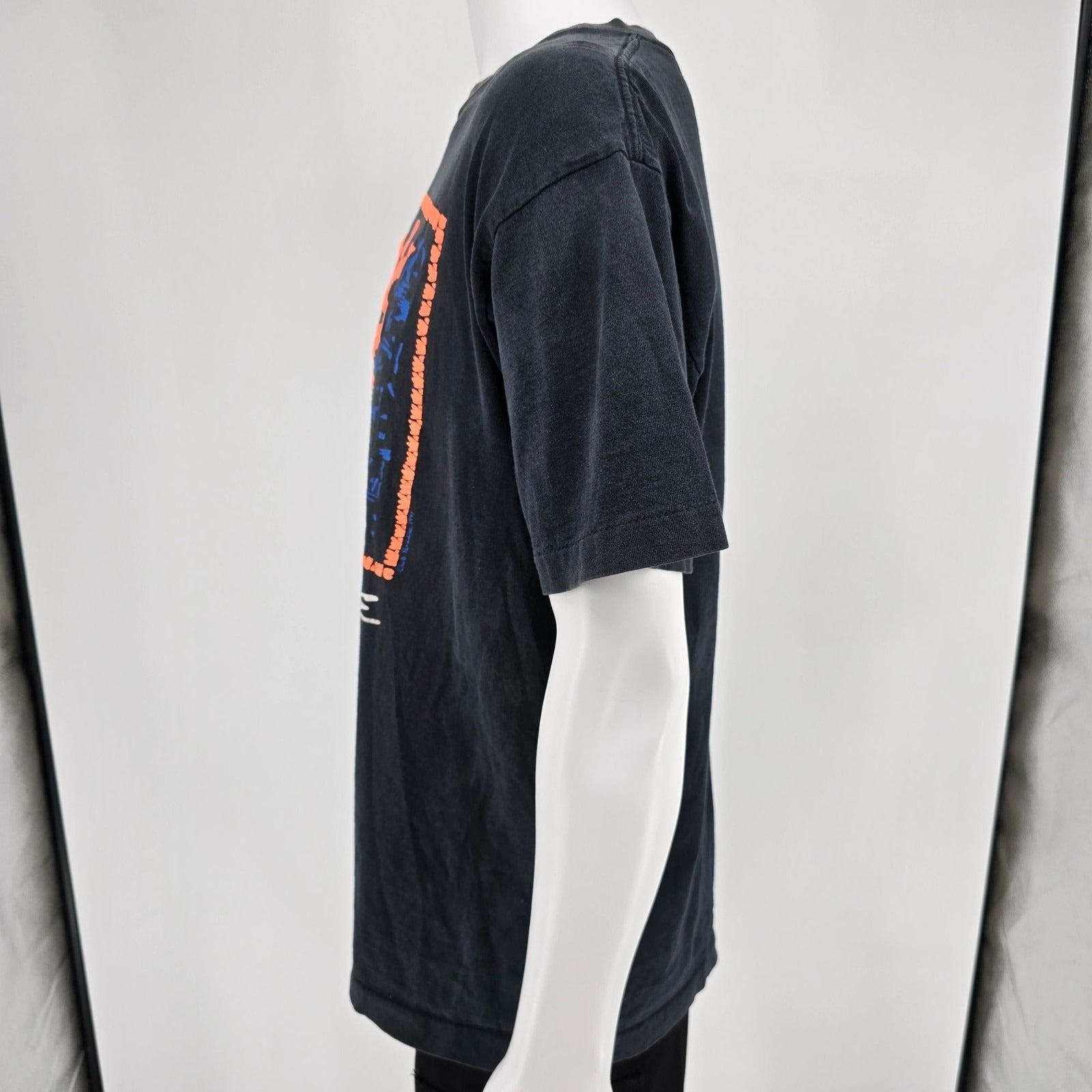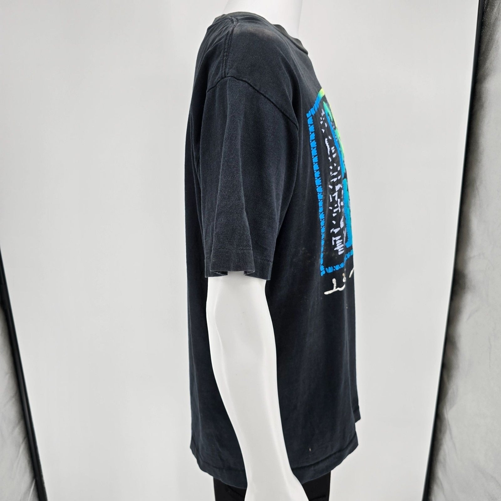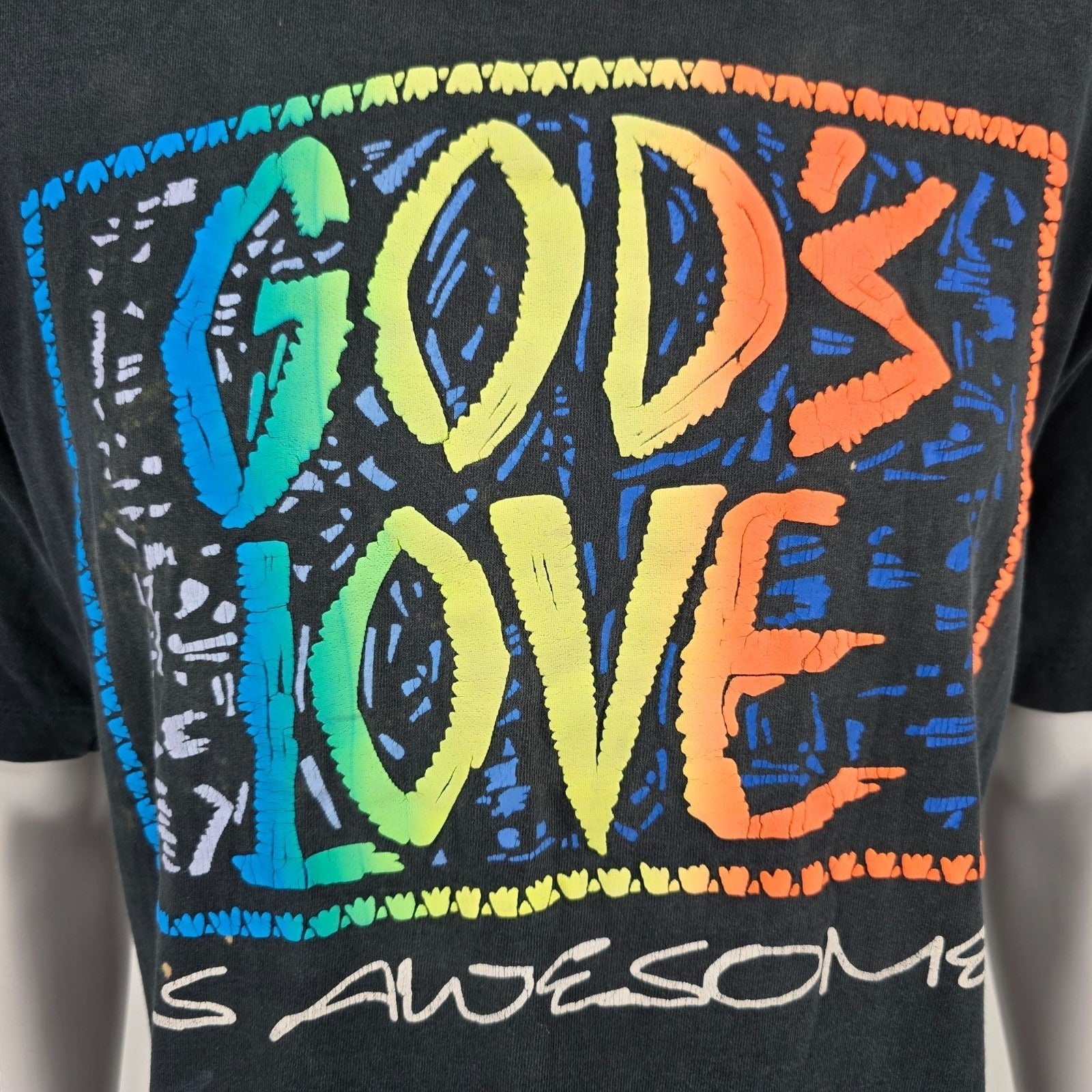 Vintage 1990's "God's Love is Awesome" Rainbow Puff Print Black T-Shirt (L/XL)