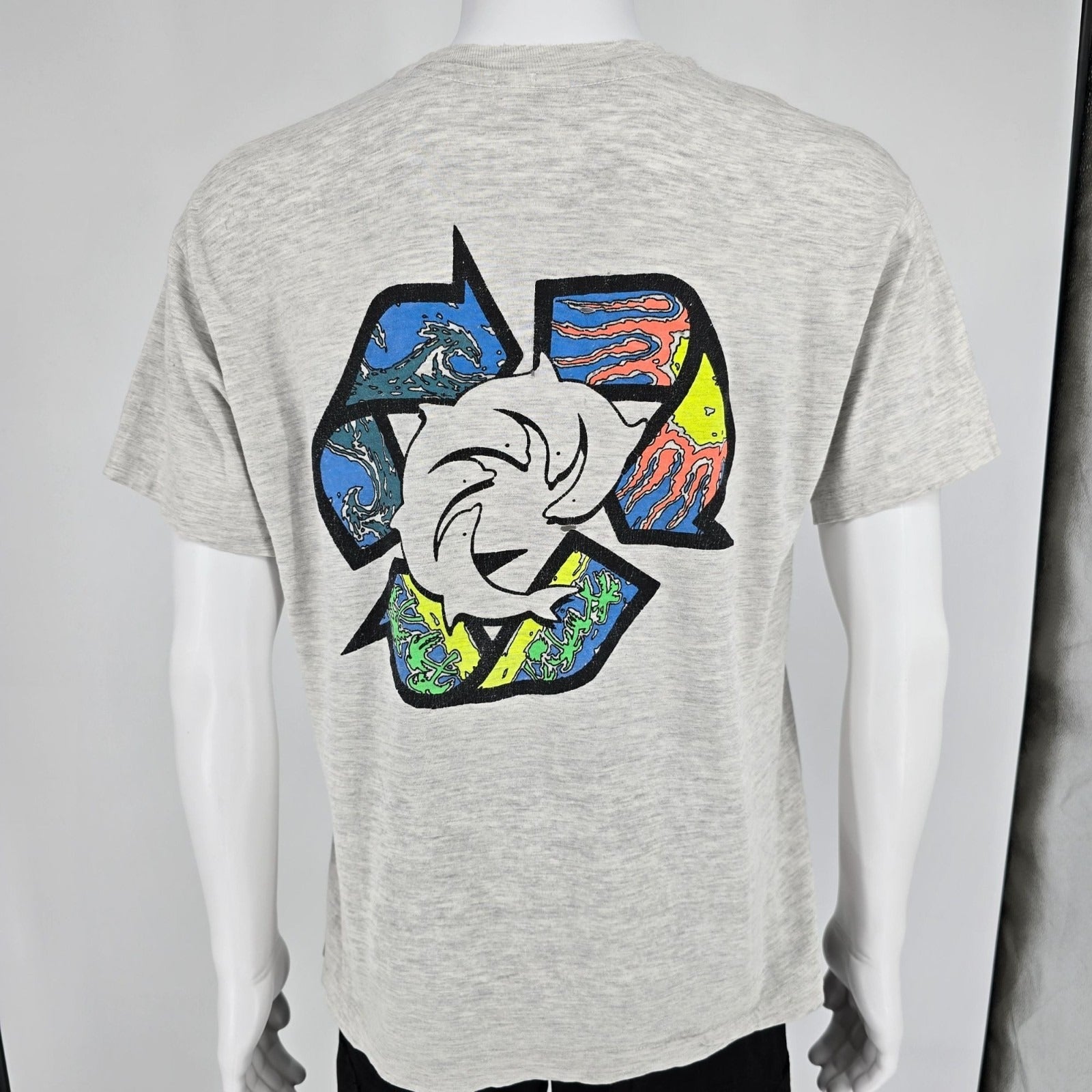Vintage 1990s Hanes Beefy-T Dolphin Recycle Surf Graphic Made in USA T-Shirt (L)