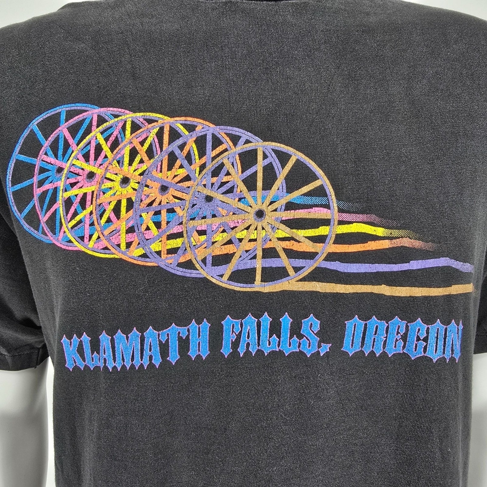 Vintage 1990s Hanes Beefy-T Klamath Falls Oregon Wagon Wheel Graphic T-Shirt (L)