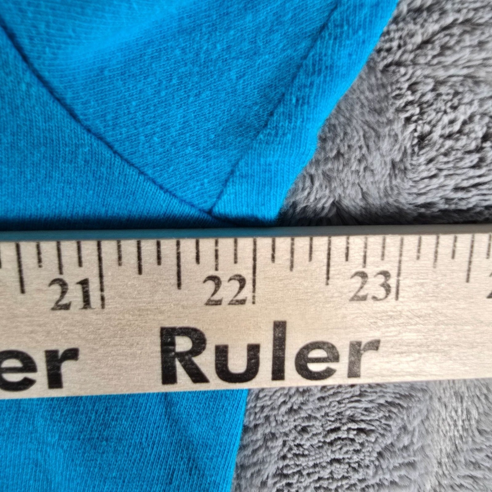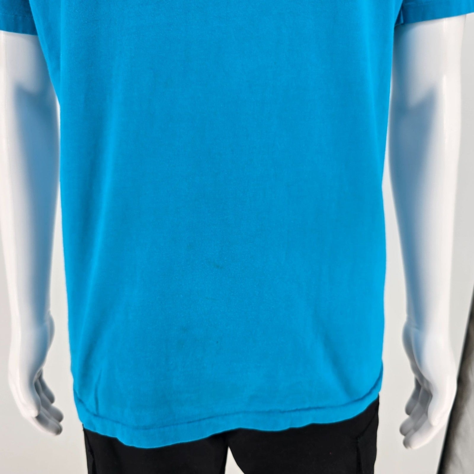 Small stain on front of shirt on right side approximately 2/3 of the way down to the hem.