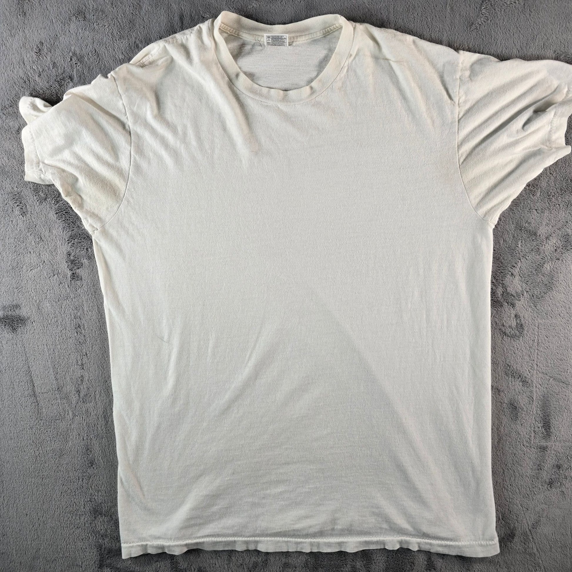 Vintage 1990s Hanes Classics Single Stitch White/Off-White Blank T-Shirt (L)