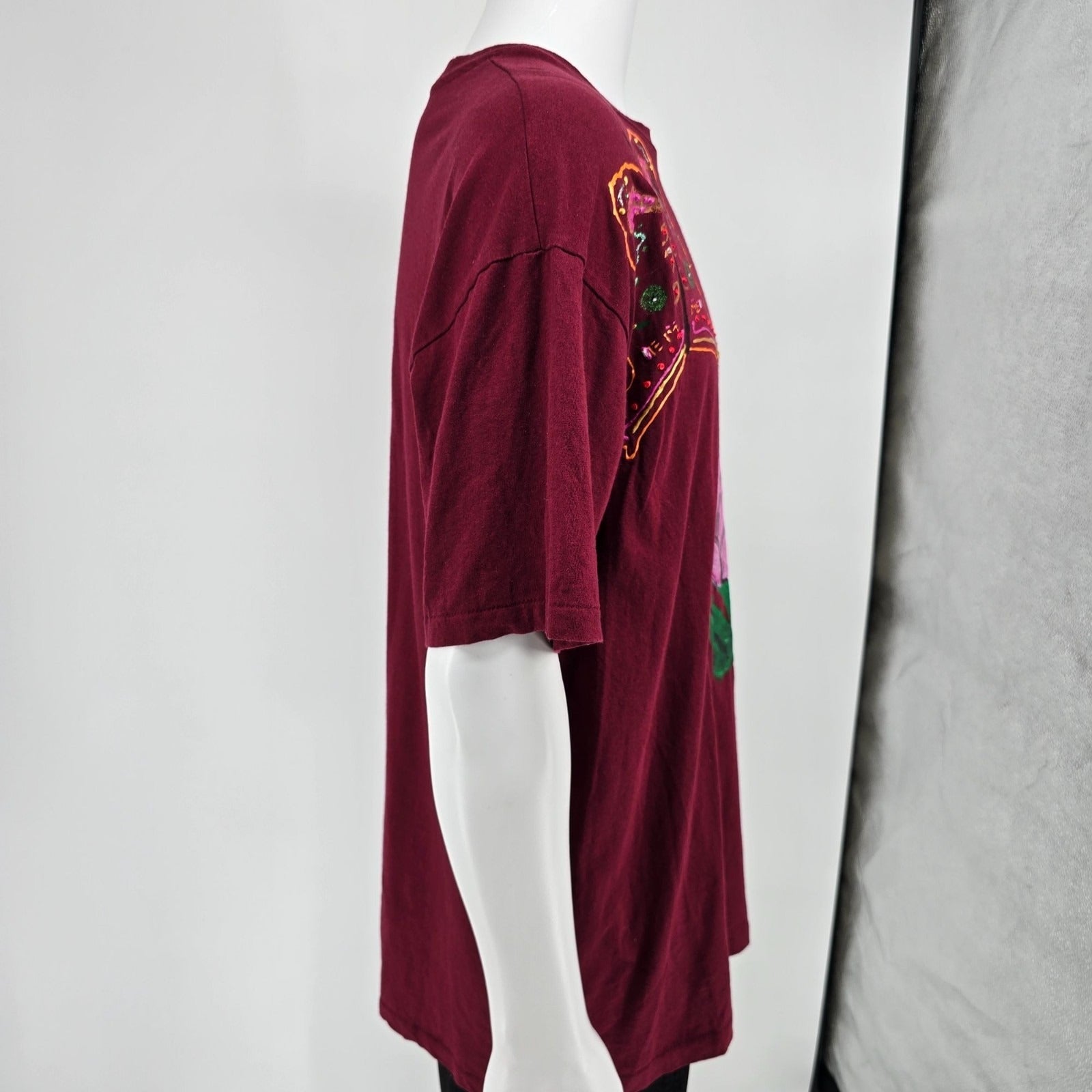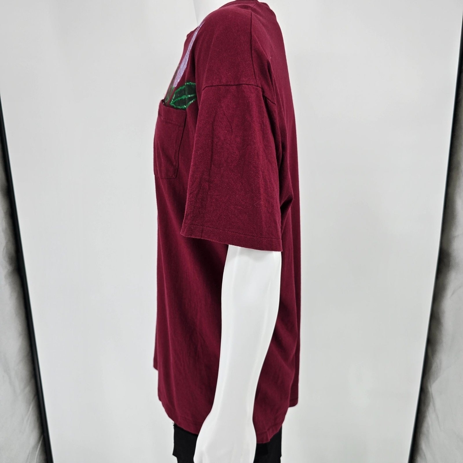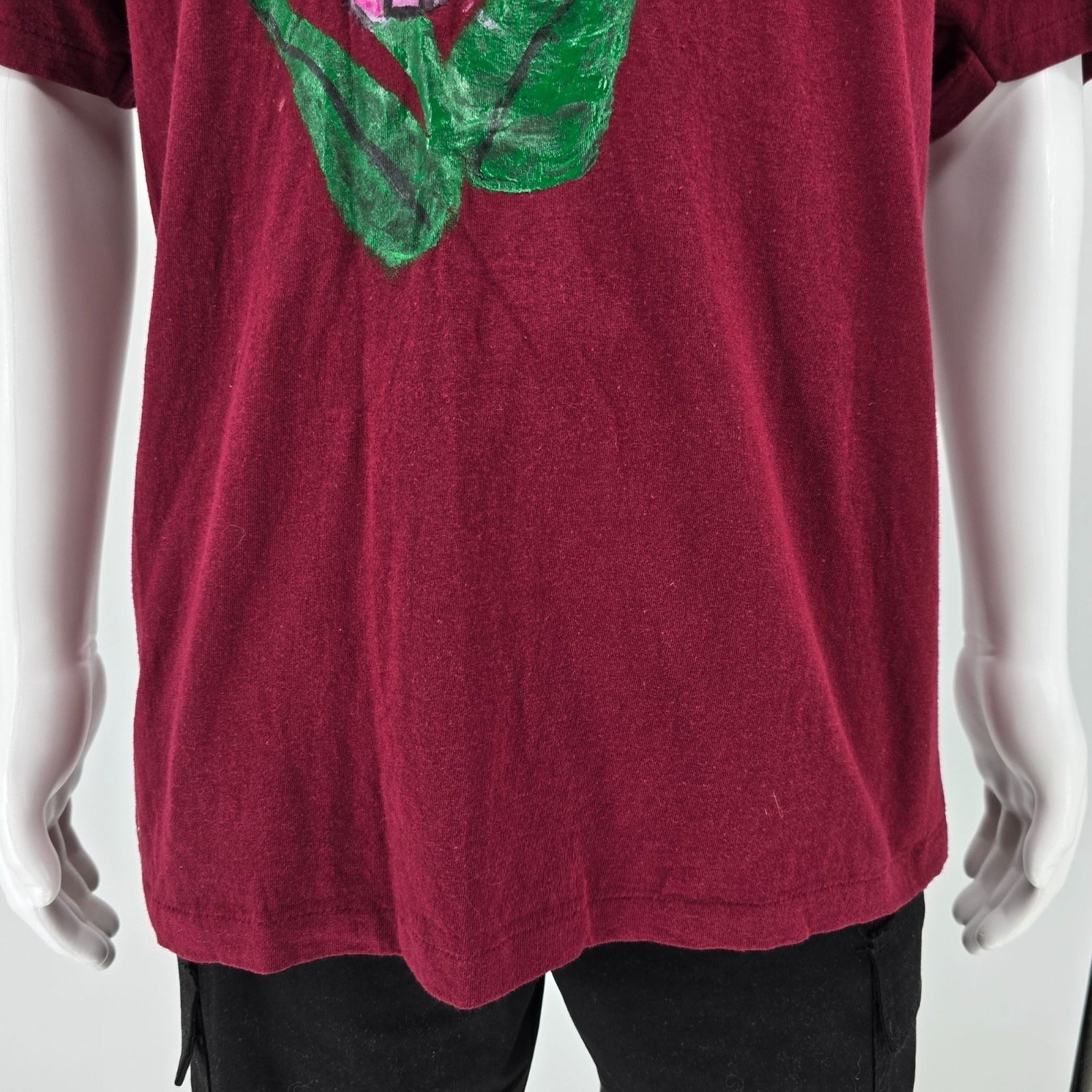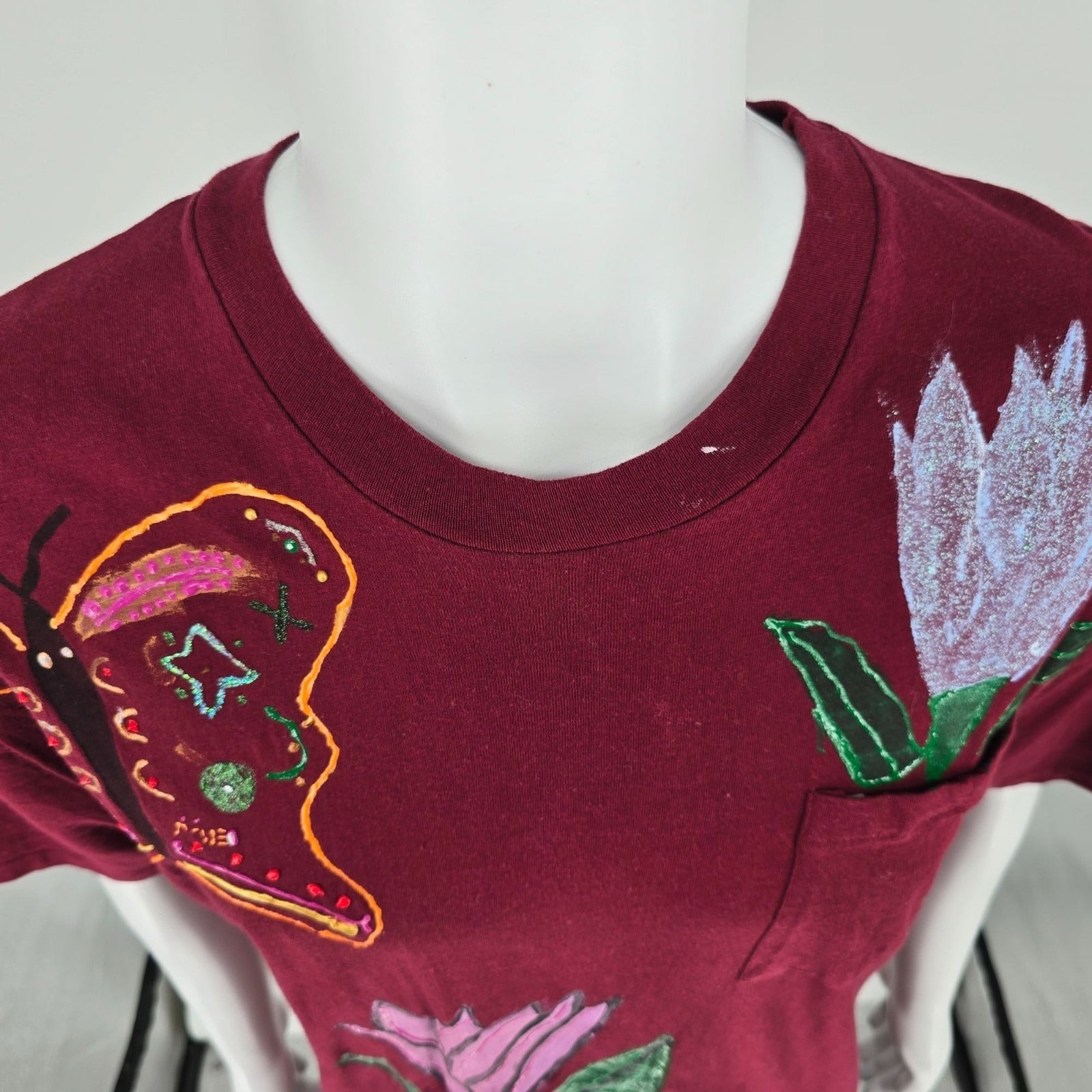Vintage 1990s Hanes DIY Hand-Painted Butterfly & Flowers Pocket T-Shirt (XL)