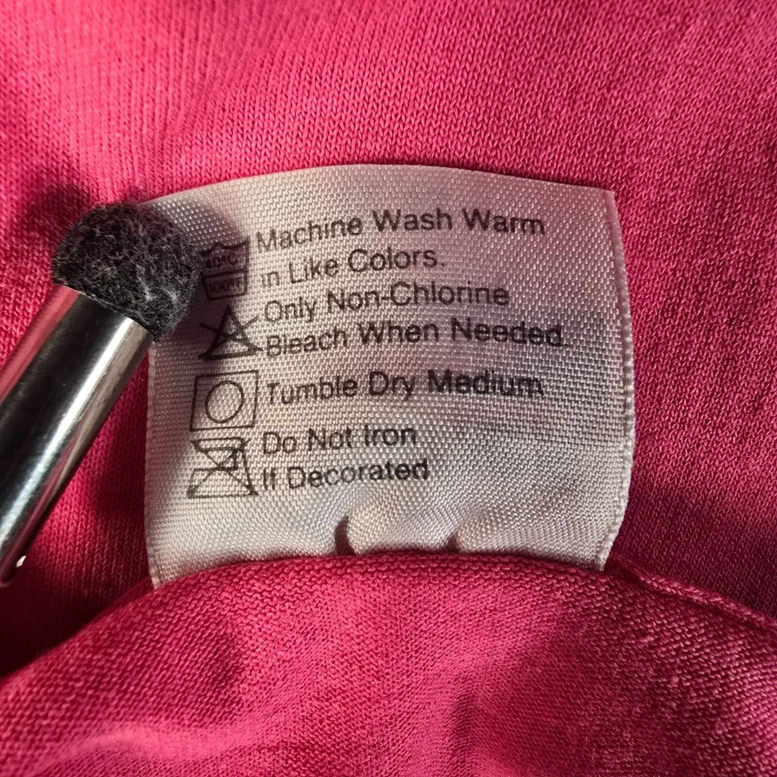 Notable Features: Single Stitch cuffs and hem, eye-catching baroque-style scroll print in black and purple with a lattice yoke design accented in glitter