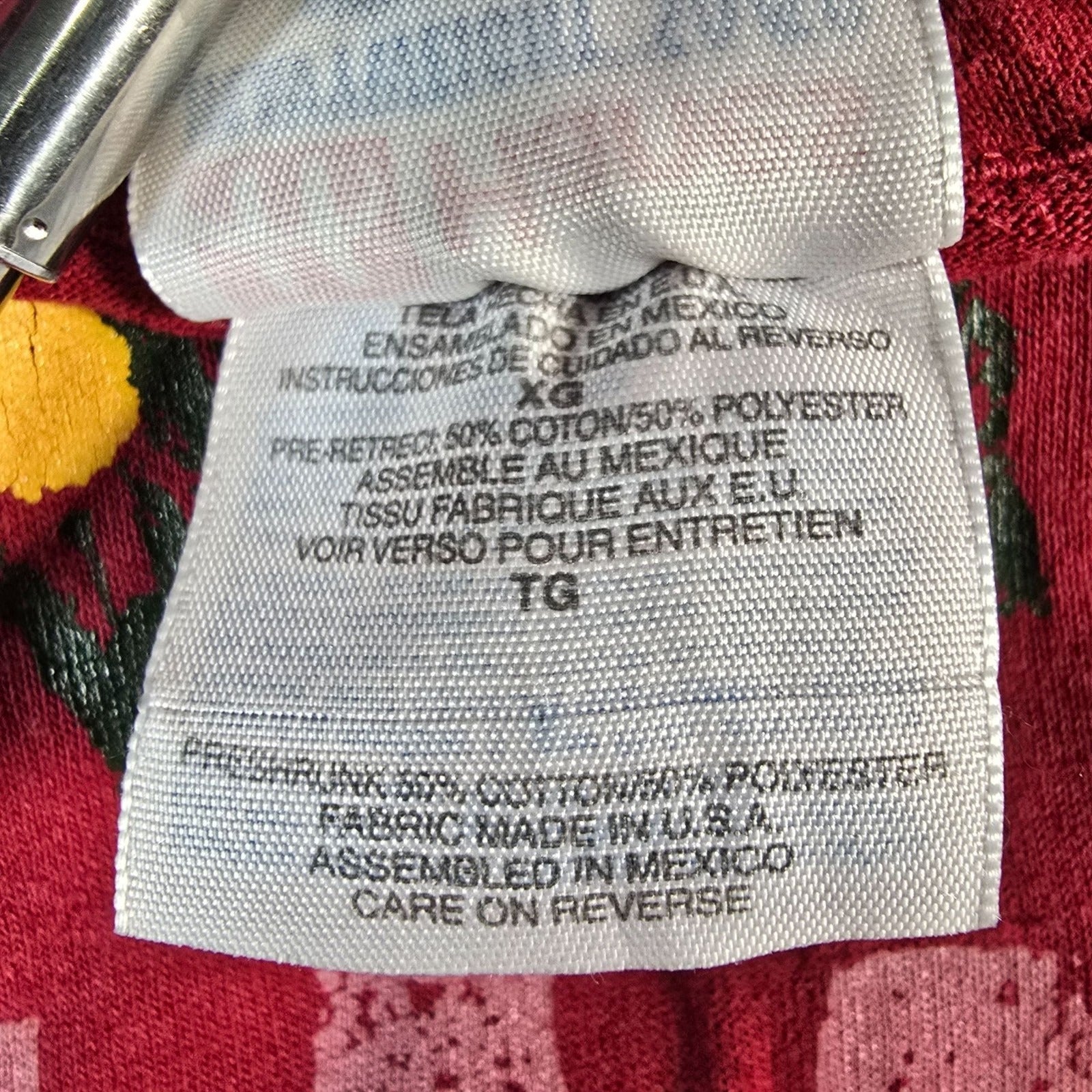 Notable Features: Single stitch cuffs and hem; graphic of angel watering a row of tulips