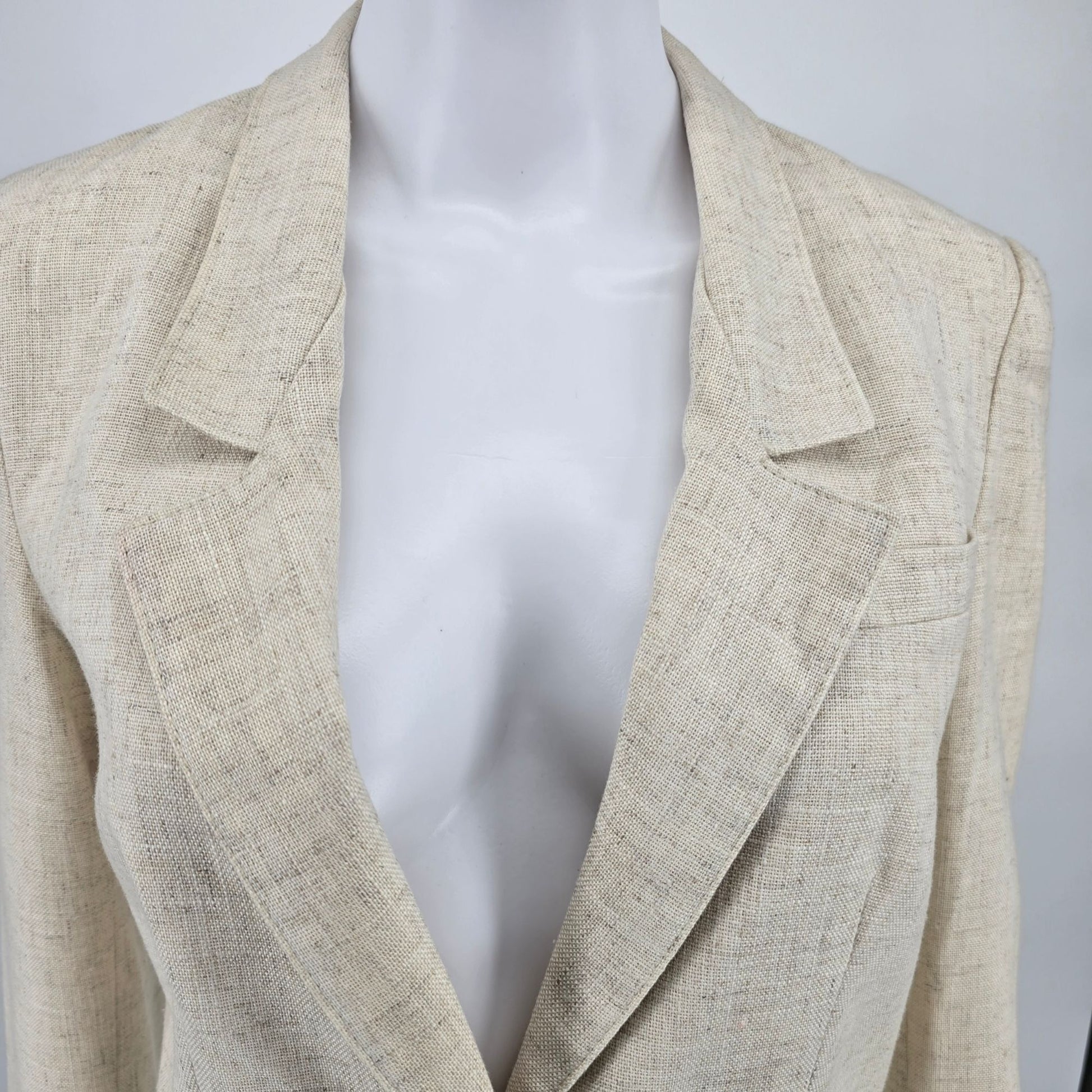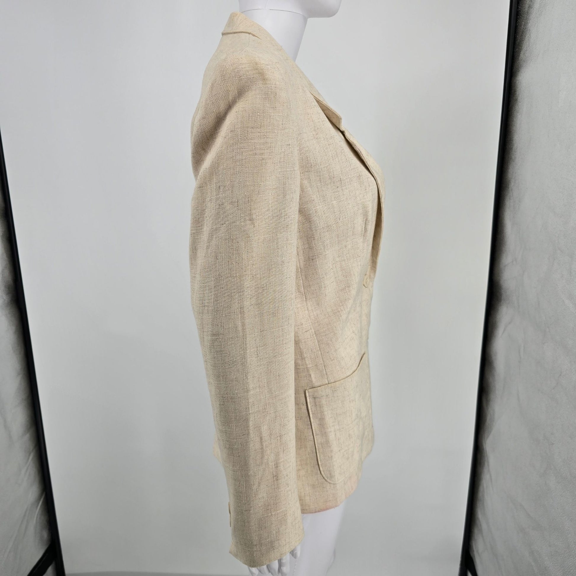 Vintage 1990s Harrington Square Flax-Blend Two Button Blazer Jacket (6 Tall)