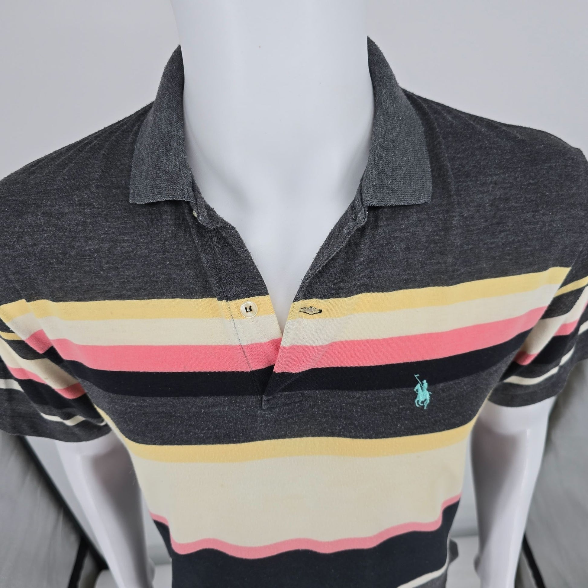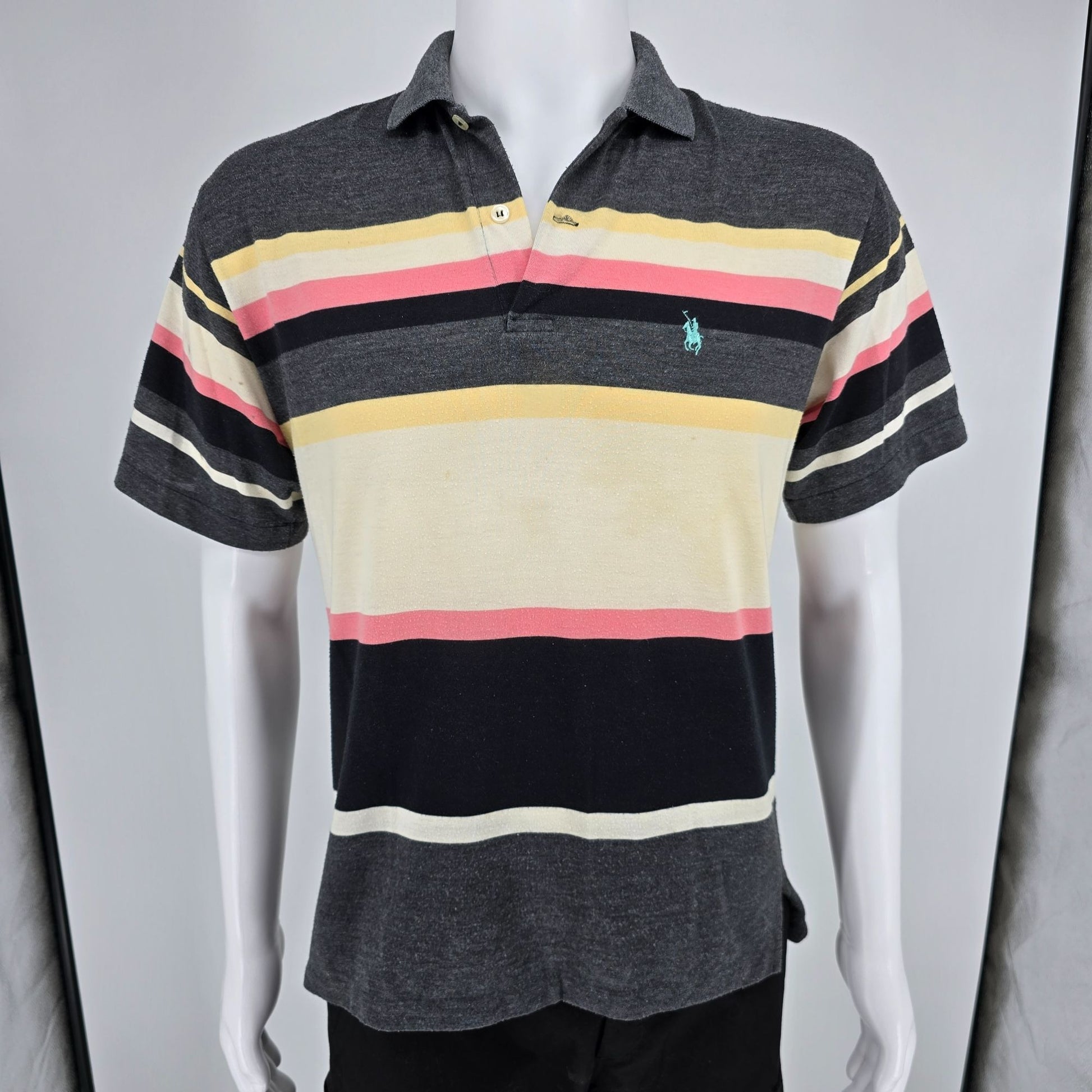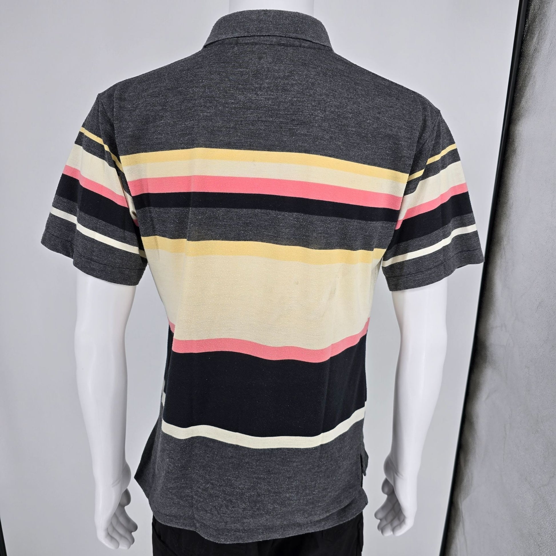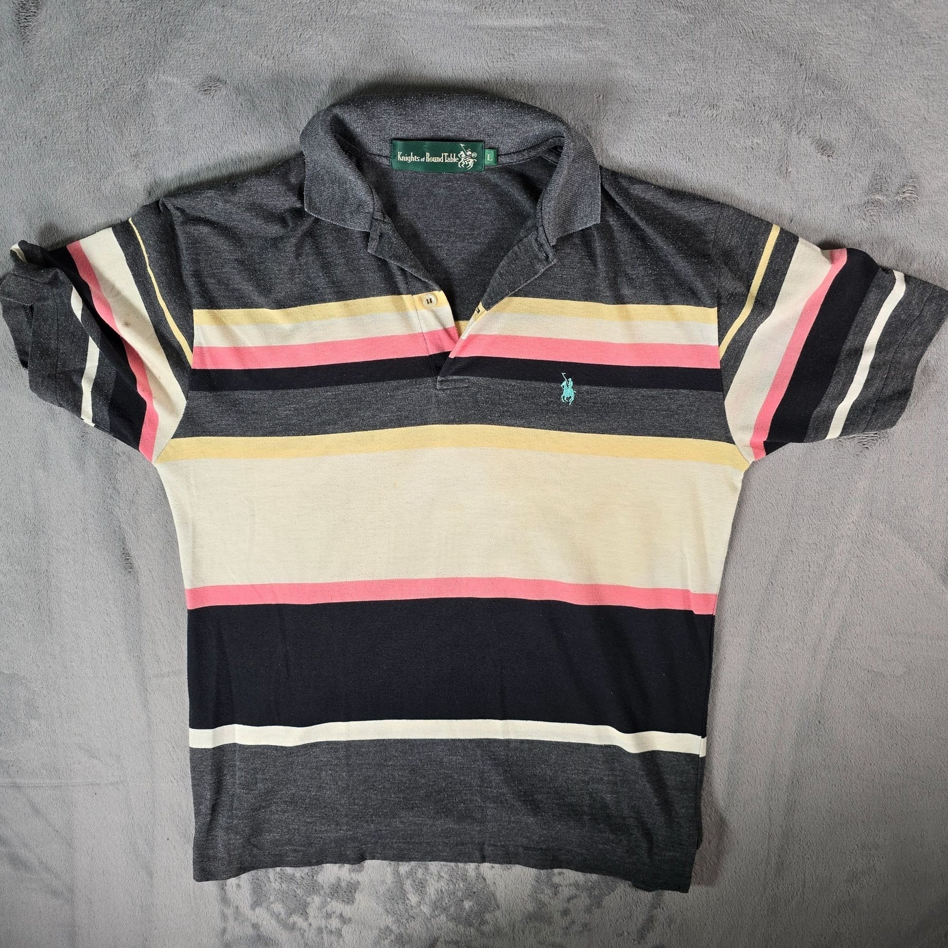 Vintage 1990s Knights of the Round Table Striped Rayon Blend Polo Shirt
