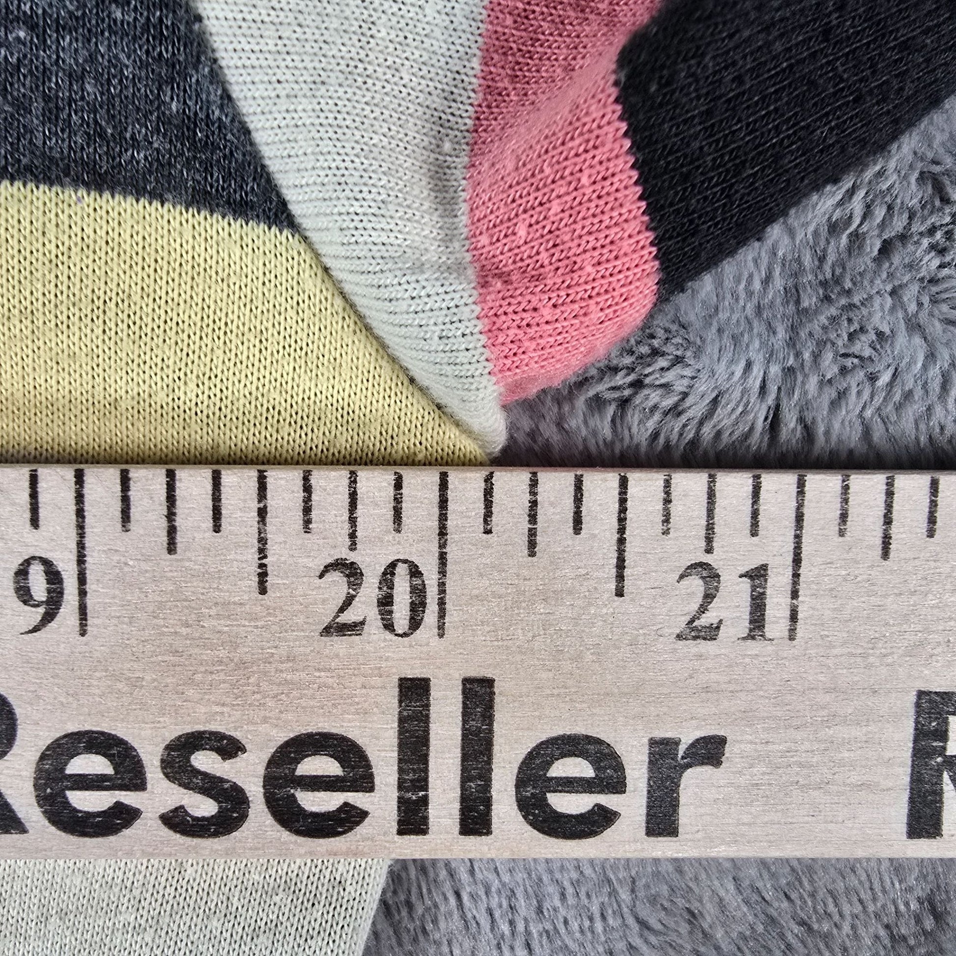 Color: Charcoal heather with cream, butter yellow, coral pink, and black stripes