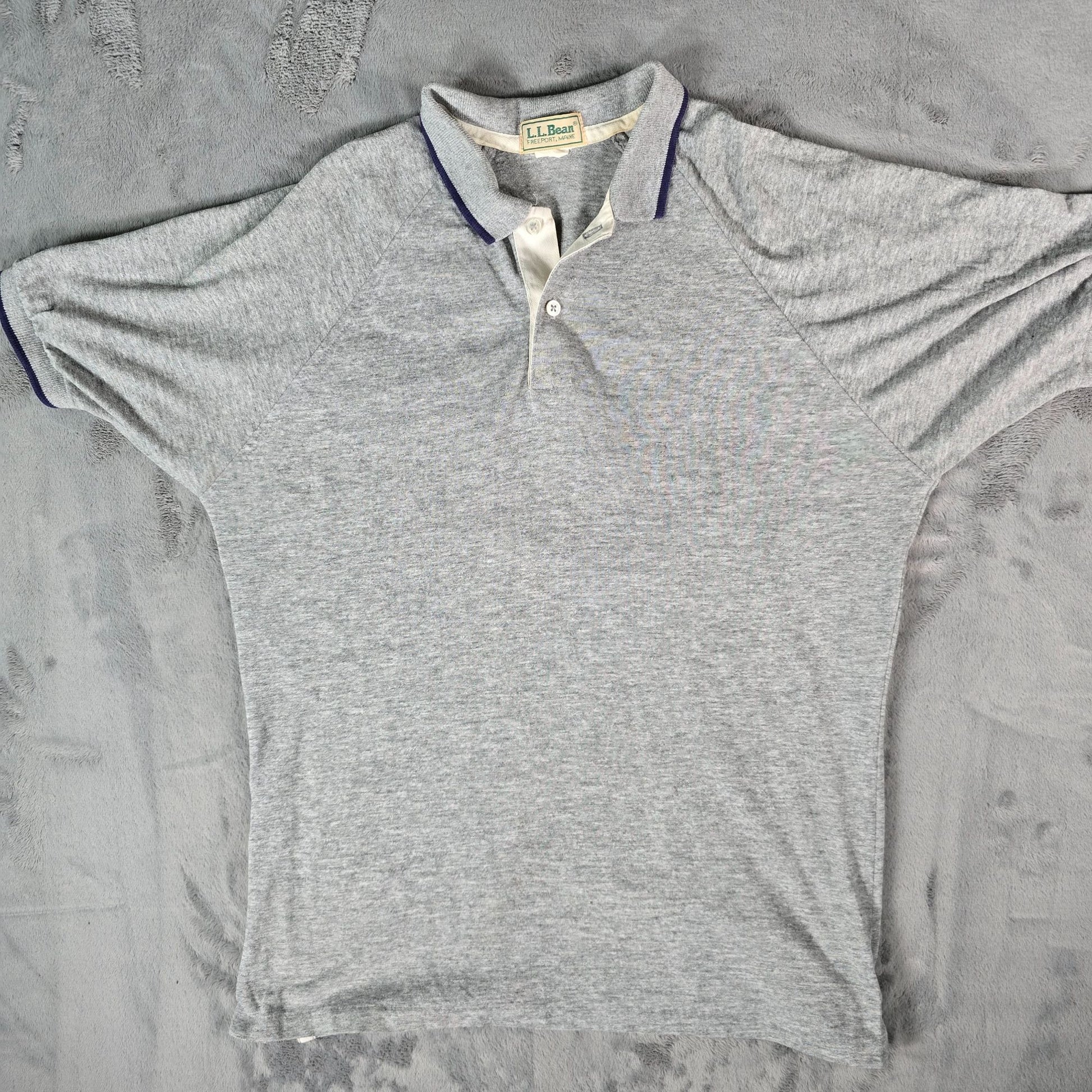 Vintage 1990s L.L. Bean Heather Gray Contrast Placket Raglan Polo Shirt (L)