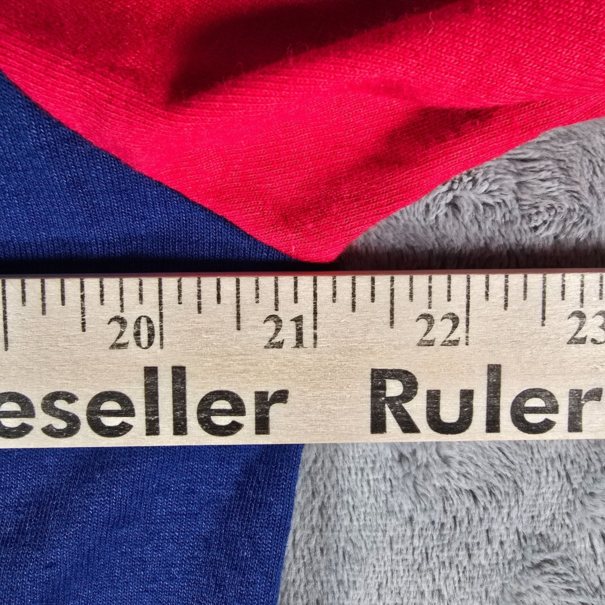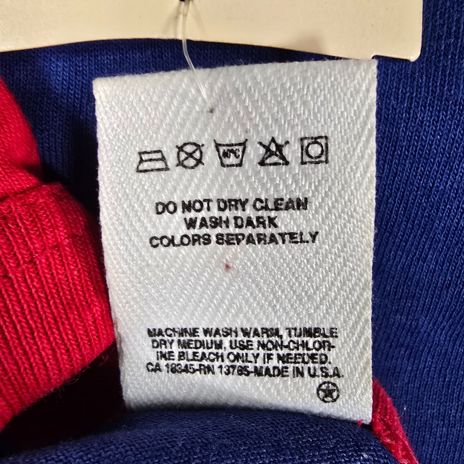 Color: Navy body with red raglan 3/4 sleeves and red collar