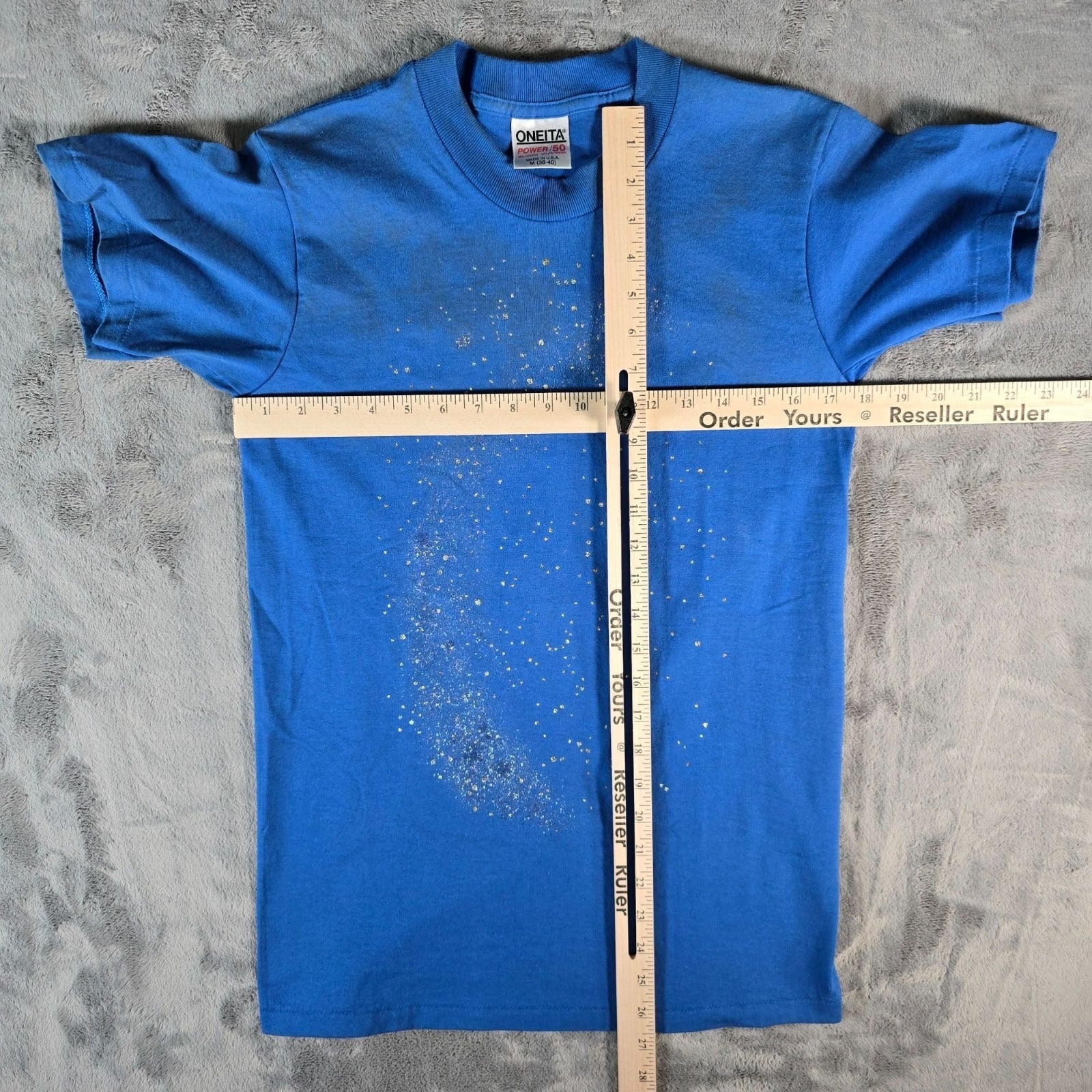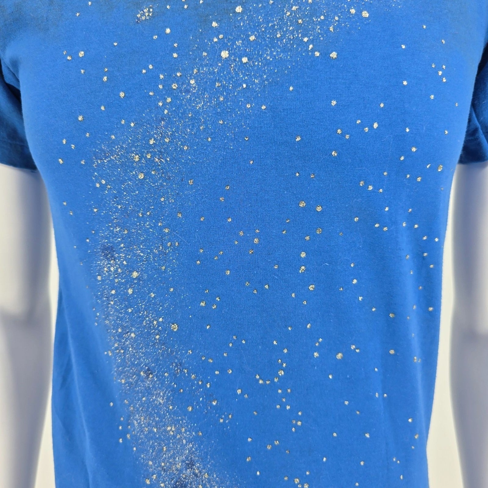 Vintage 1990s Oneita Blue/Silver Galaxy Glitter Print Single Stitch T-Shirt (S)